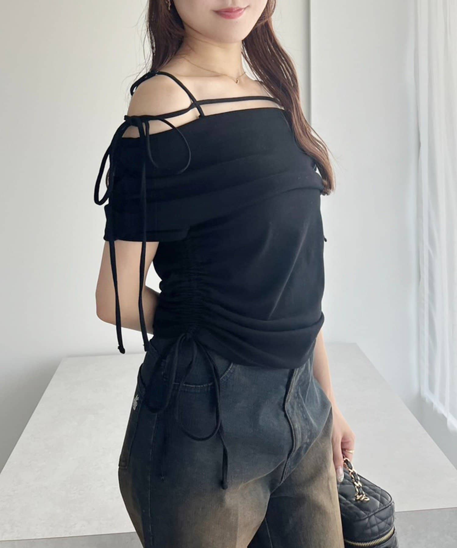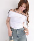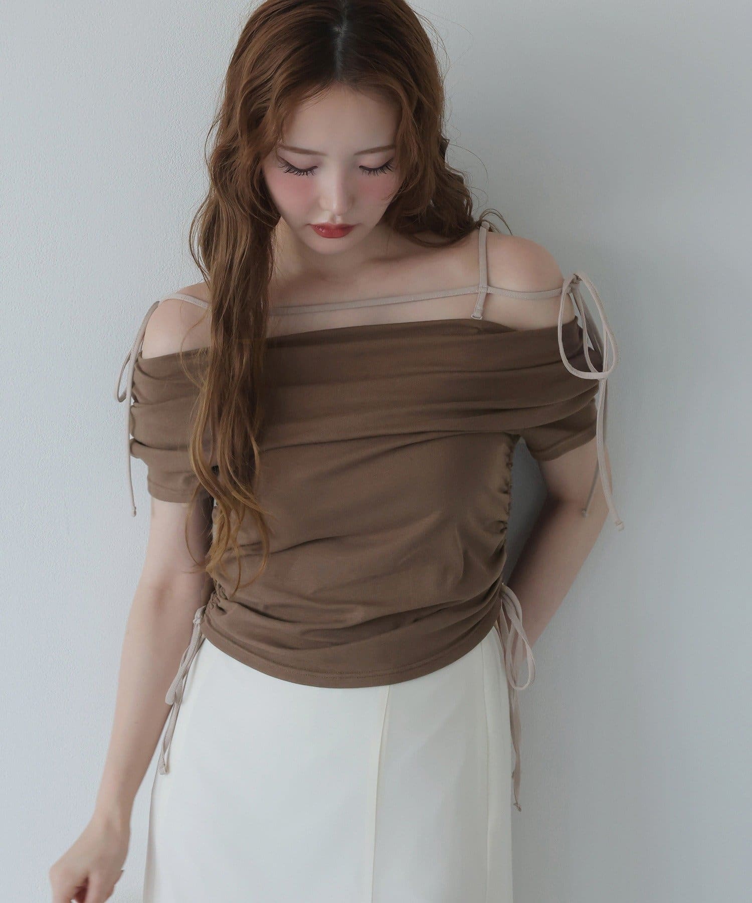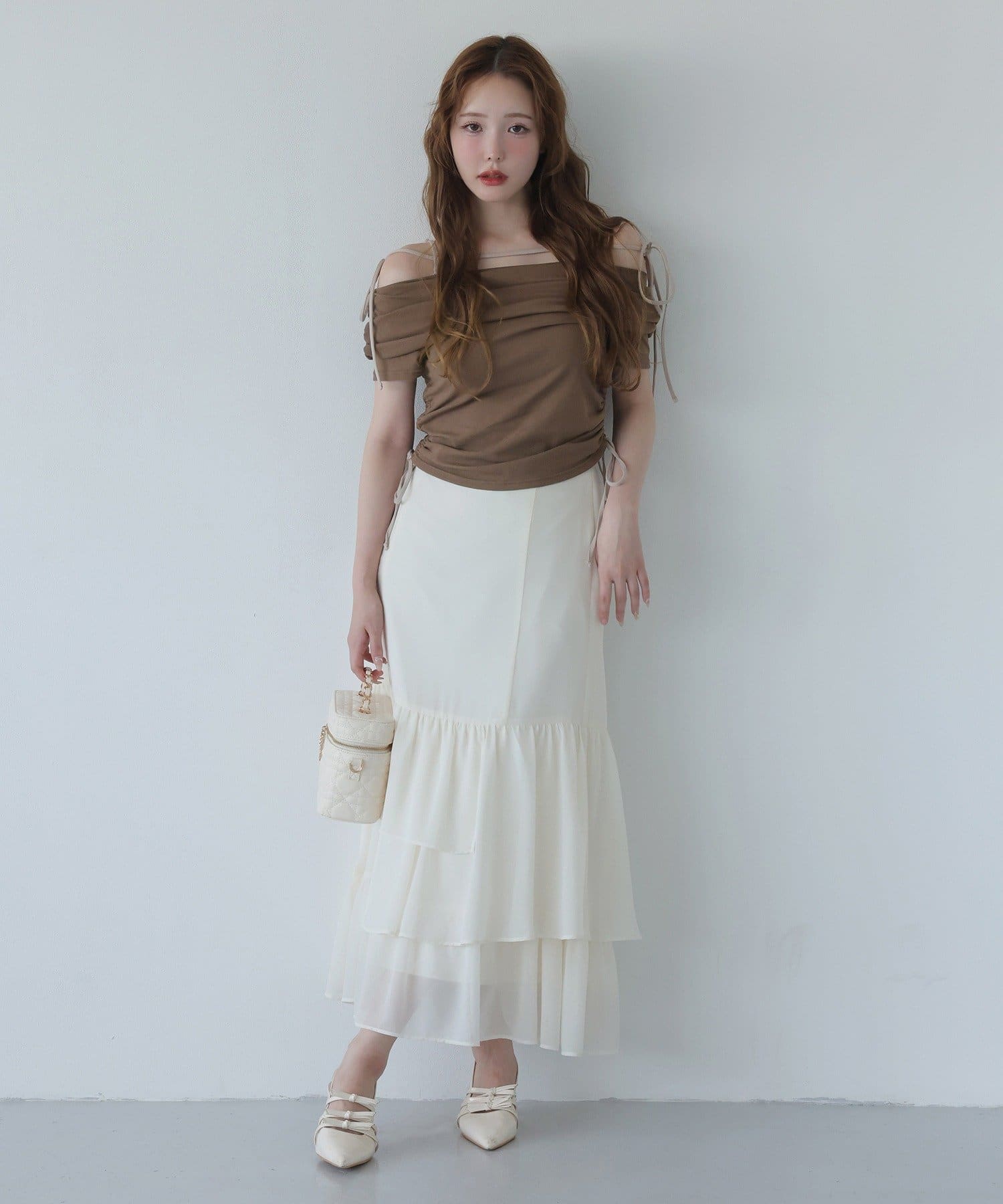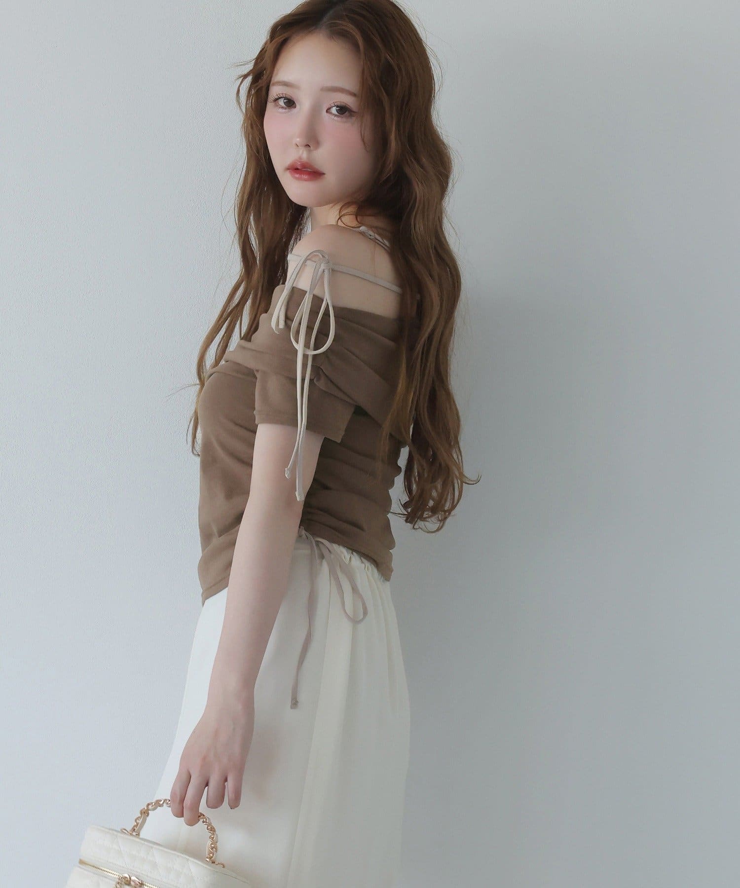 オフショル部分は大きく折り返しているので大人っぽい印象に。