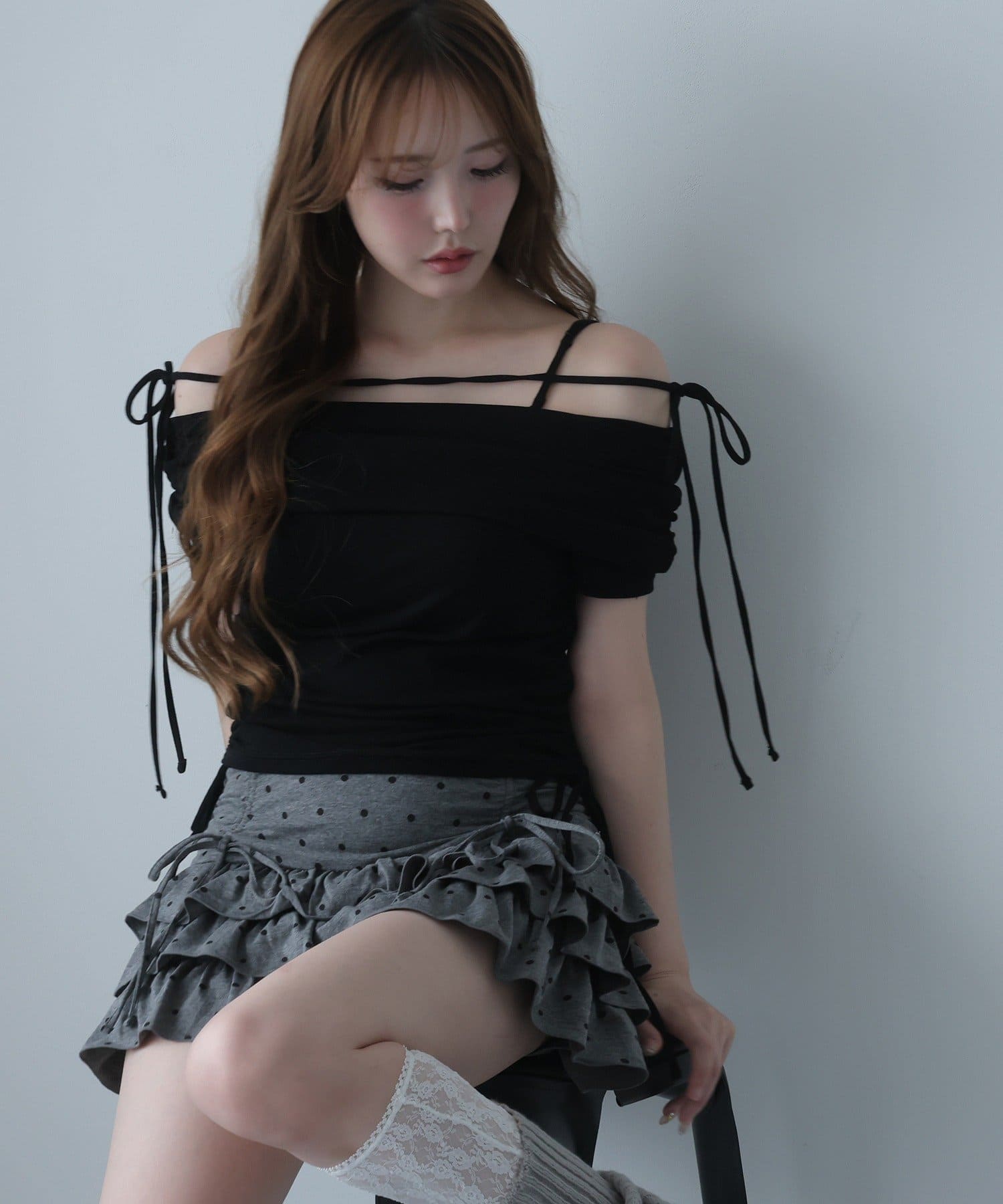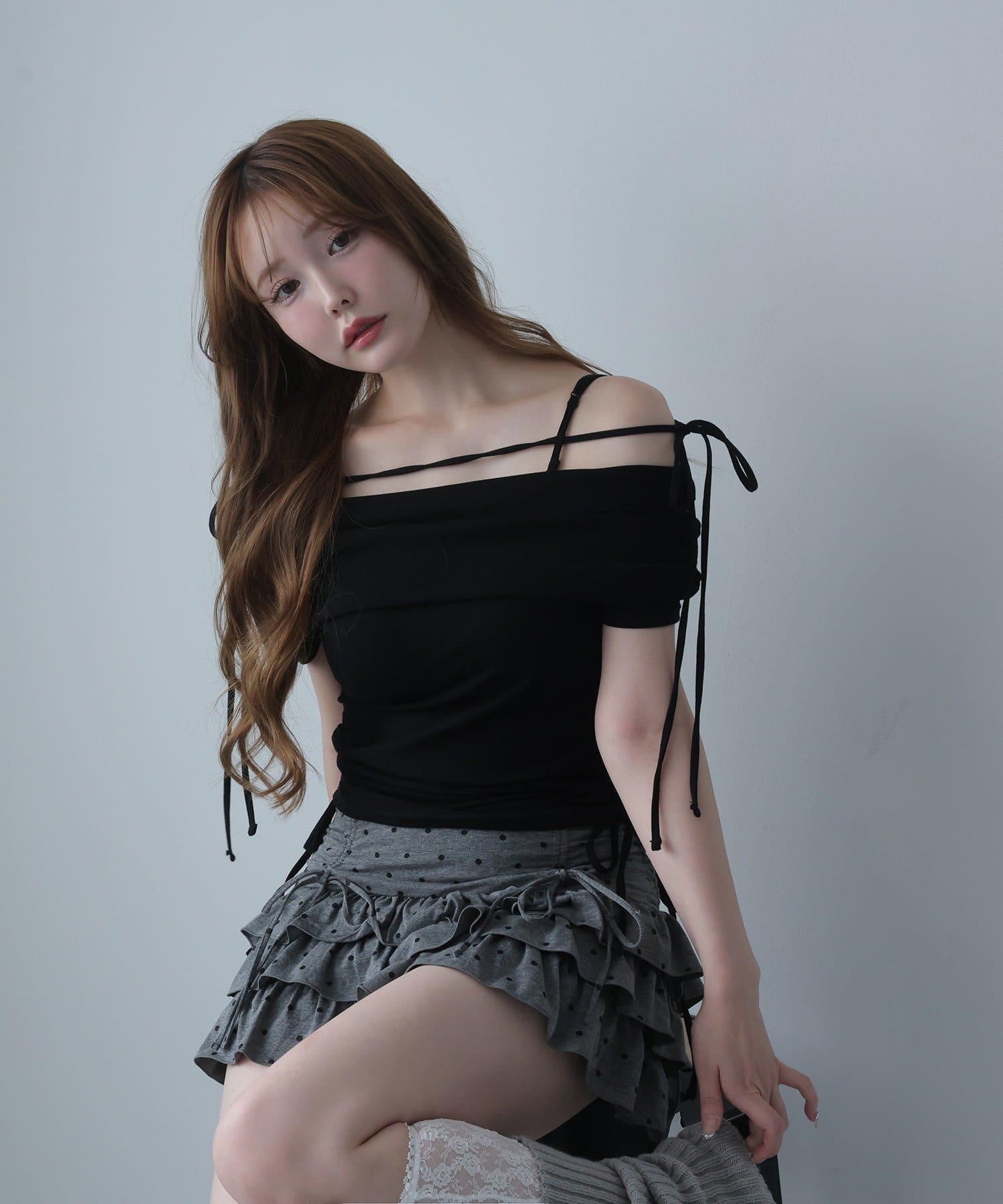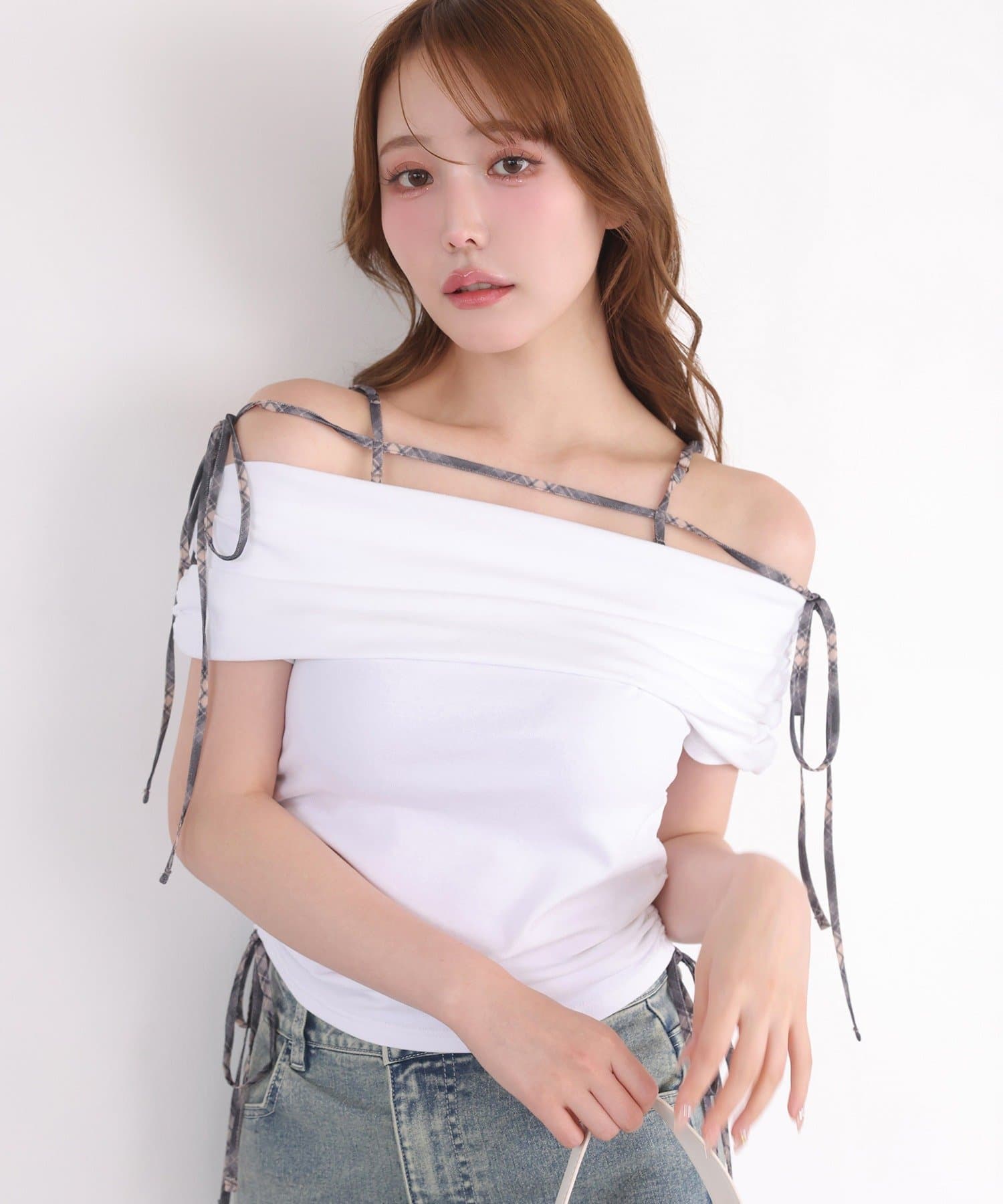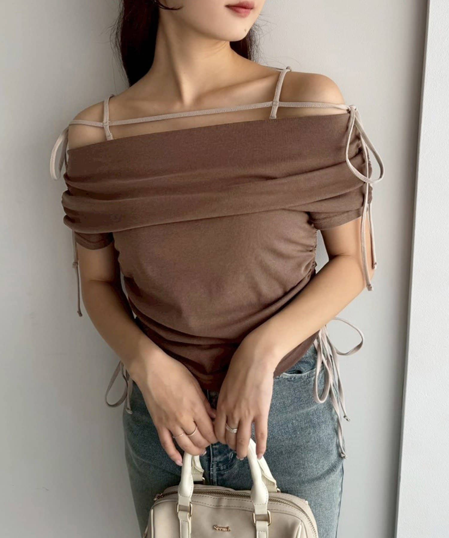 オフショル部分は大きく折り返しているので大人っぽい印象に。