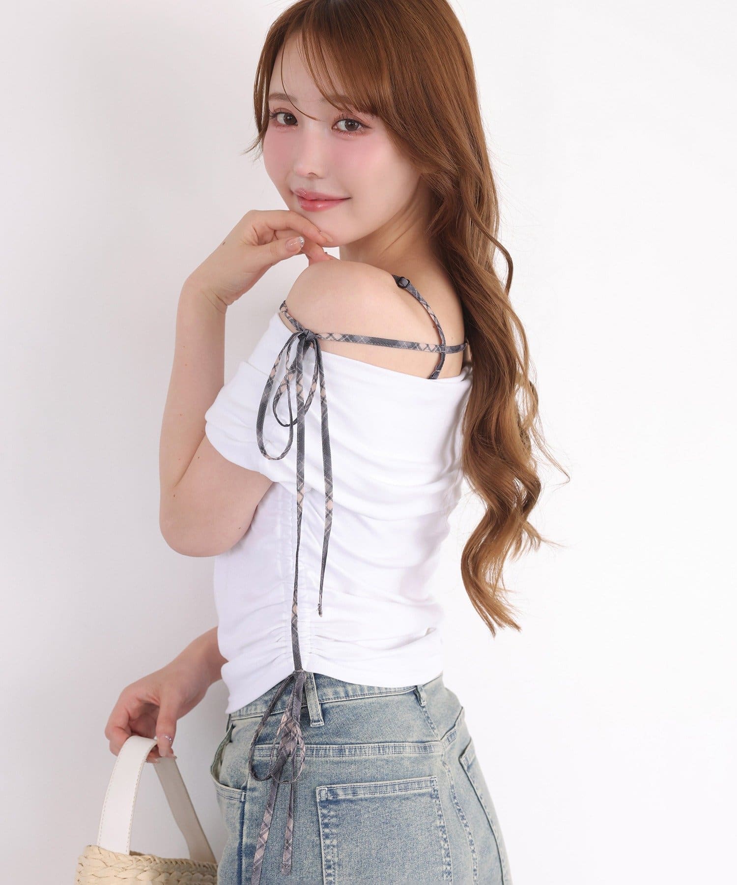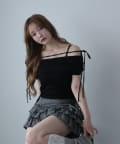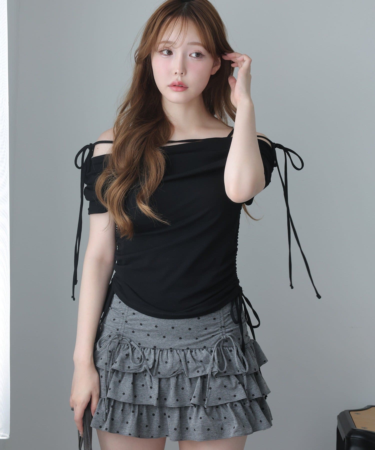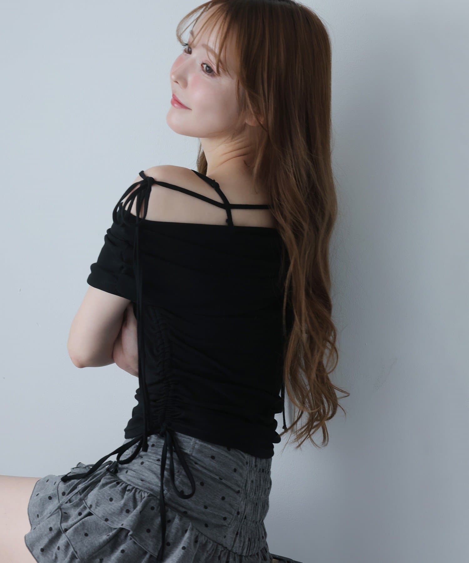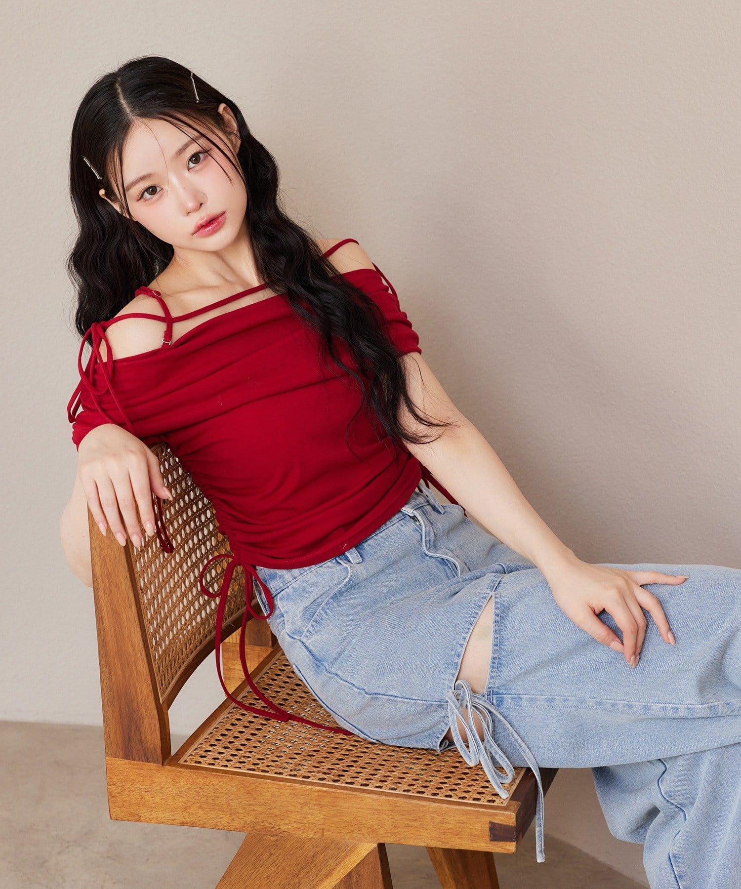 オフショル部分は大きく折り返しているので大人っぽい印象に。
