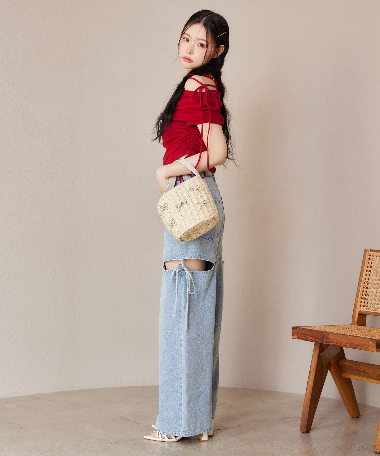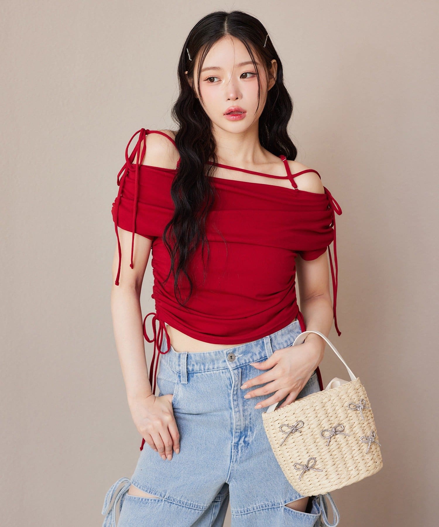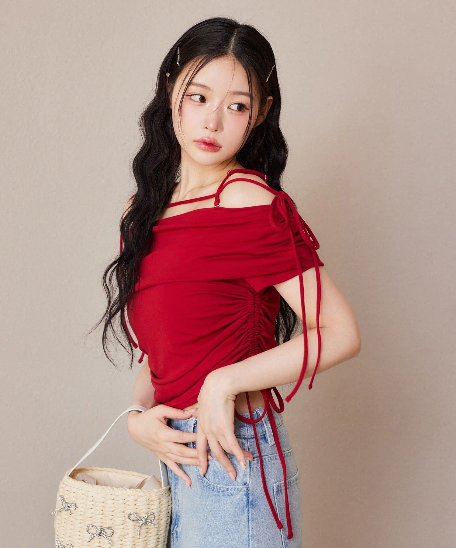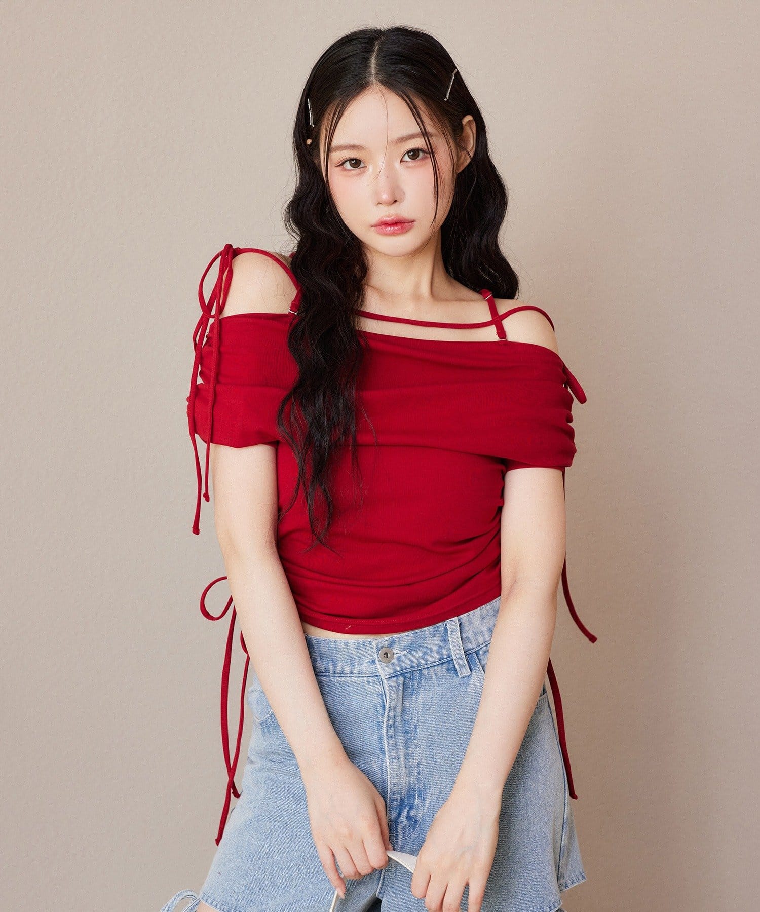 オフショル部分は大きく折り返しているので大人っぽい印象に。