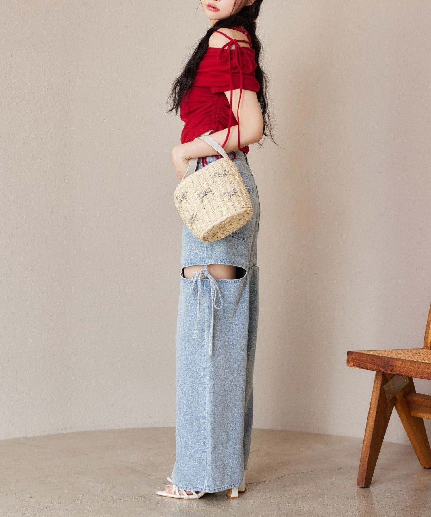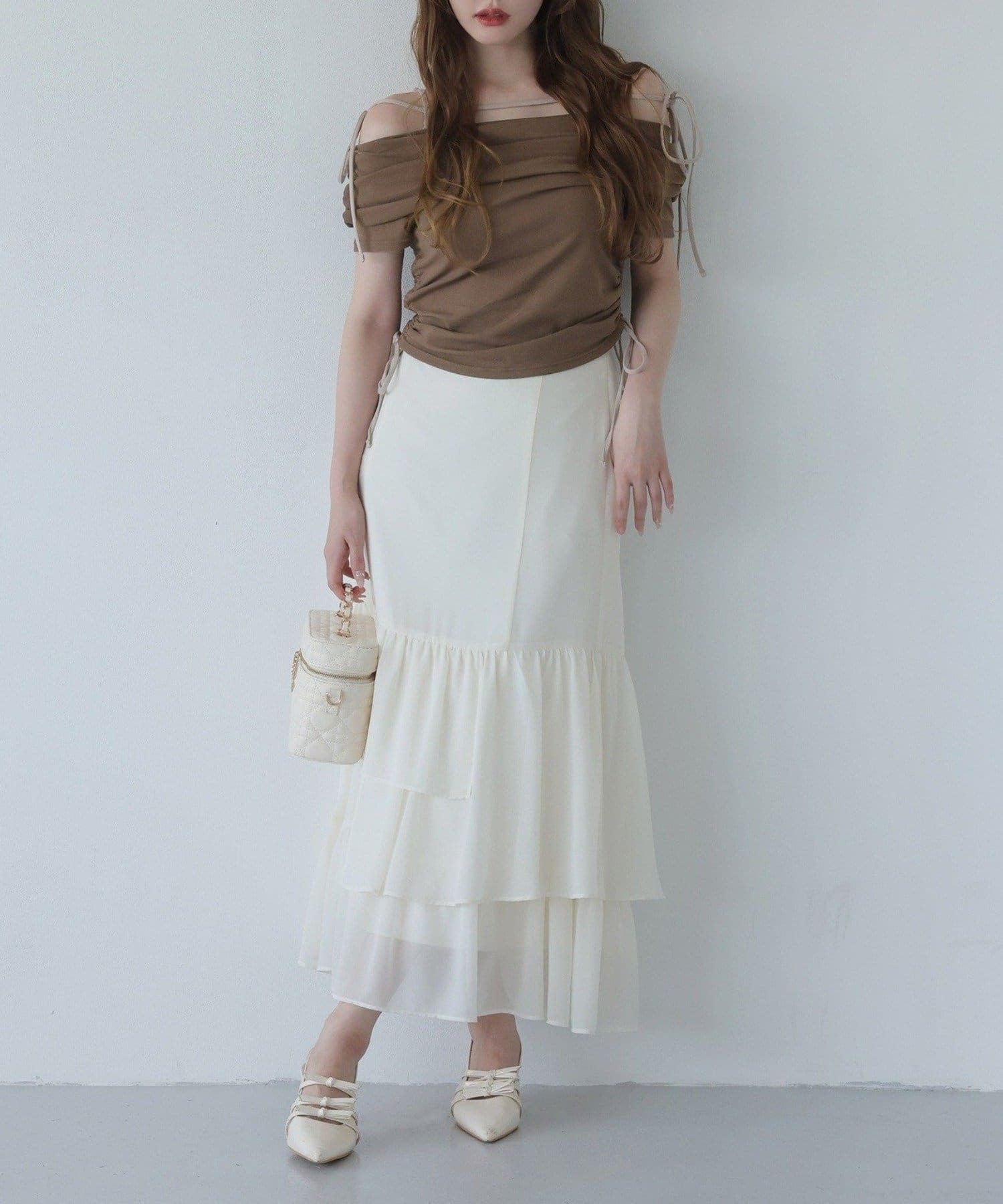 コンパクトなニットやシャツドッキングトップスと合わせてきれいめガーリーに