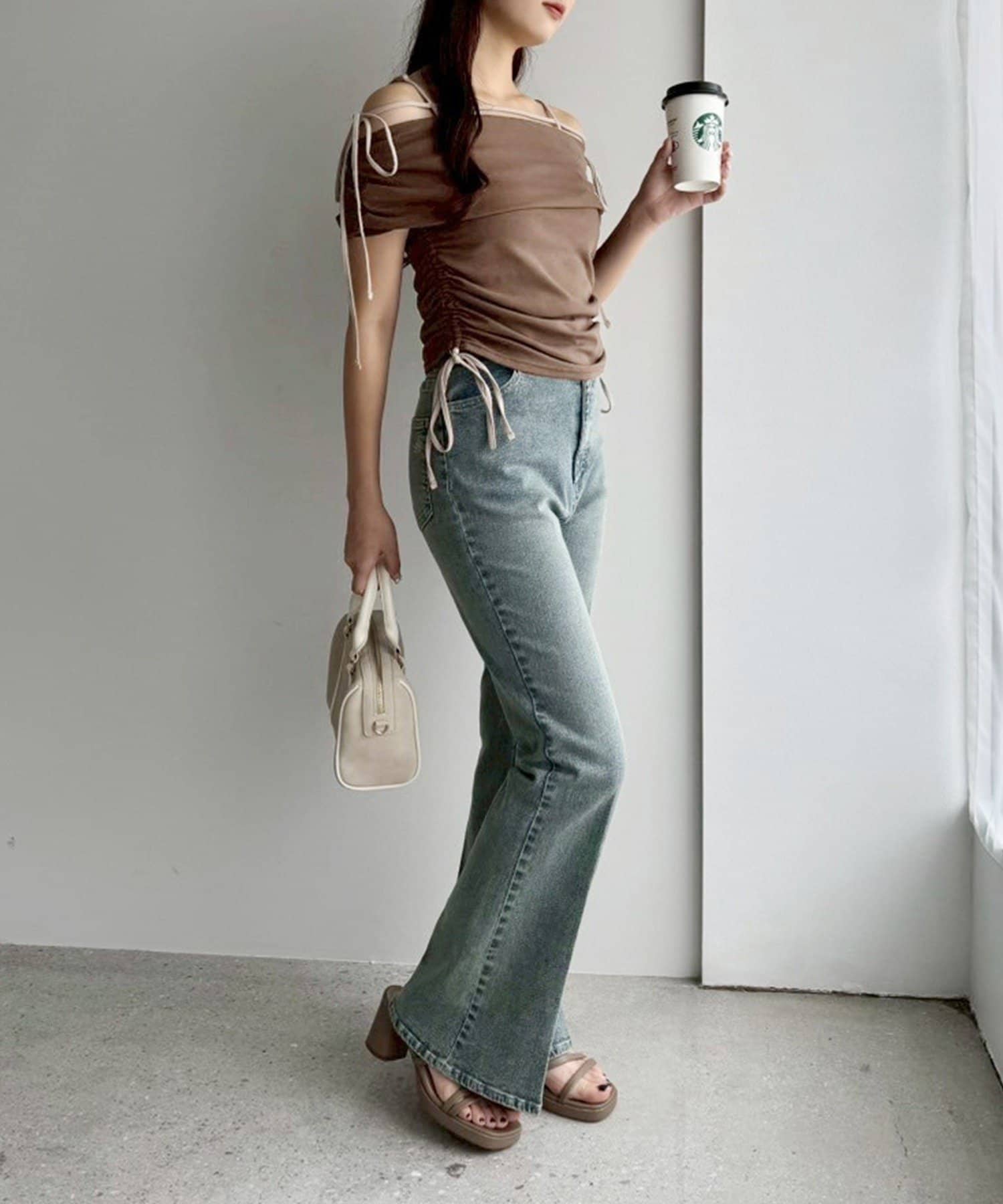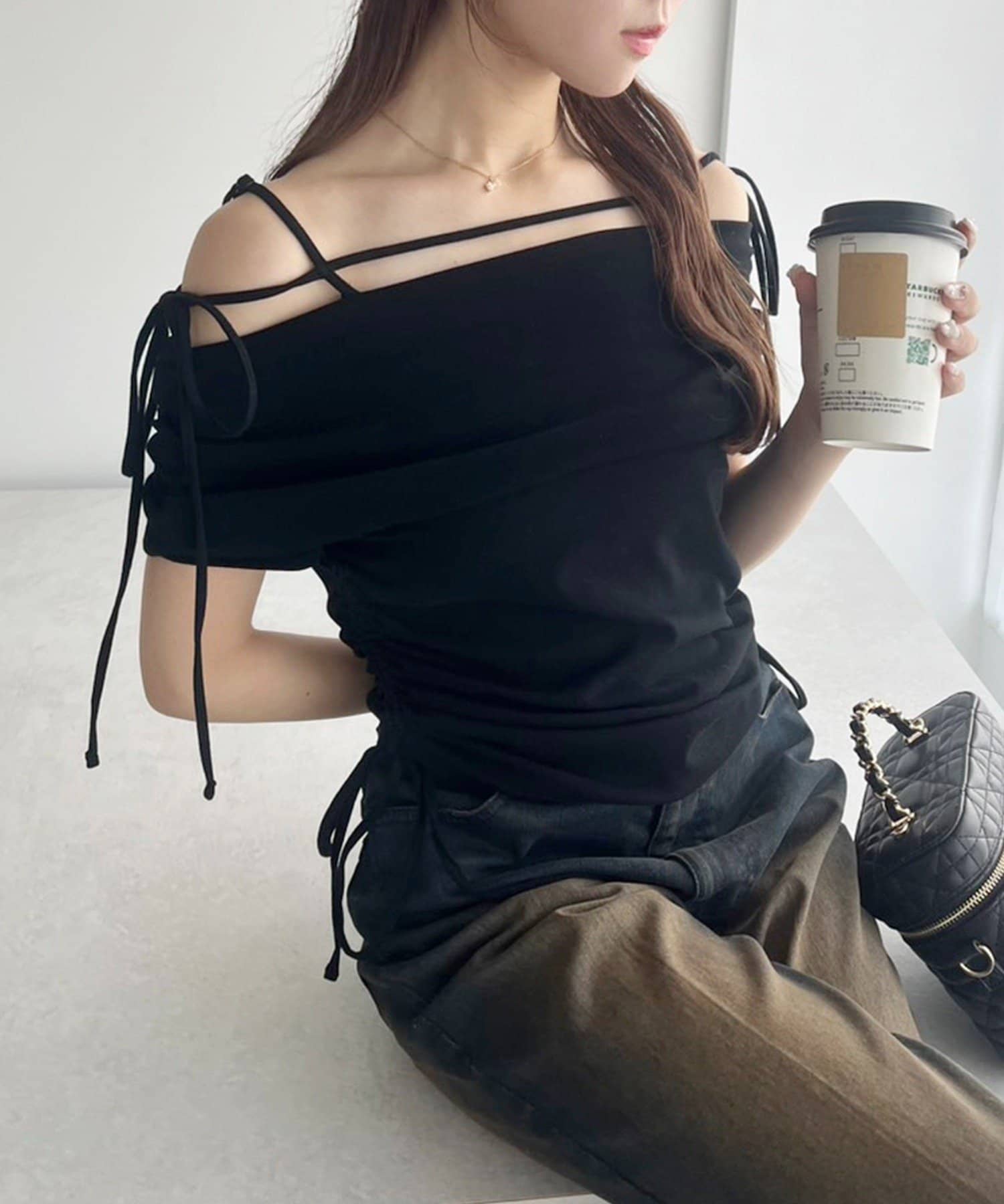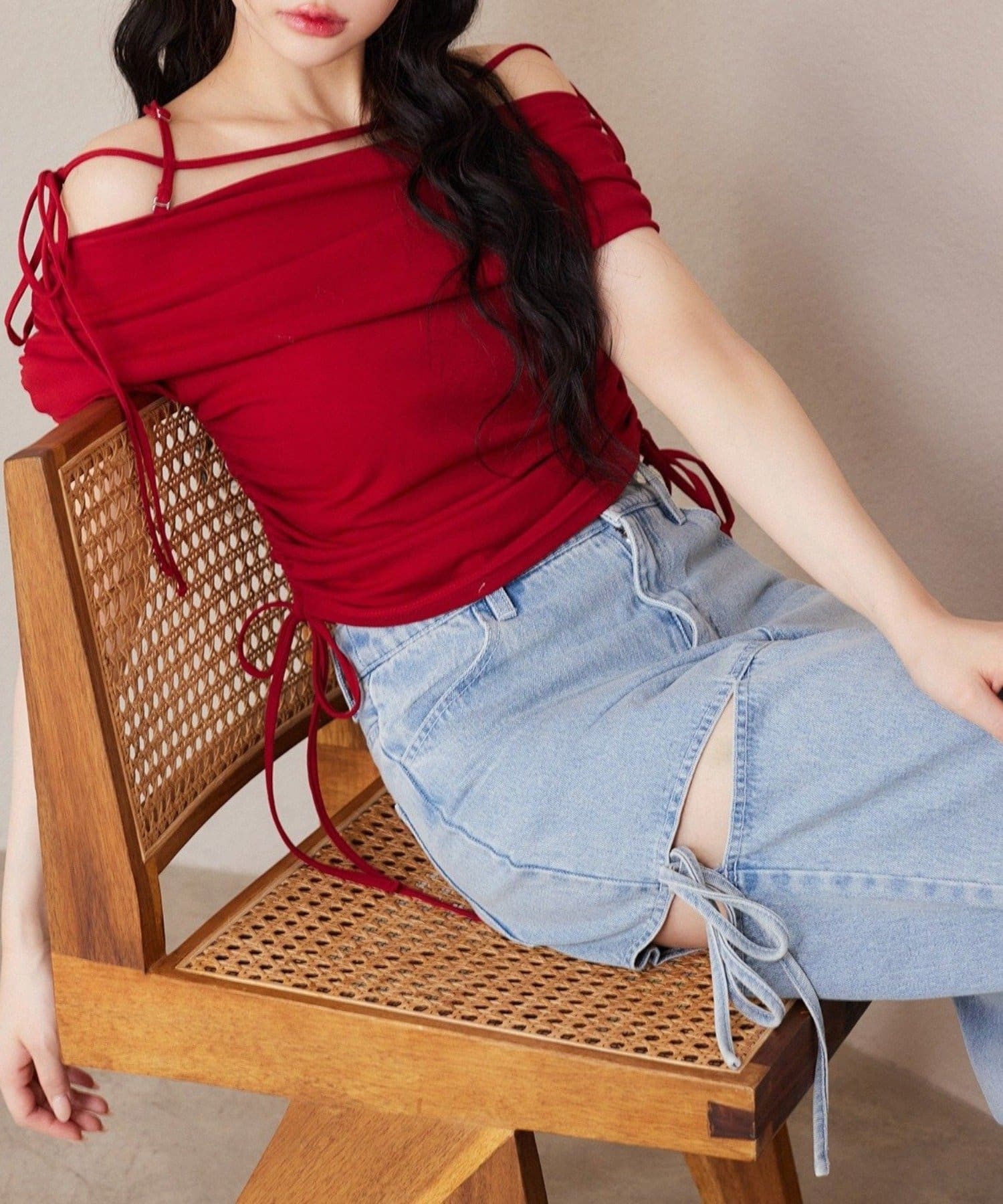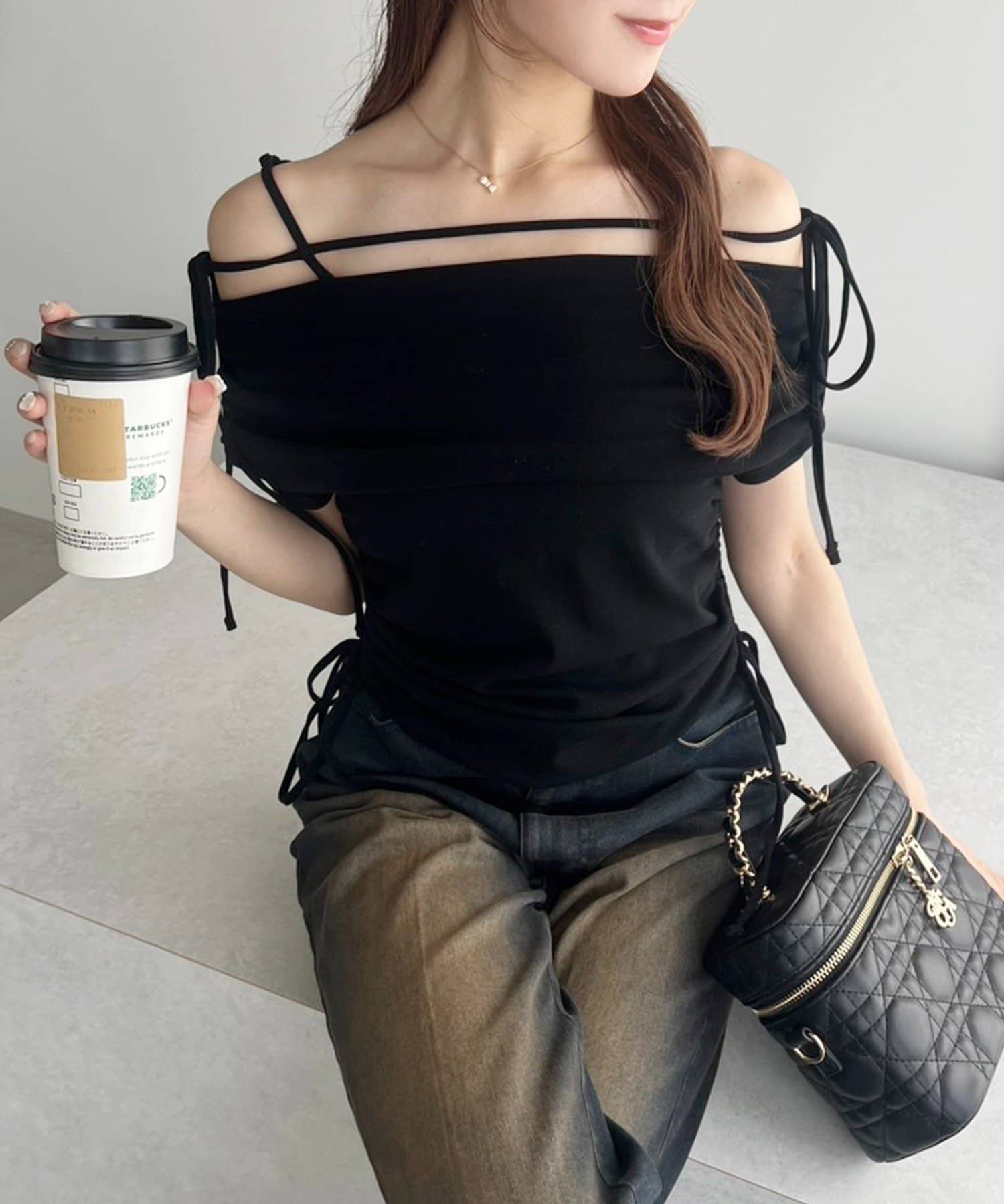 • NICE CLAUP / OLIVE des OLIVE OUTLET(ナイスクラップ  / オリーブ デ オリーブ アウトレット) 【one after another】オフショルトップス