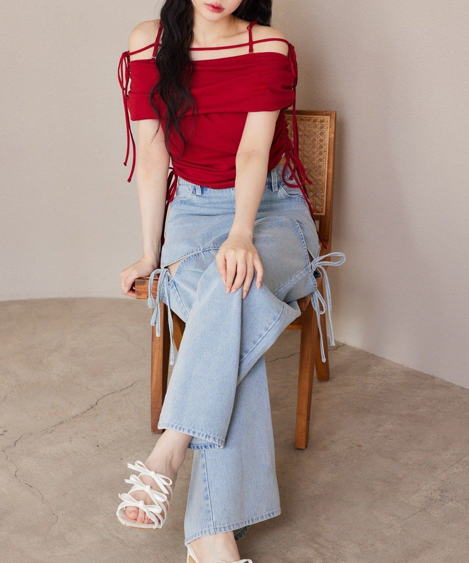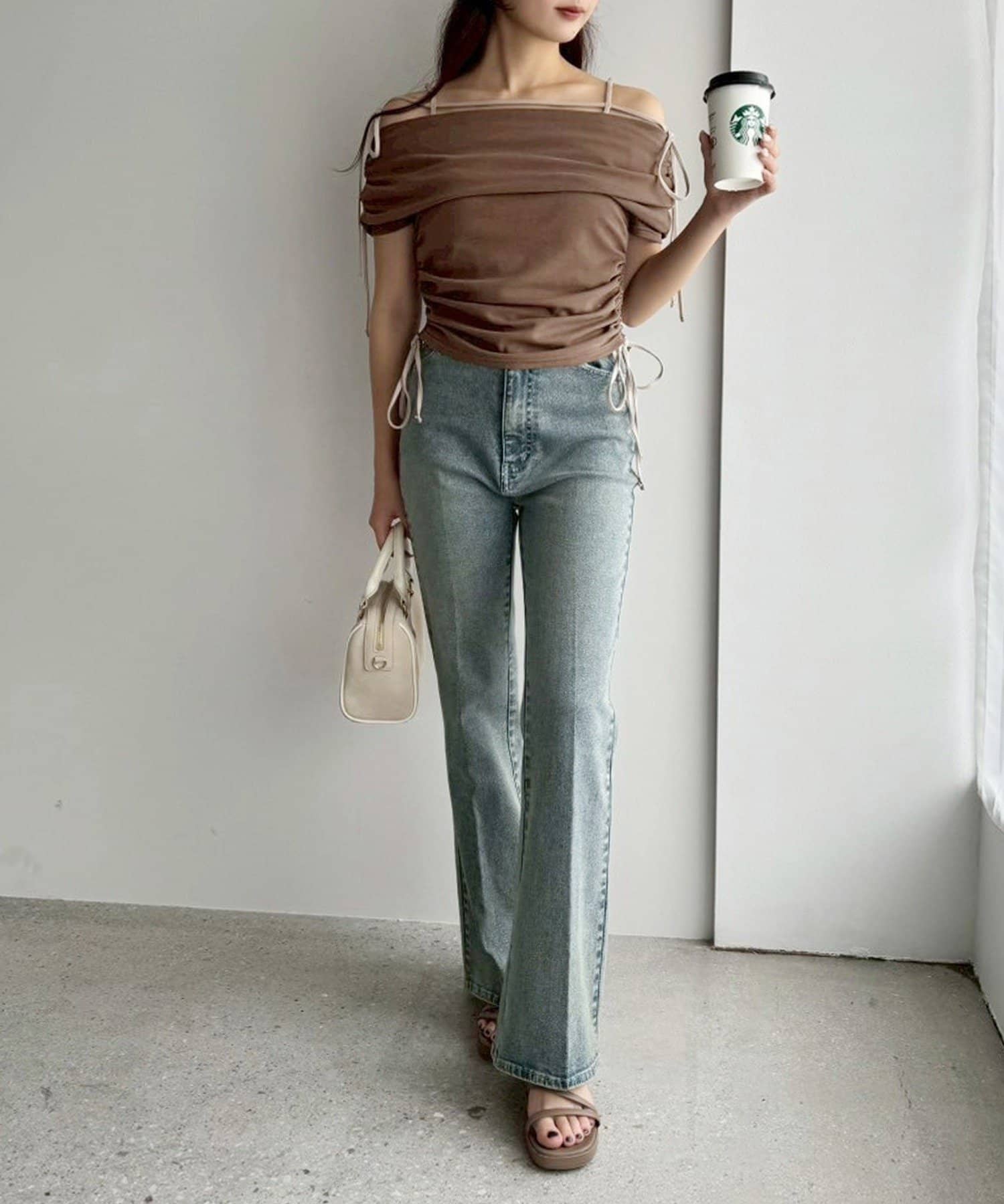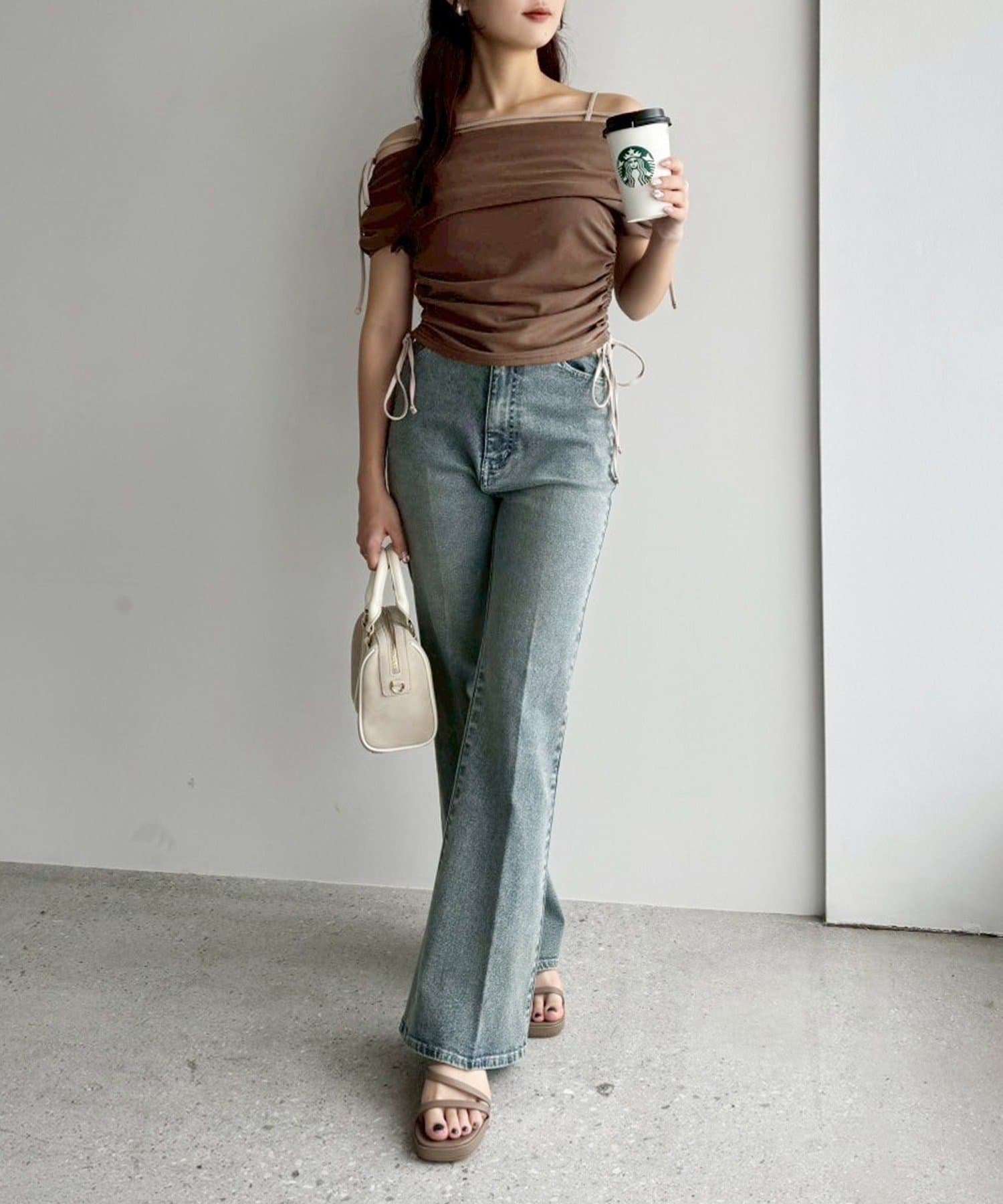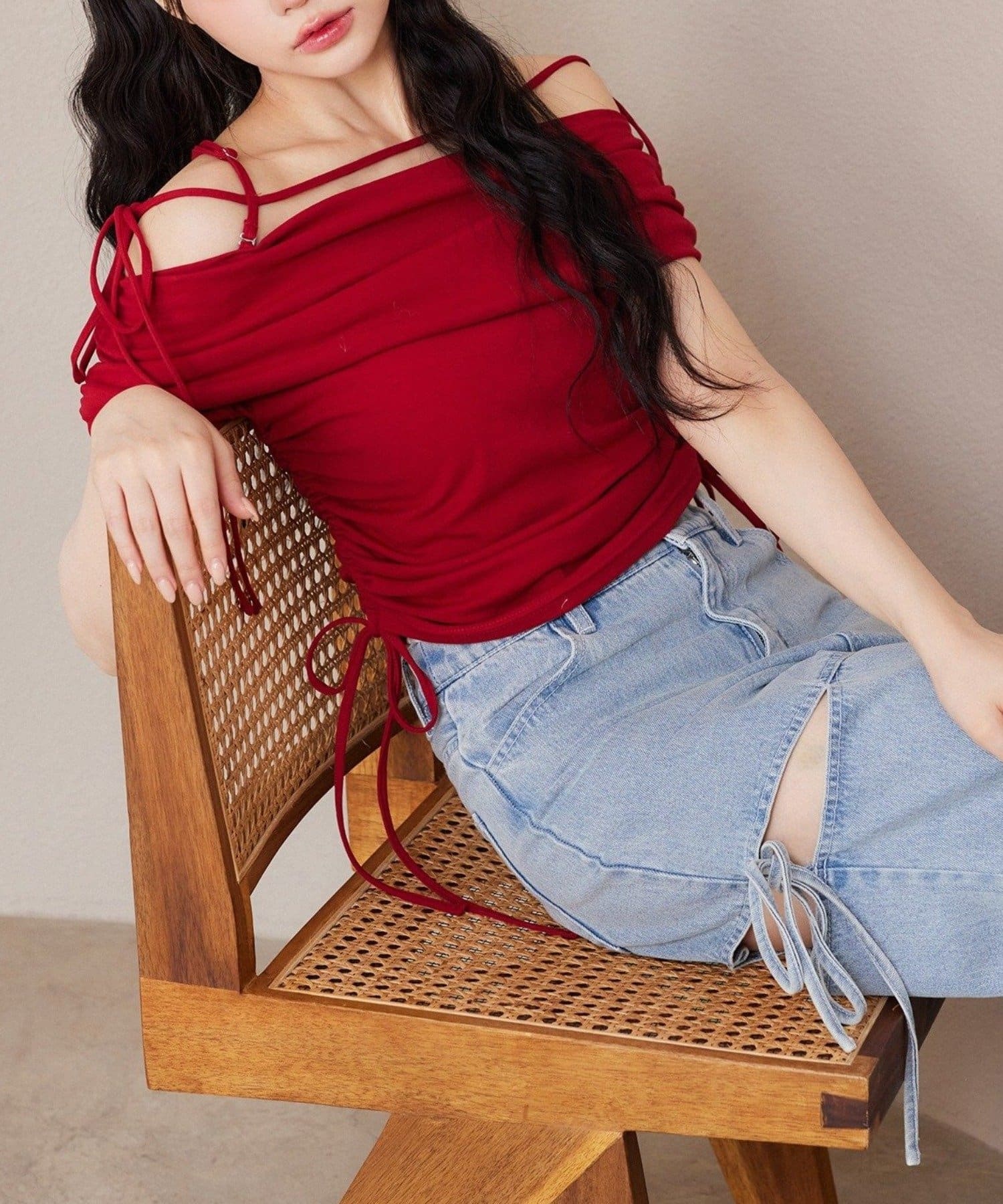 • NICE CLAUP / OLIVE des OLIVE OUTLET(ナイスクラップ  / オリーブ デ オリーブ アウトレット) 【one after another】オフショルトップス