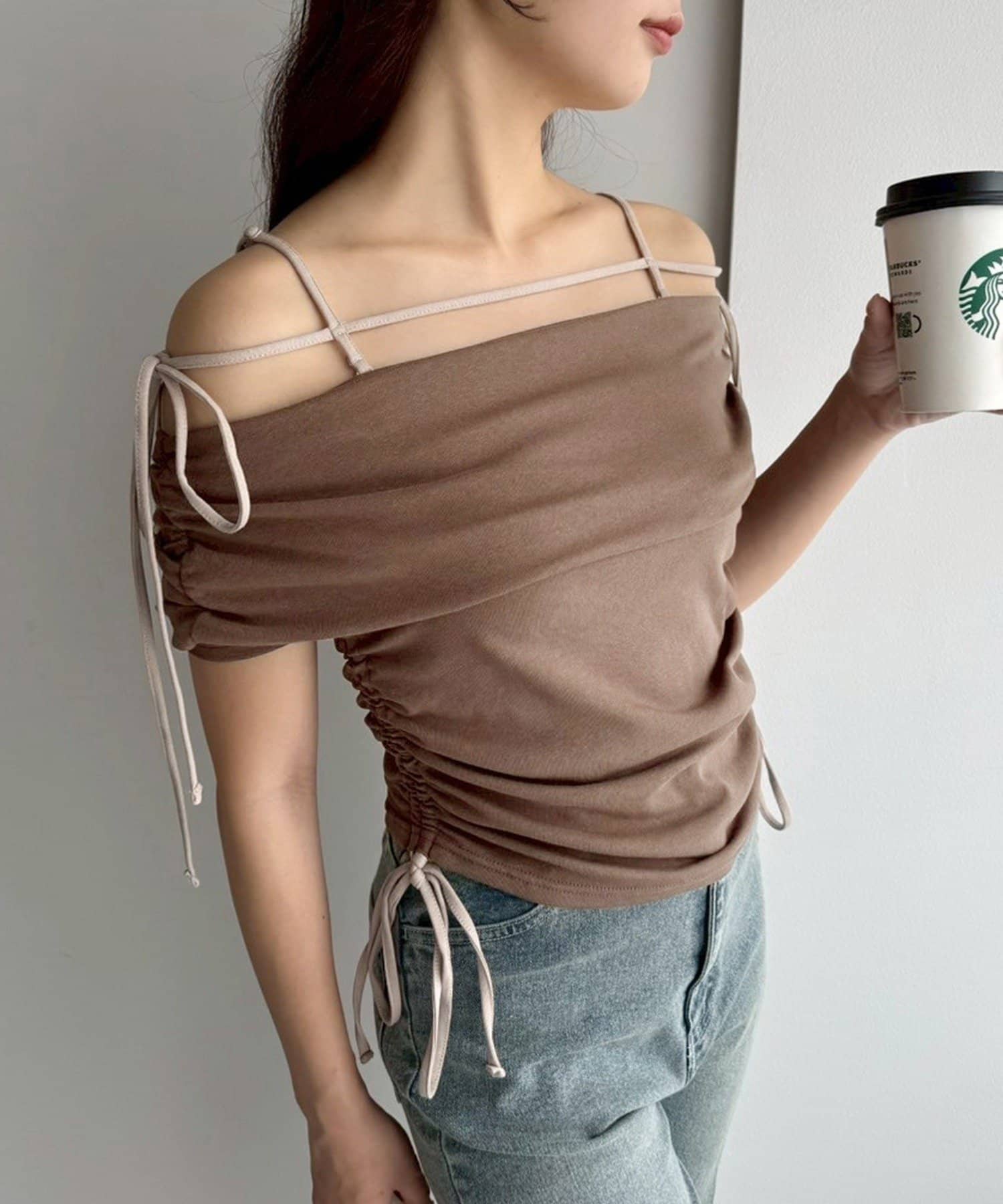 NICE CLAUP / OLIVE des OLIVE OUTLET(ナイスクラップ  / オリーブ デ オリーブ アウトレット) 【one after another】オフショルトップス