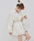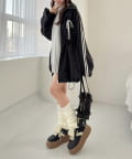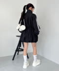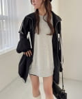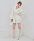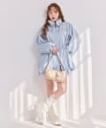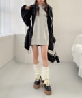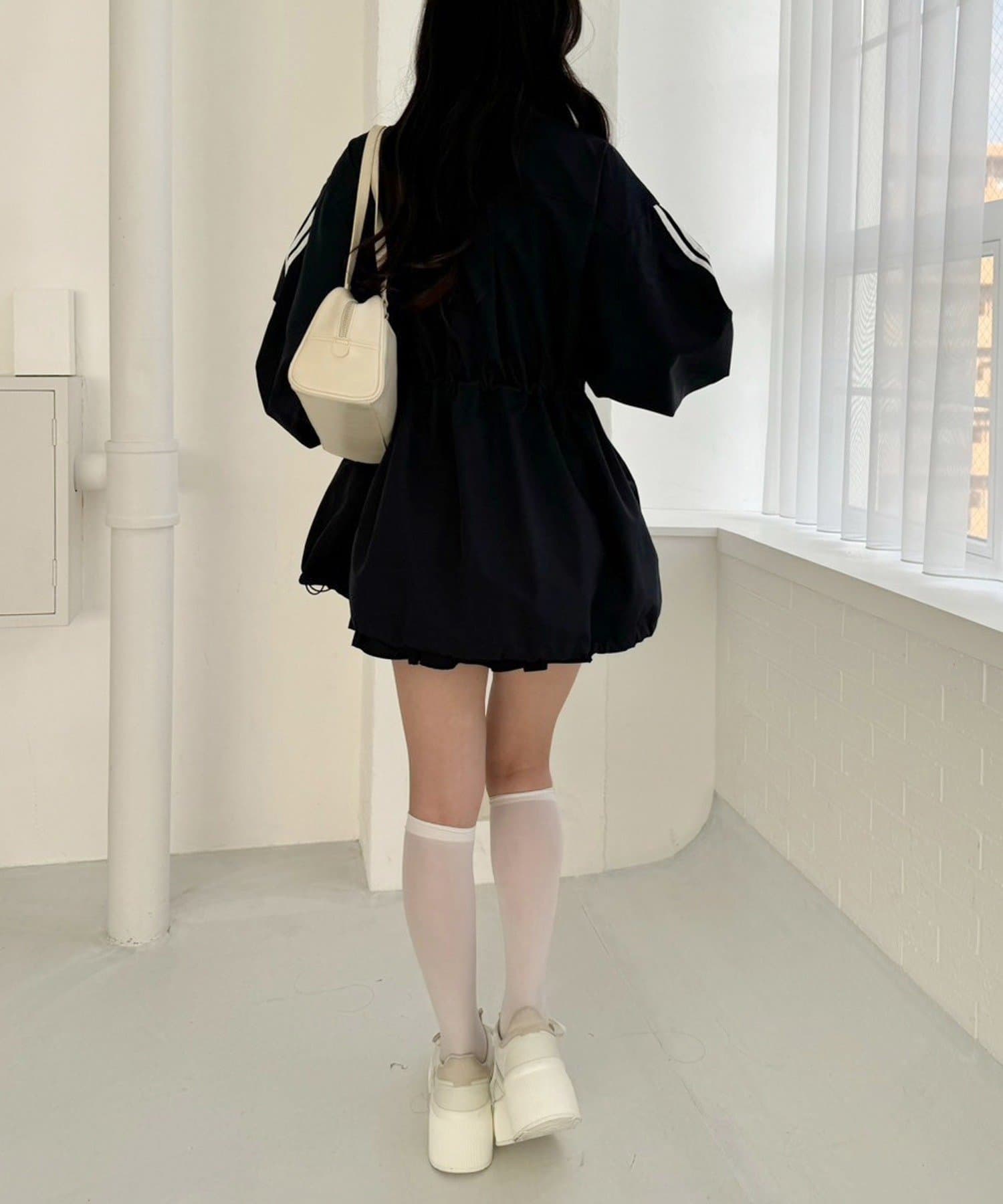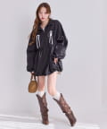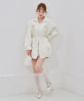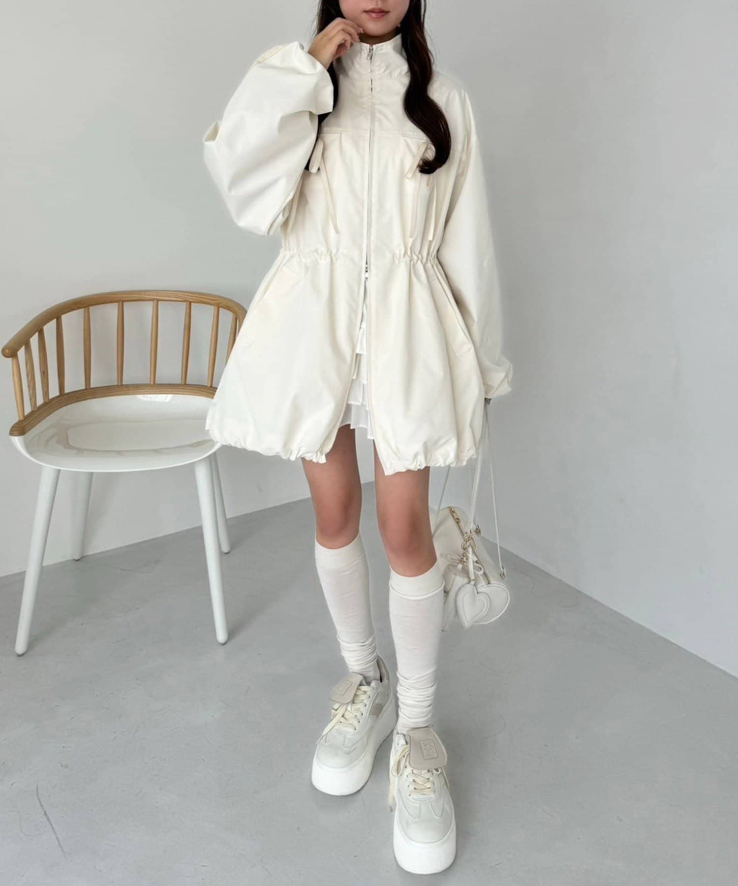 ミニボトムと合わせて裾をチラ見せさせるスタイリングが可愛いです◎