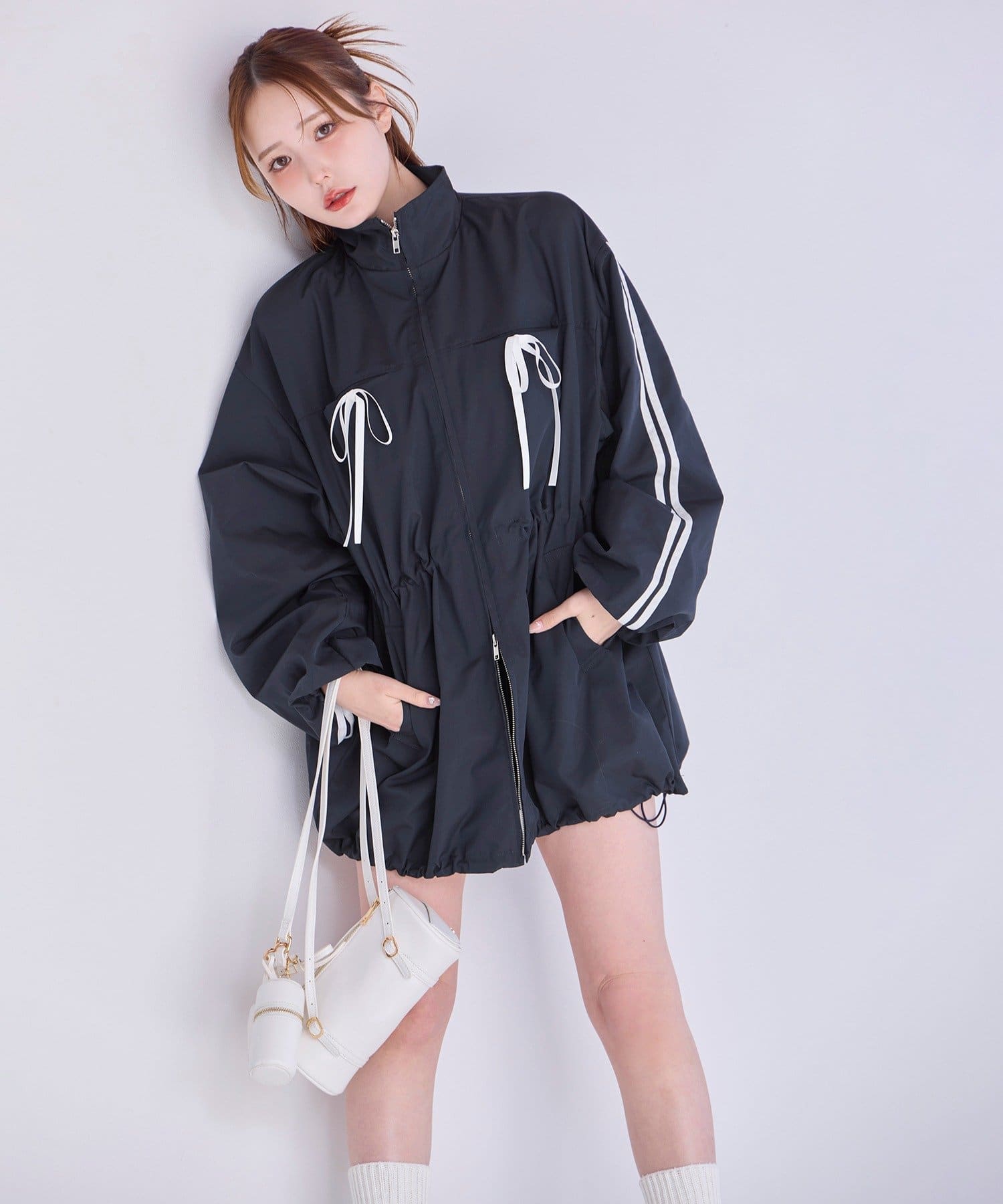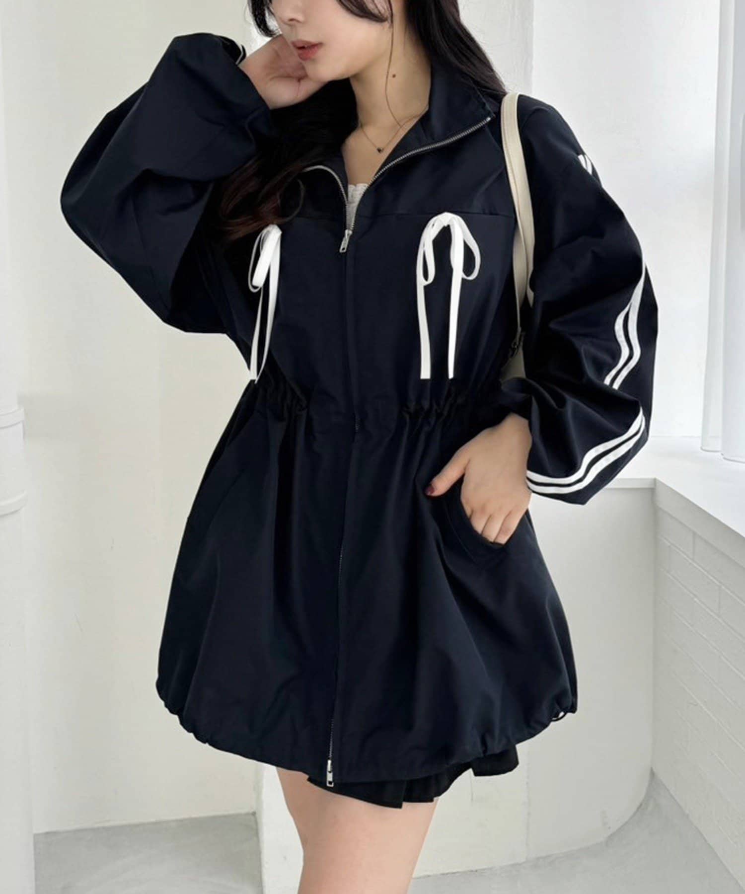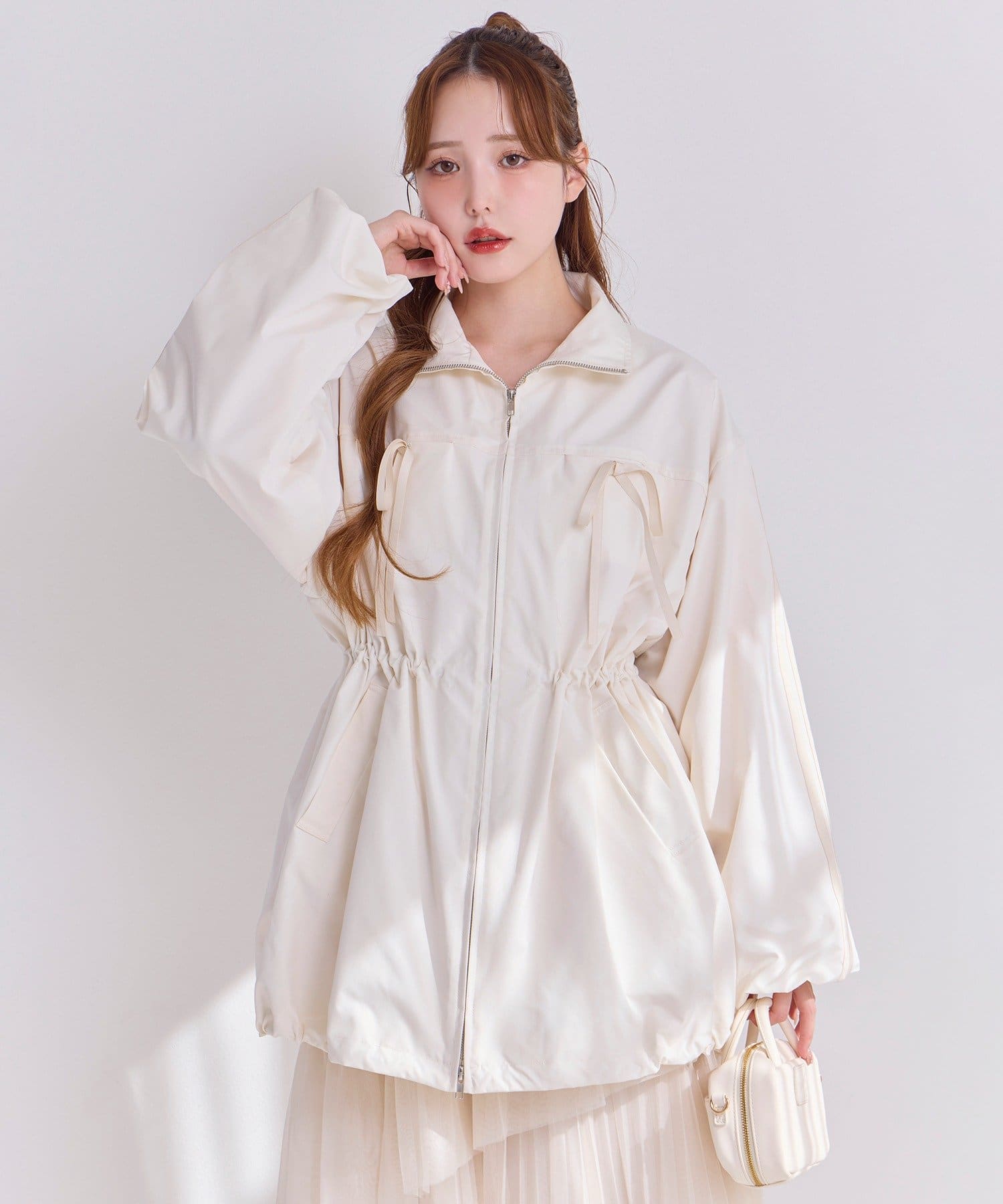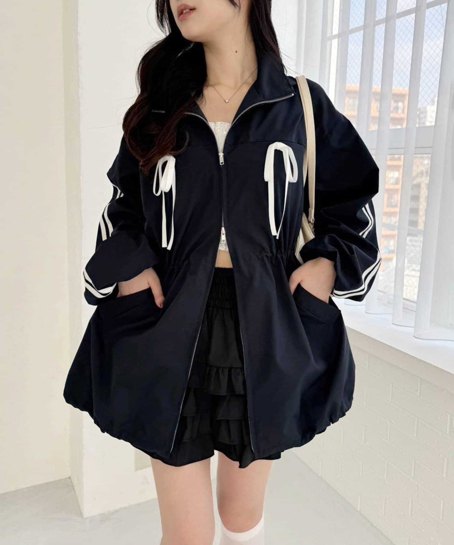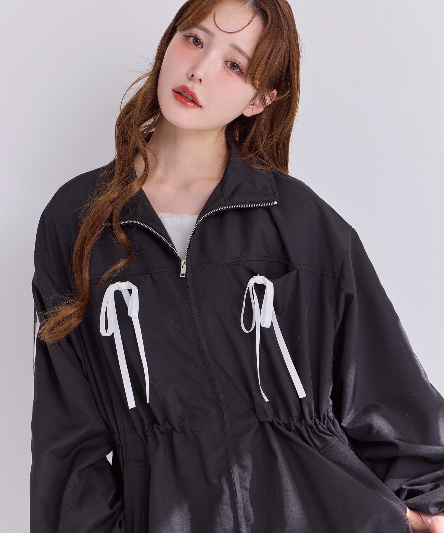 袖のラインと胸元のリボンがポイントのミドルブルゾン
