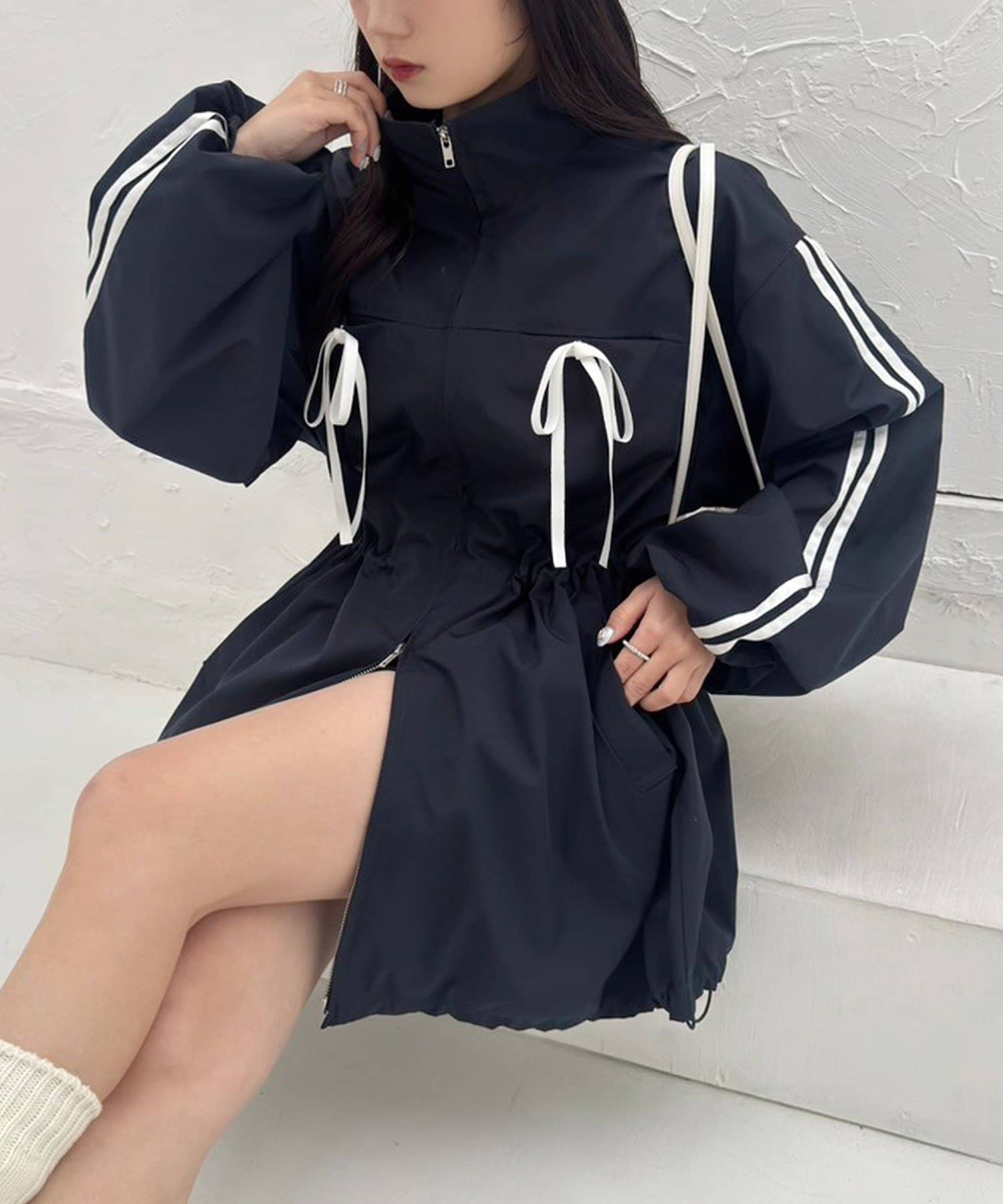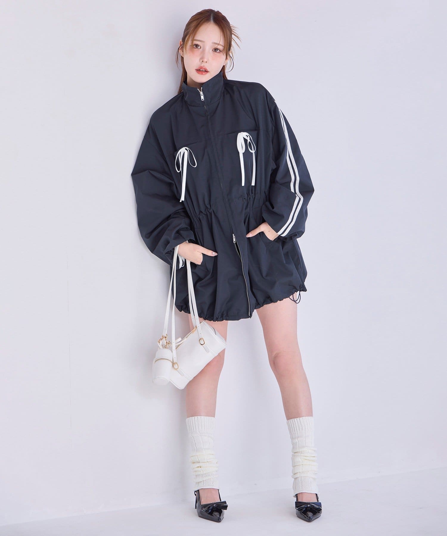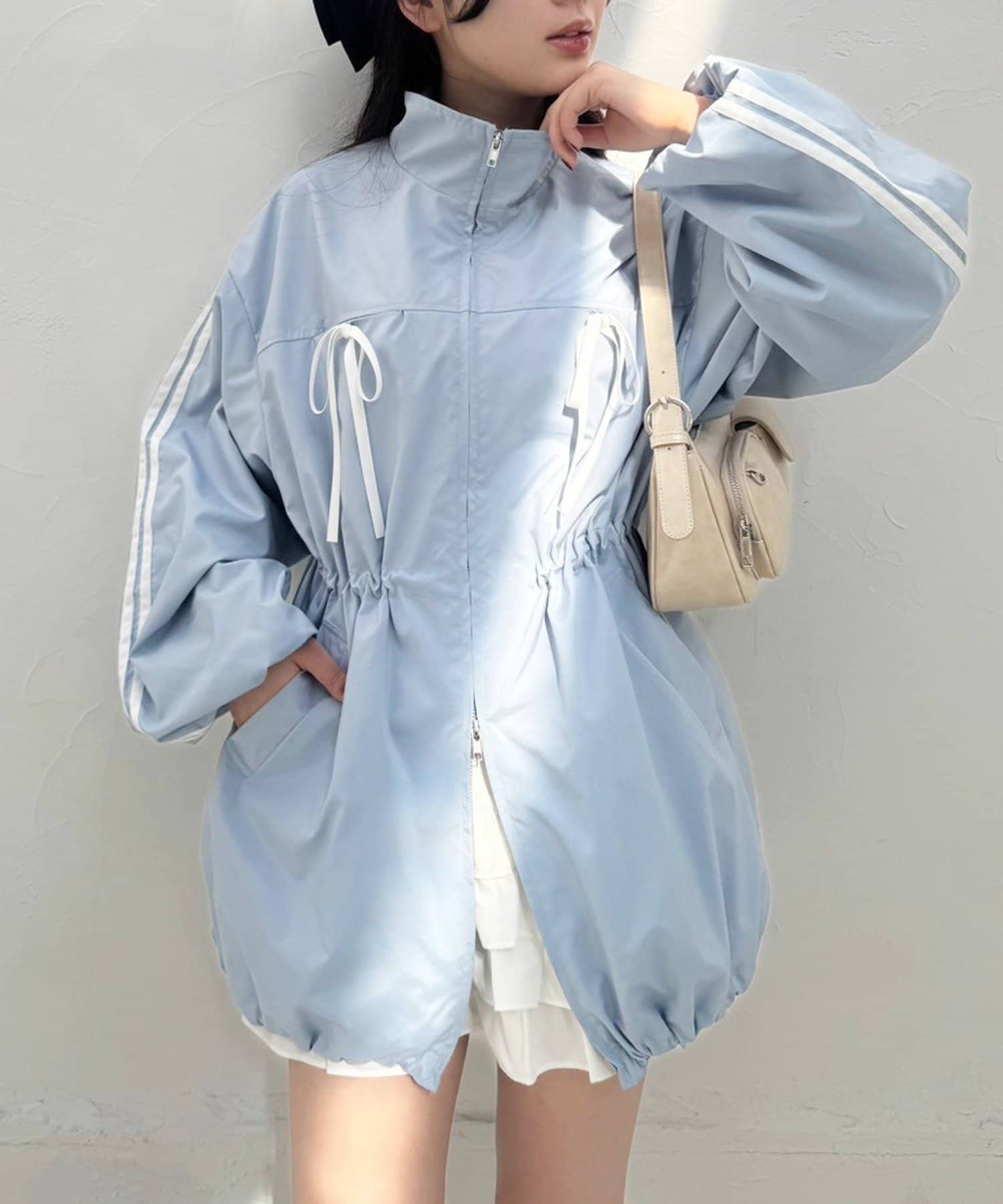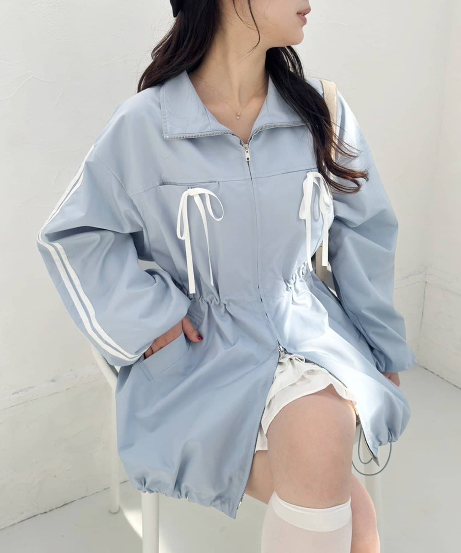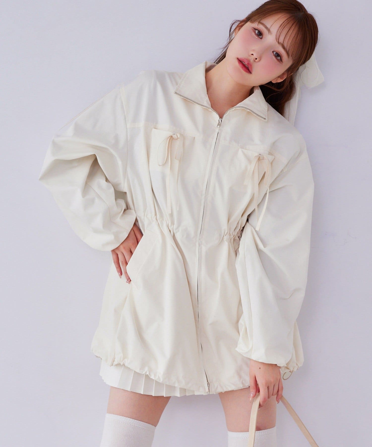 袖のラインと胸元のリボンがポイントのミドルブルゾン