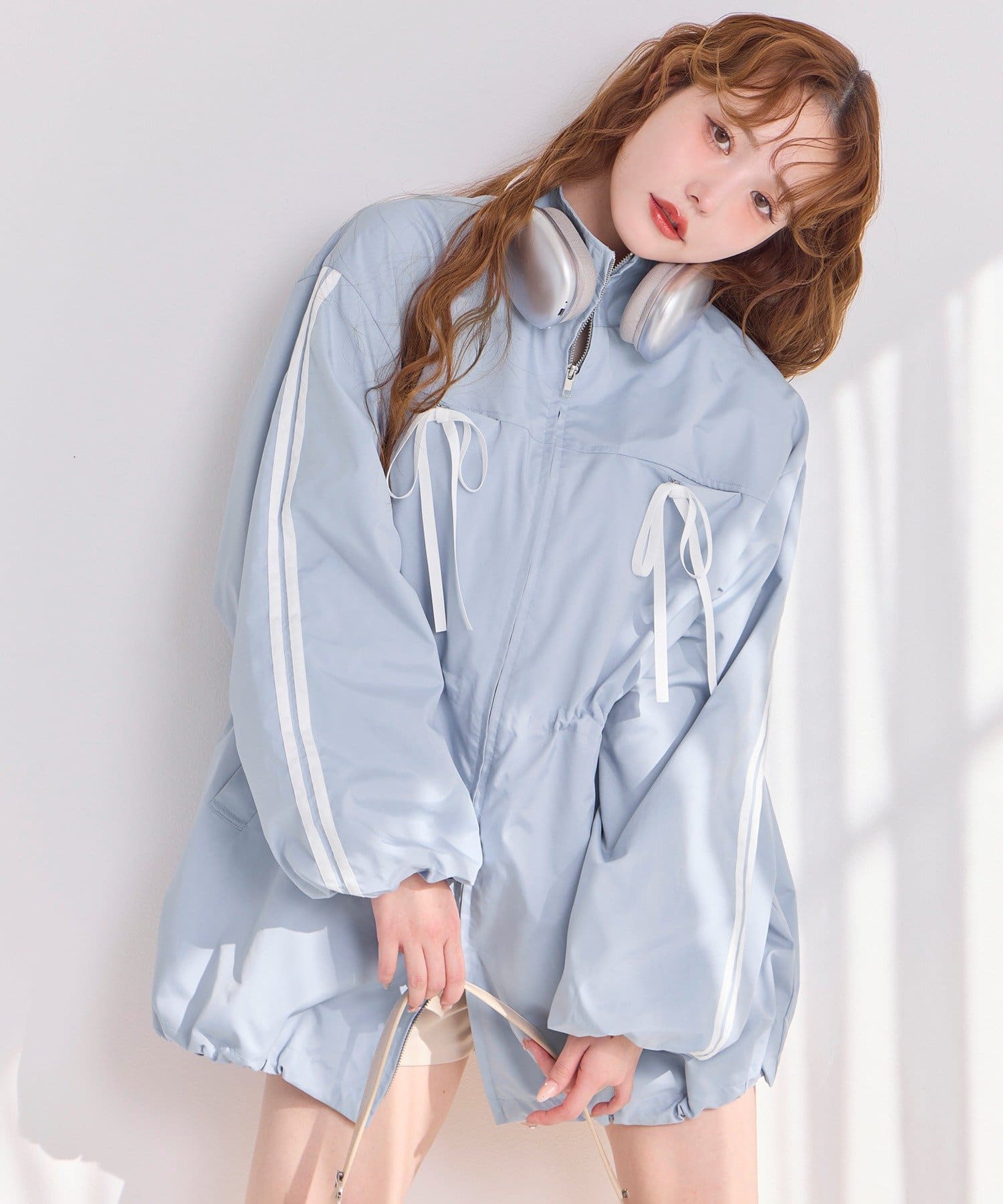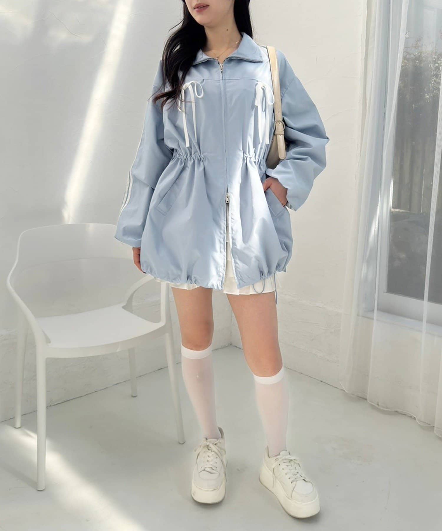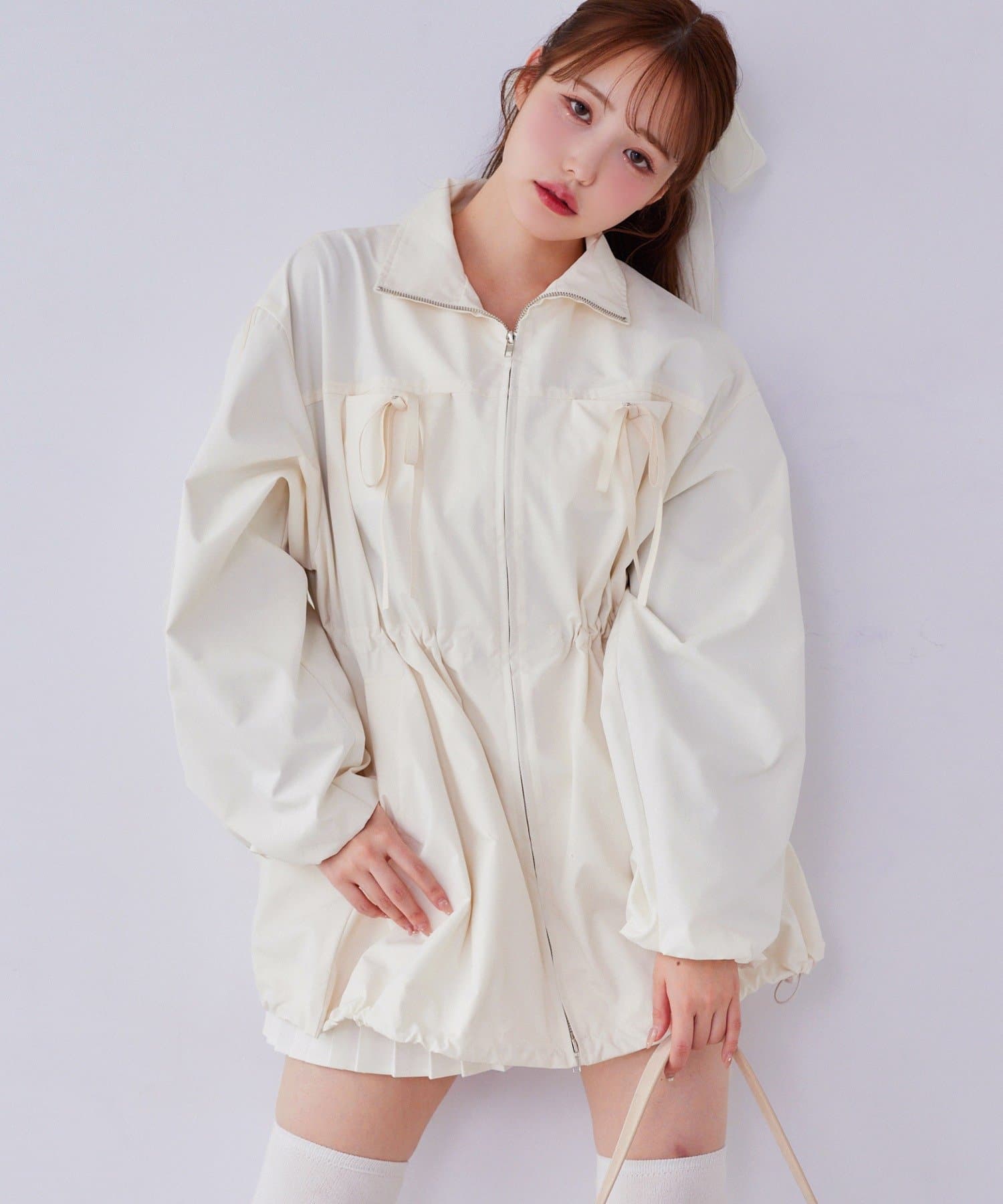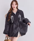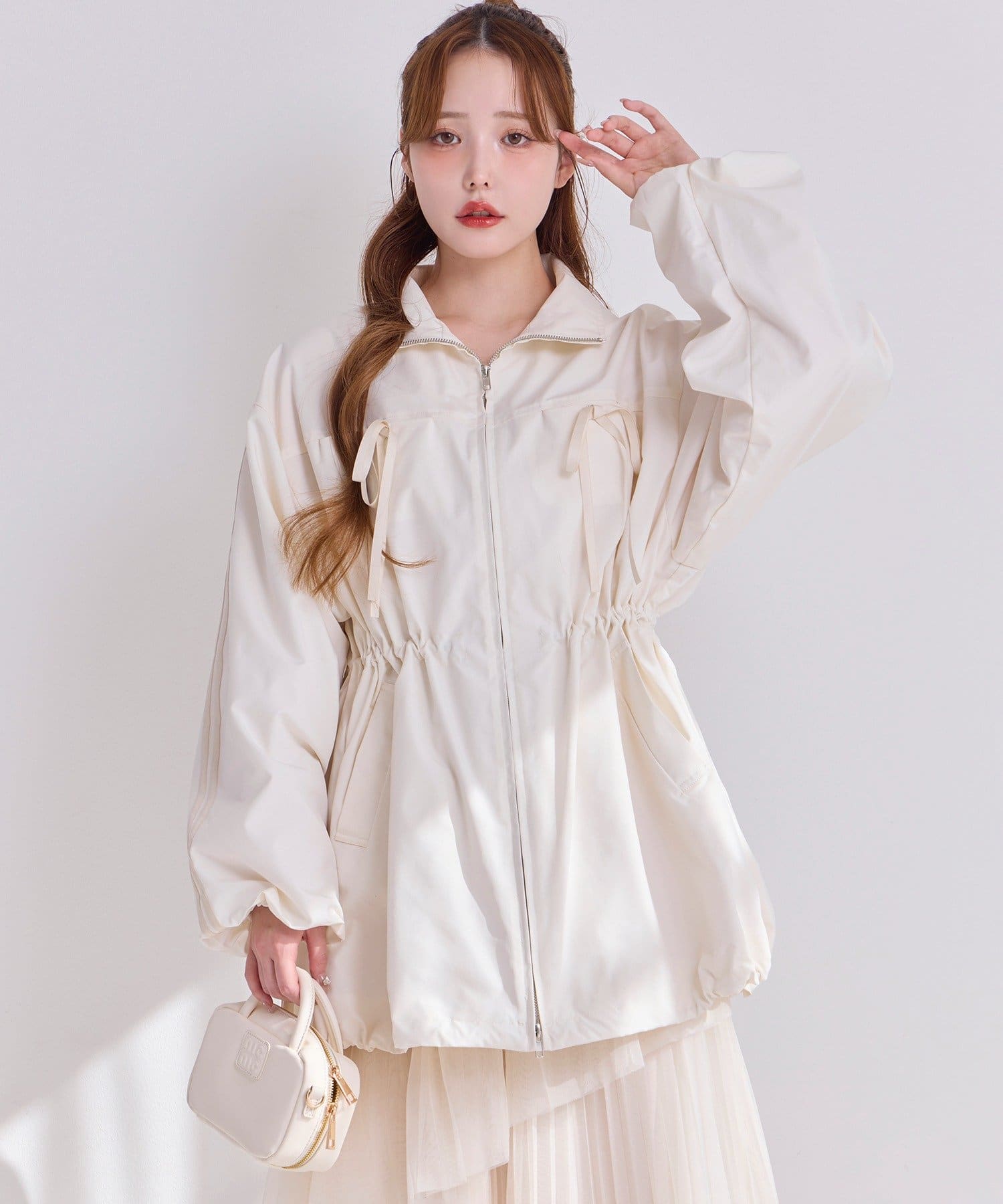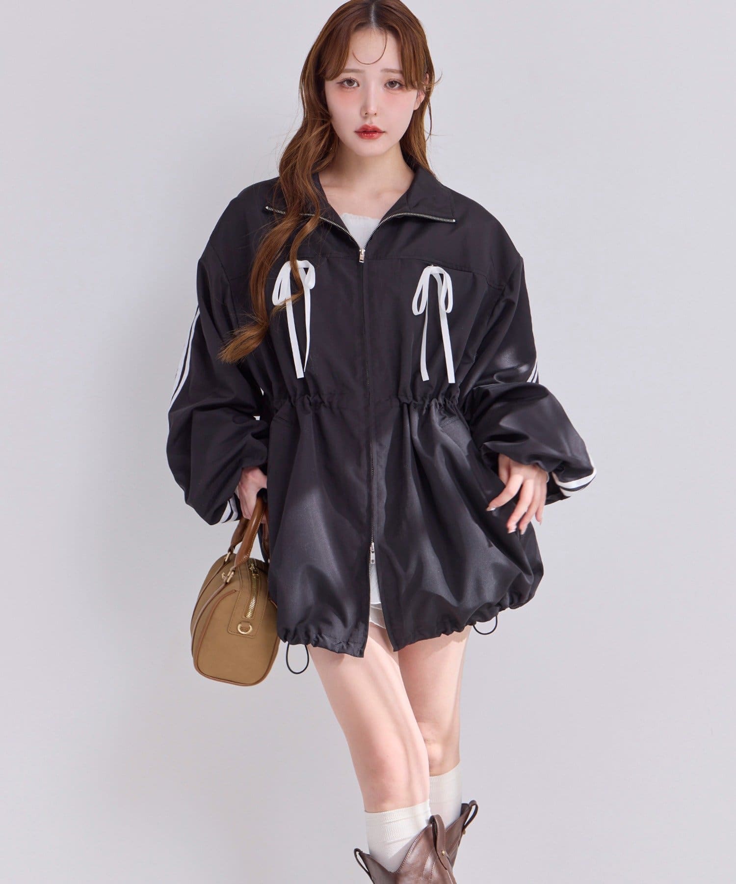 袖のラインと胸元のリボンがポイントのミドルブルゾン