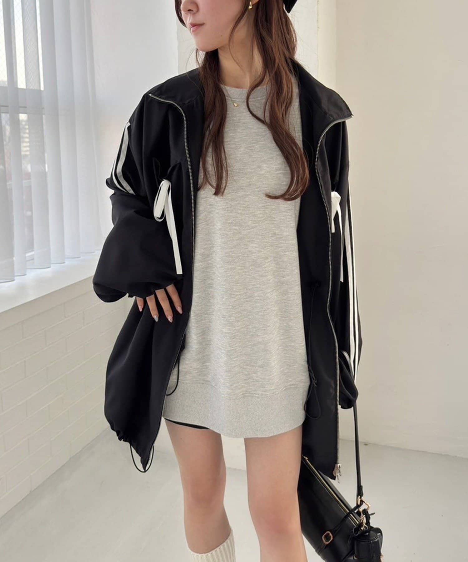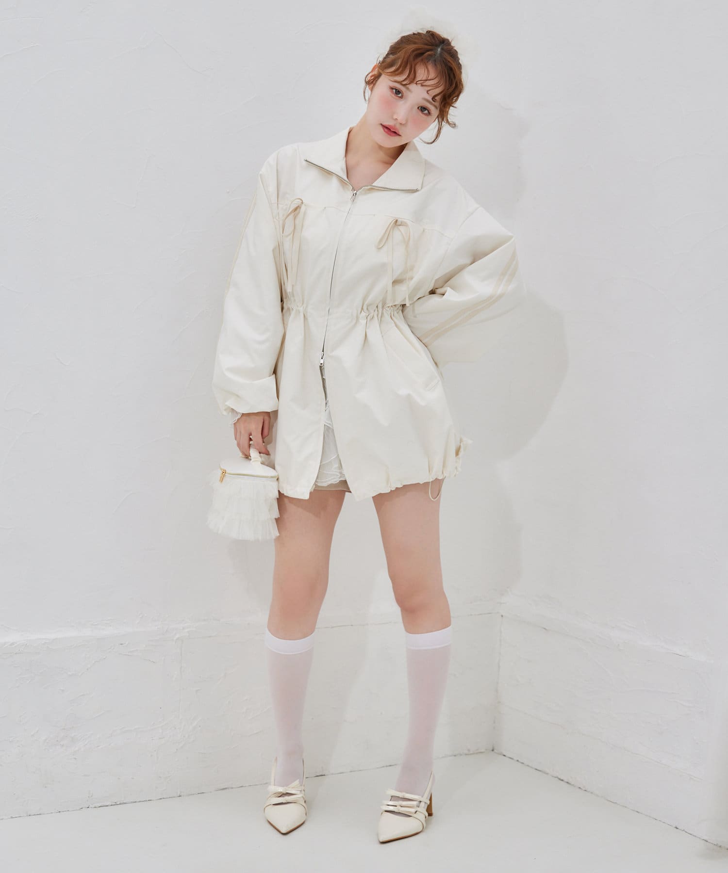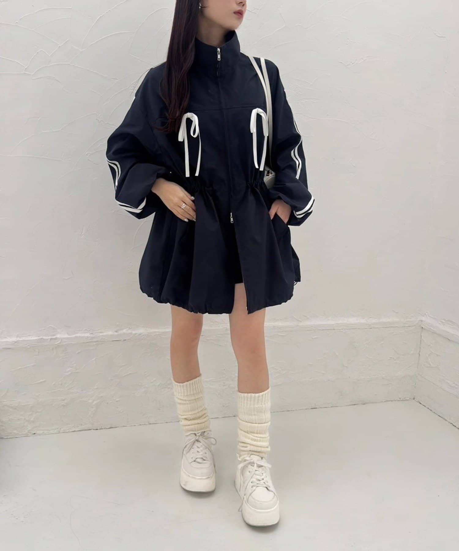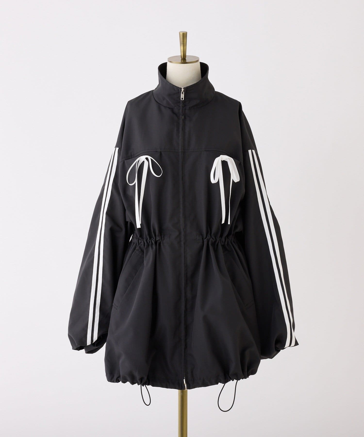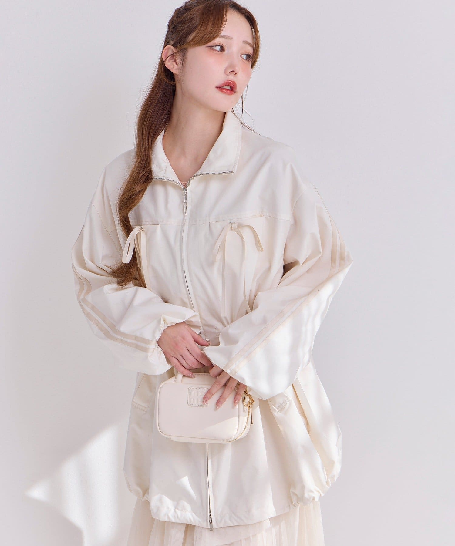 袖のラインと胸元のリボンがポイントのミドルブルゾン