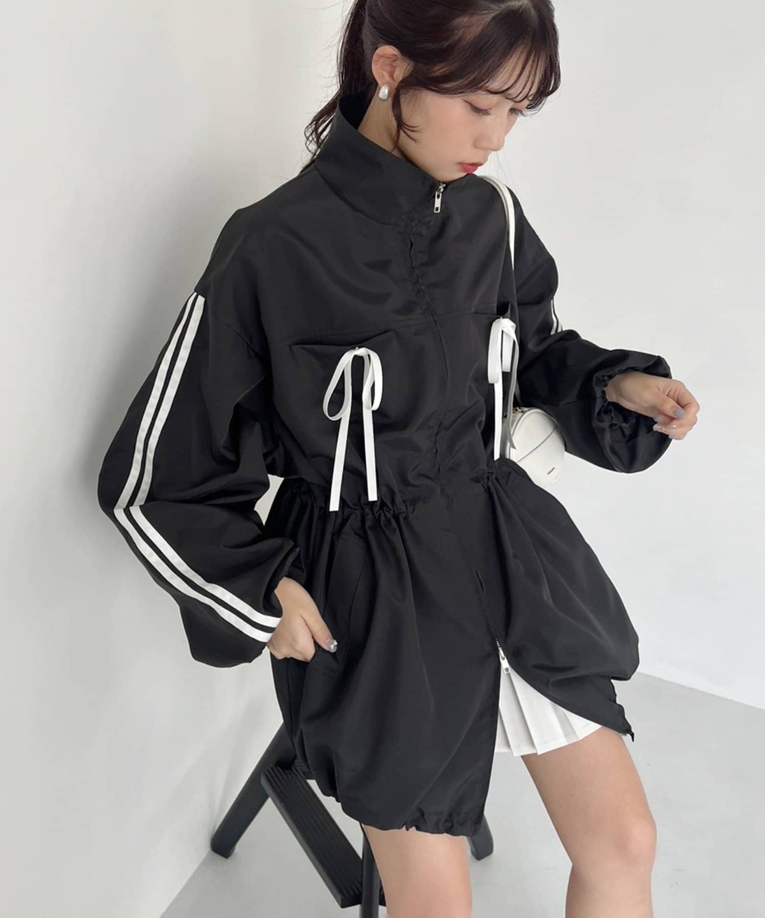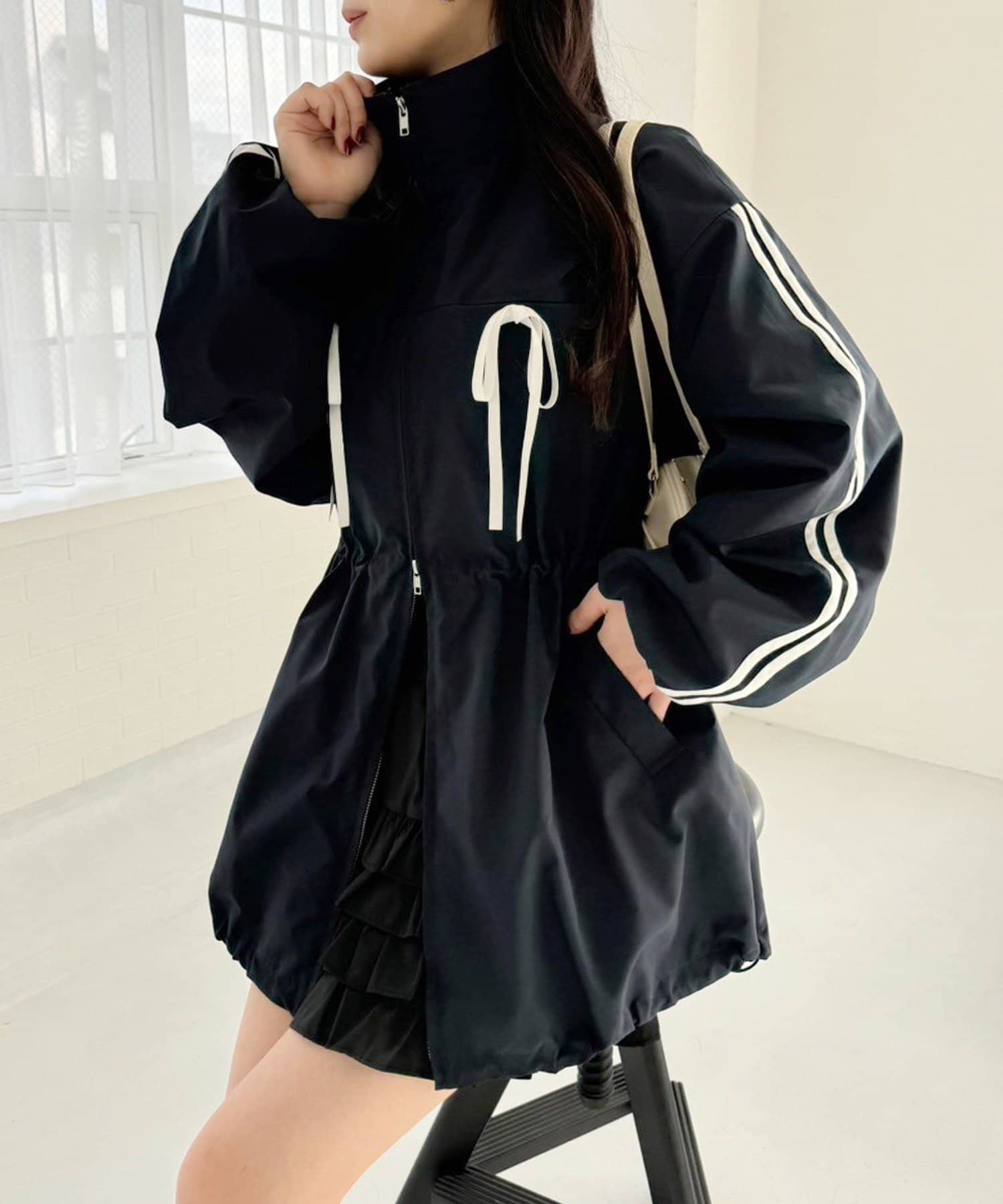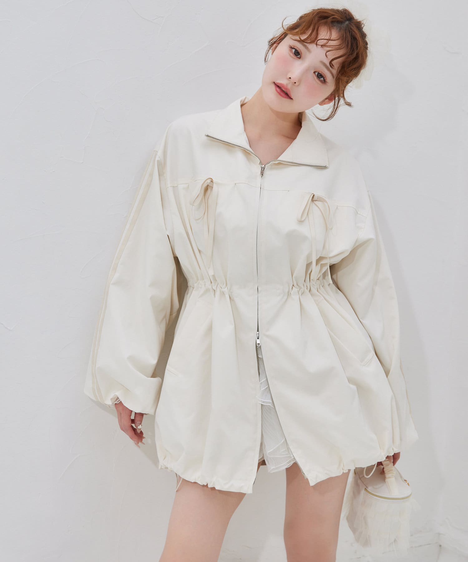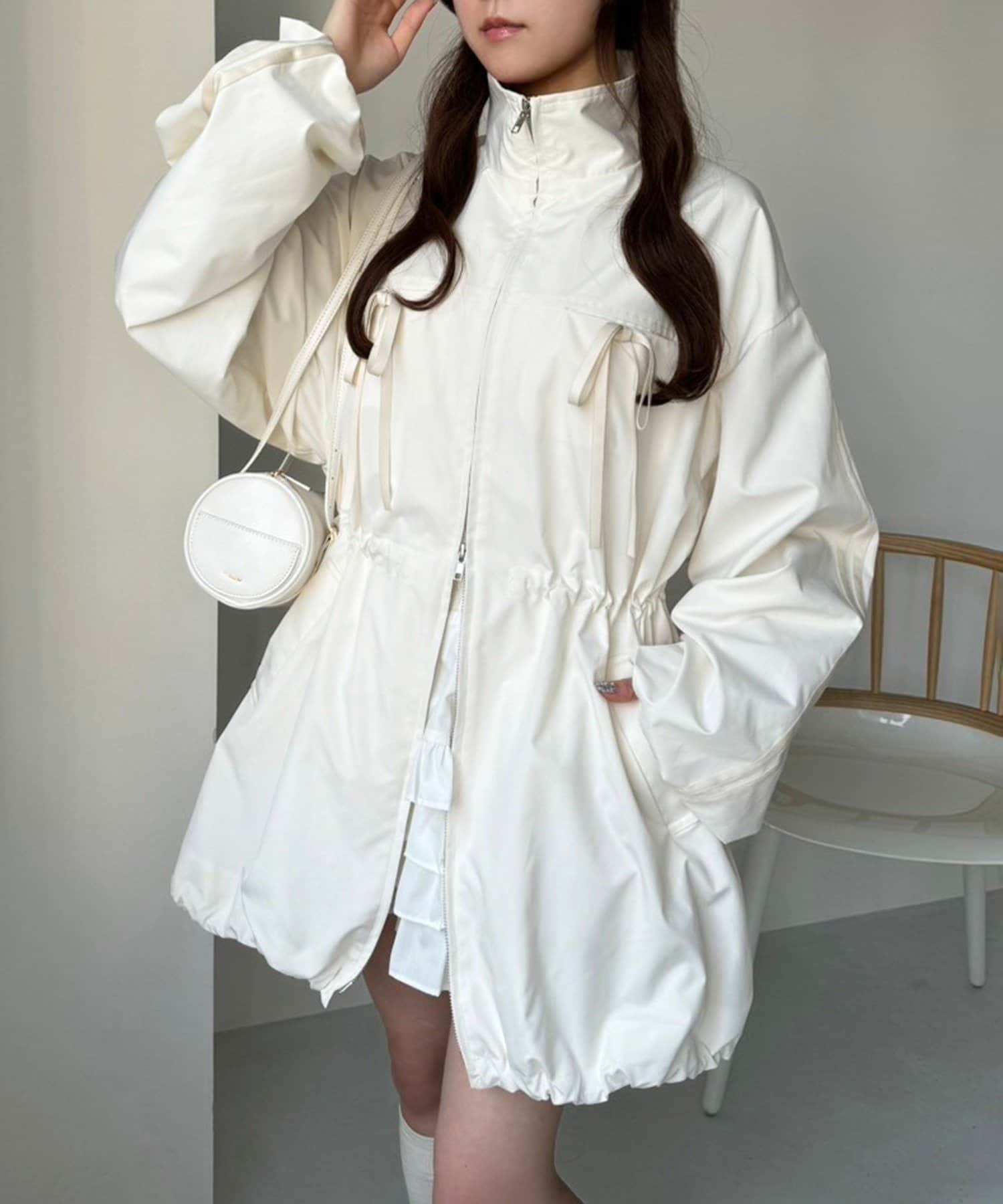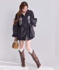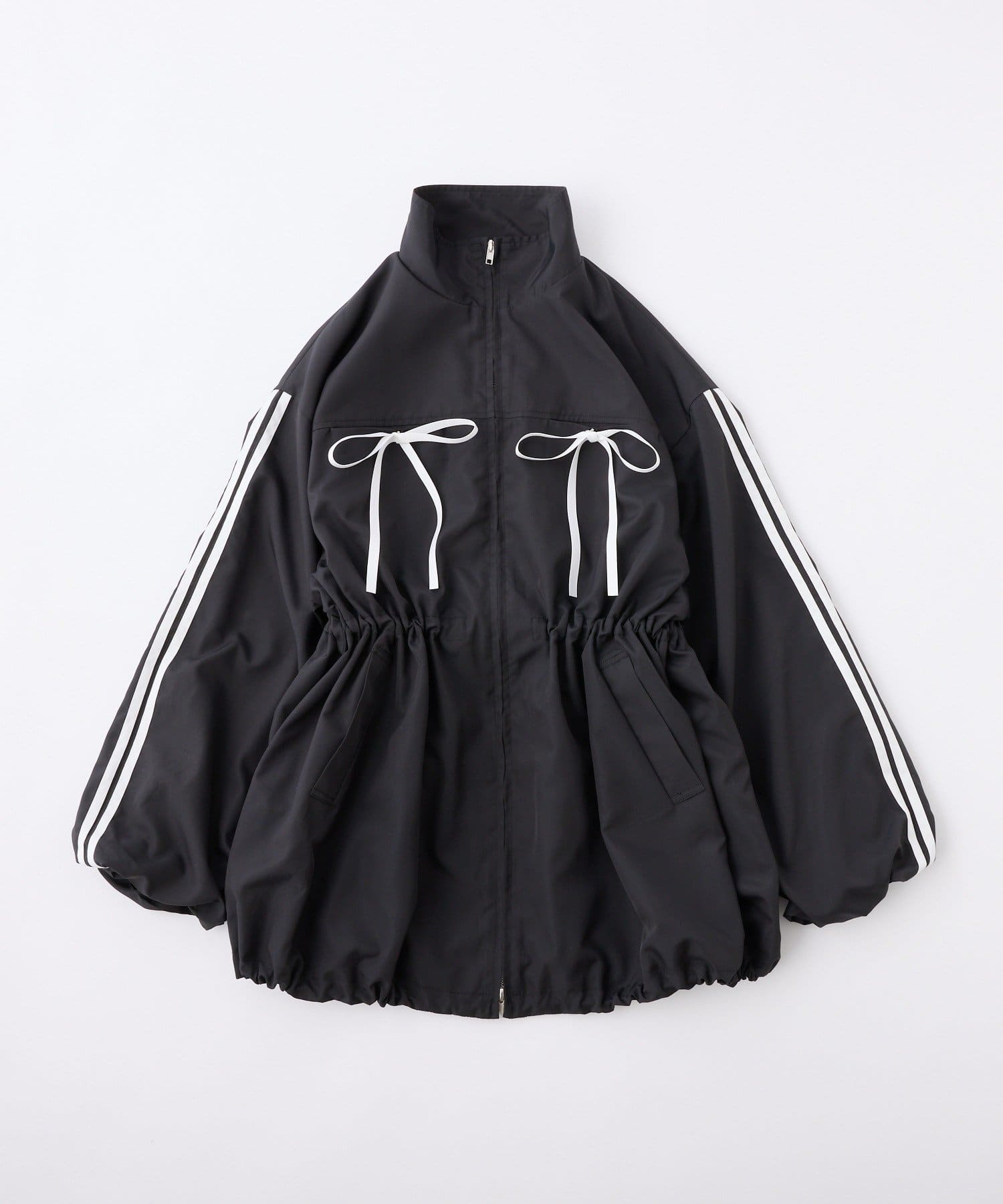 袖のラインと胸元のリボンがポイントのミドルブルゾン