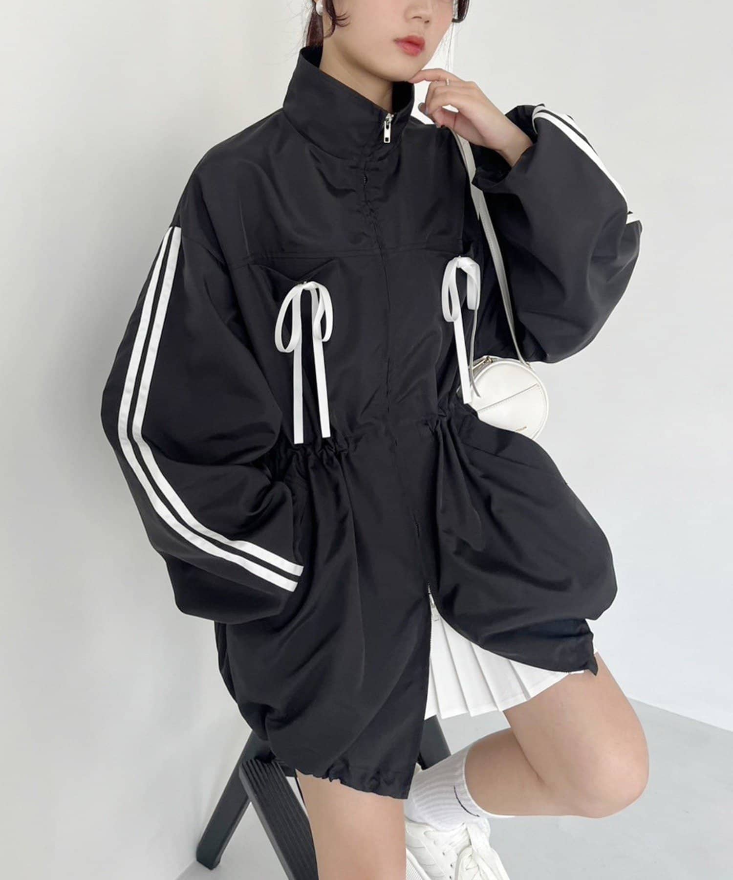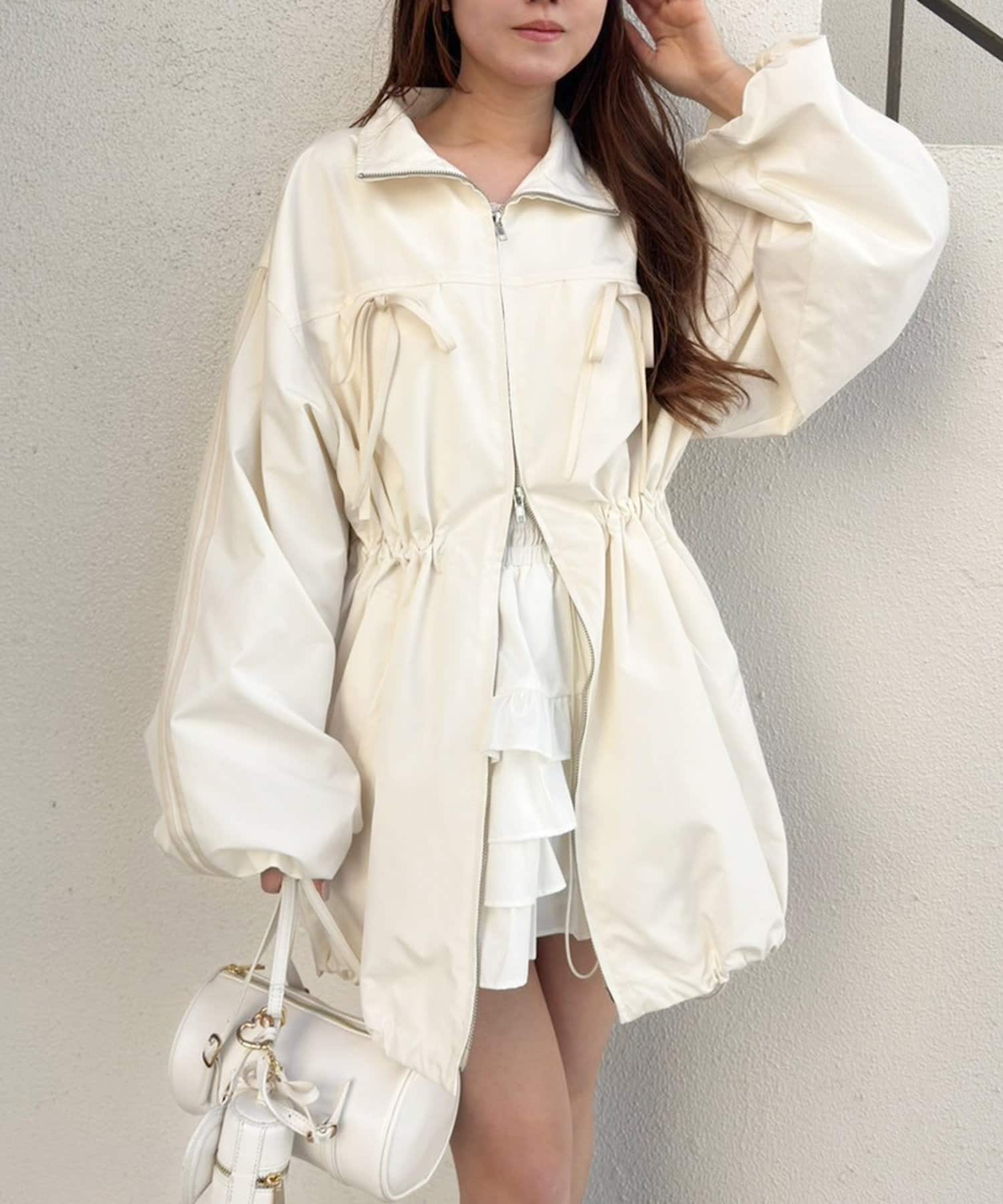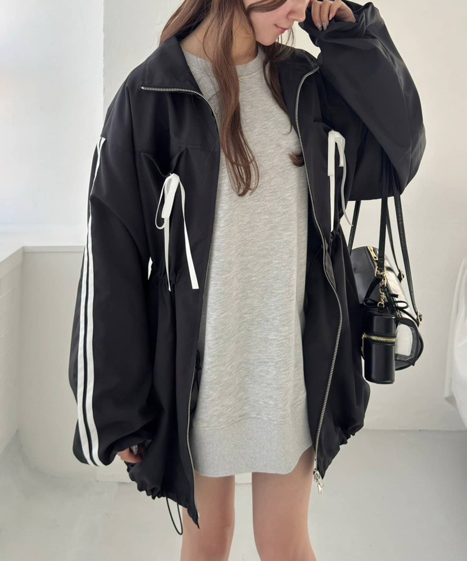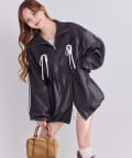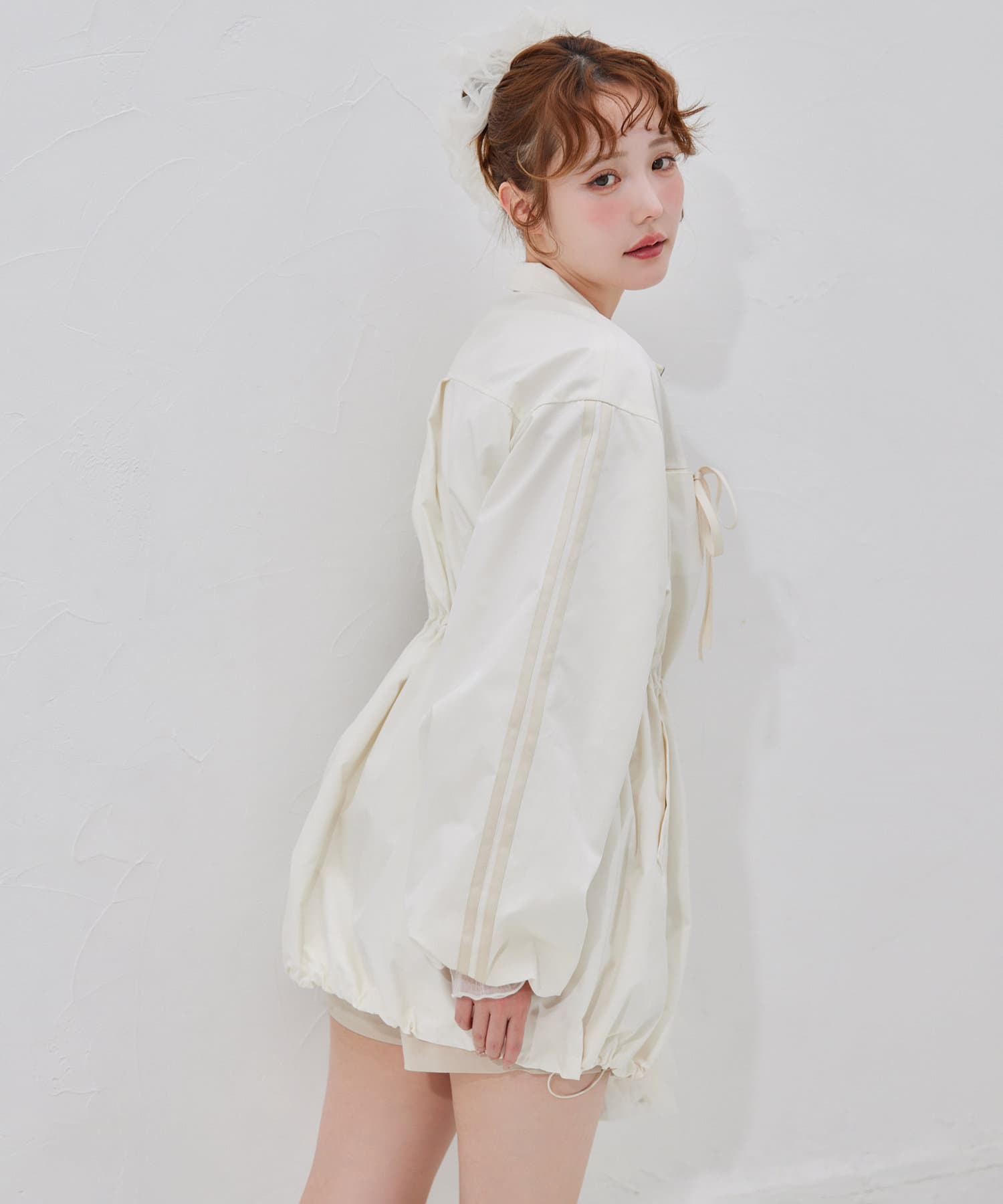 袖のラインと胸元のリボンがポイントのミドルブルゾン