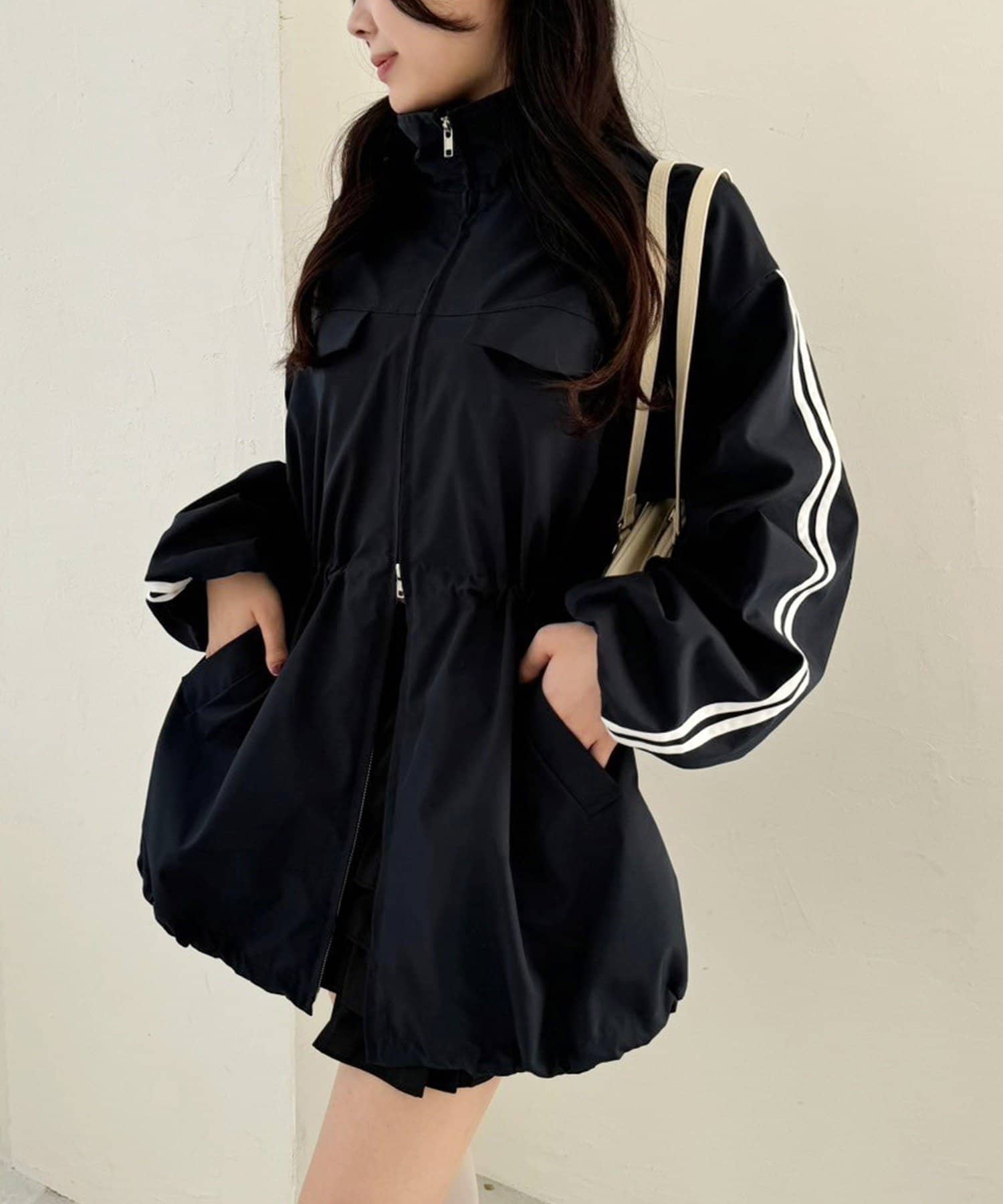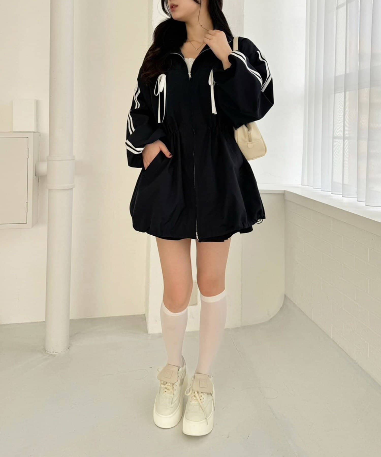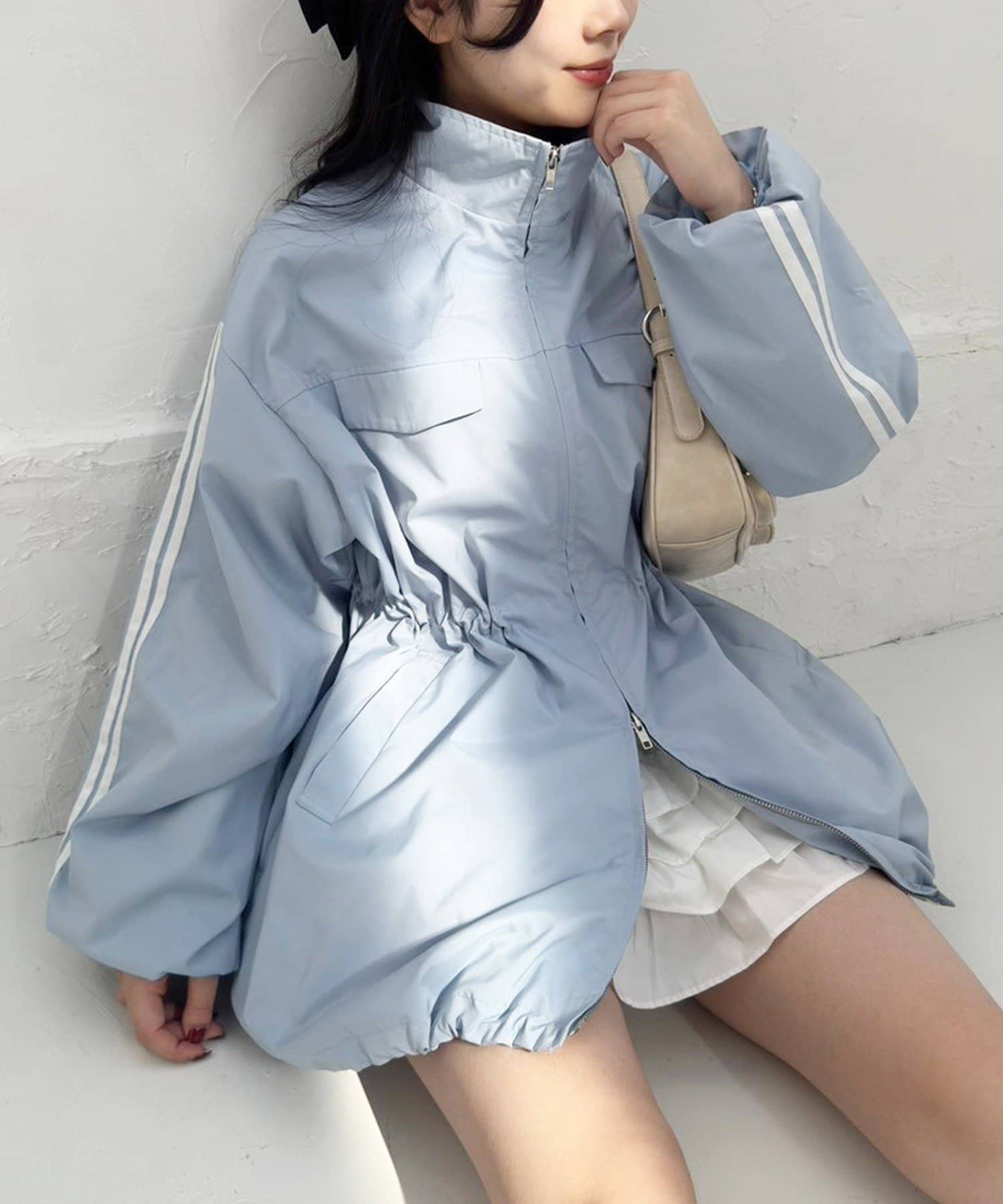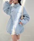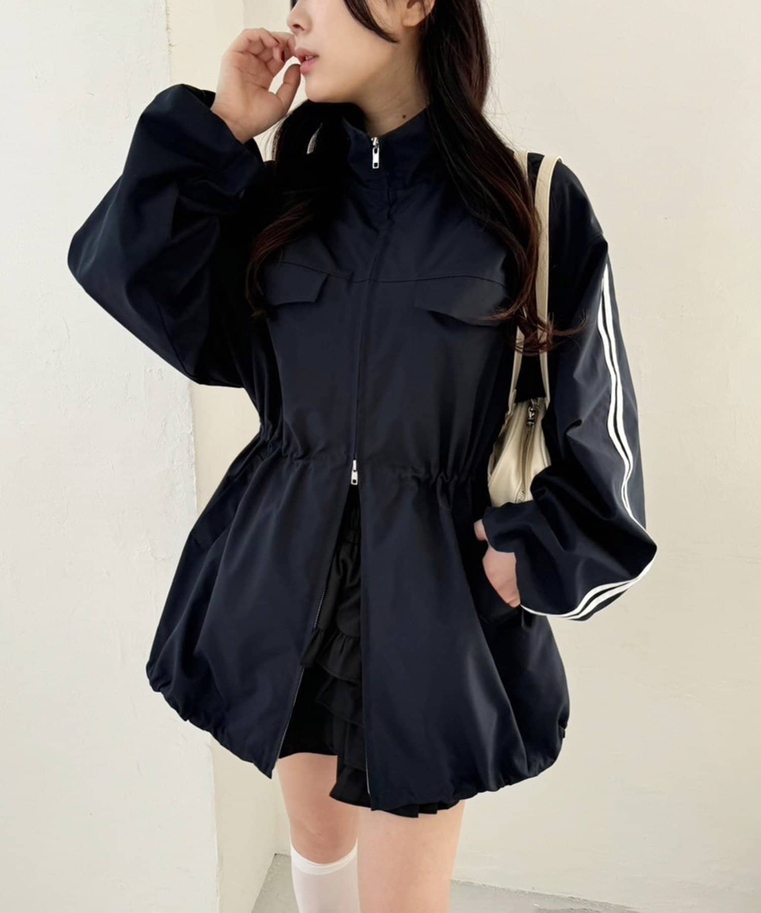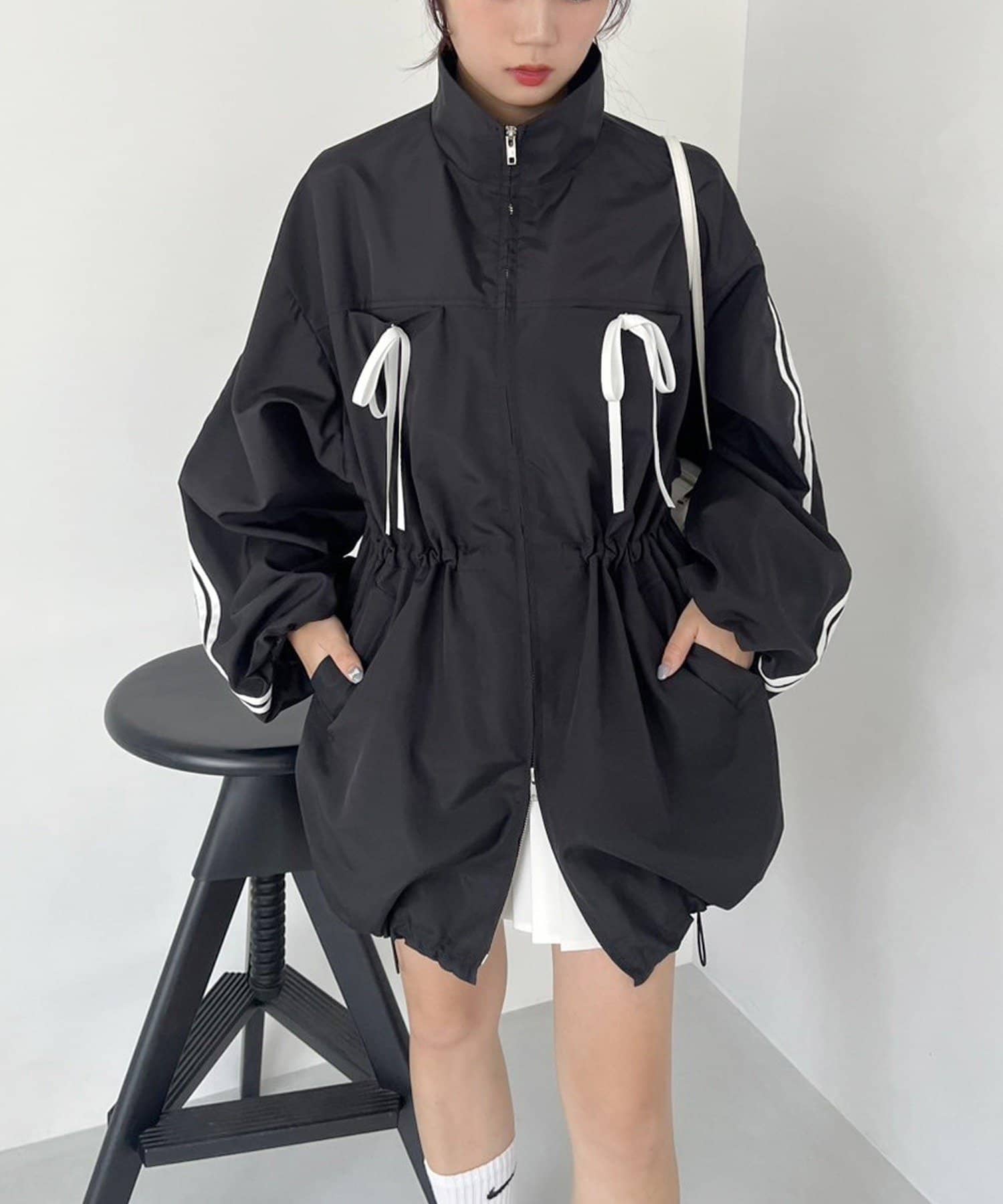 袖のラインと胸元のリボンがポイントのミドルブルゾン