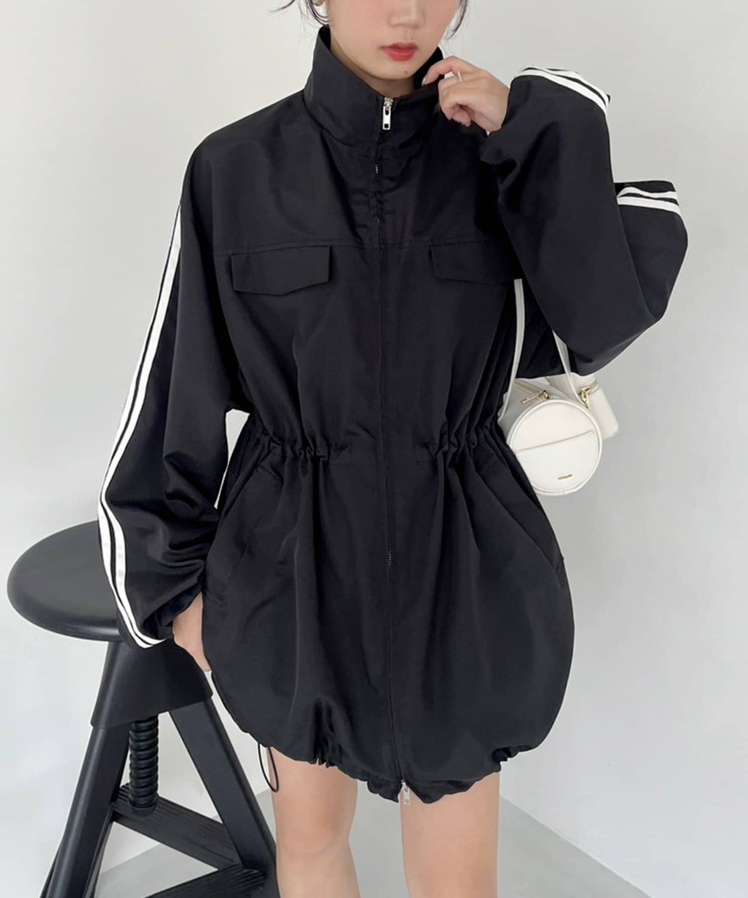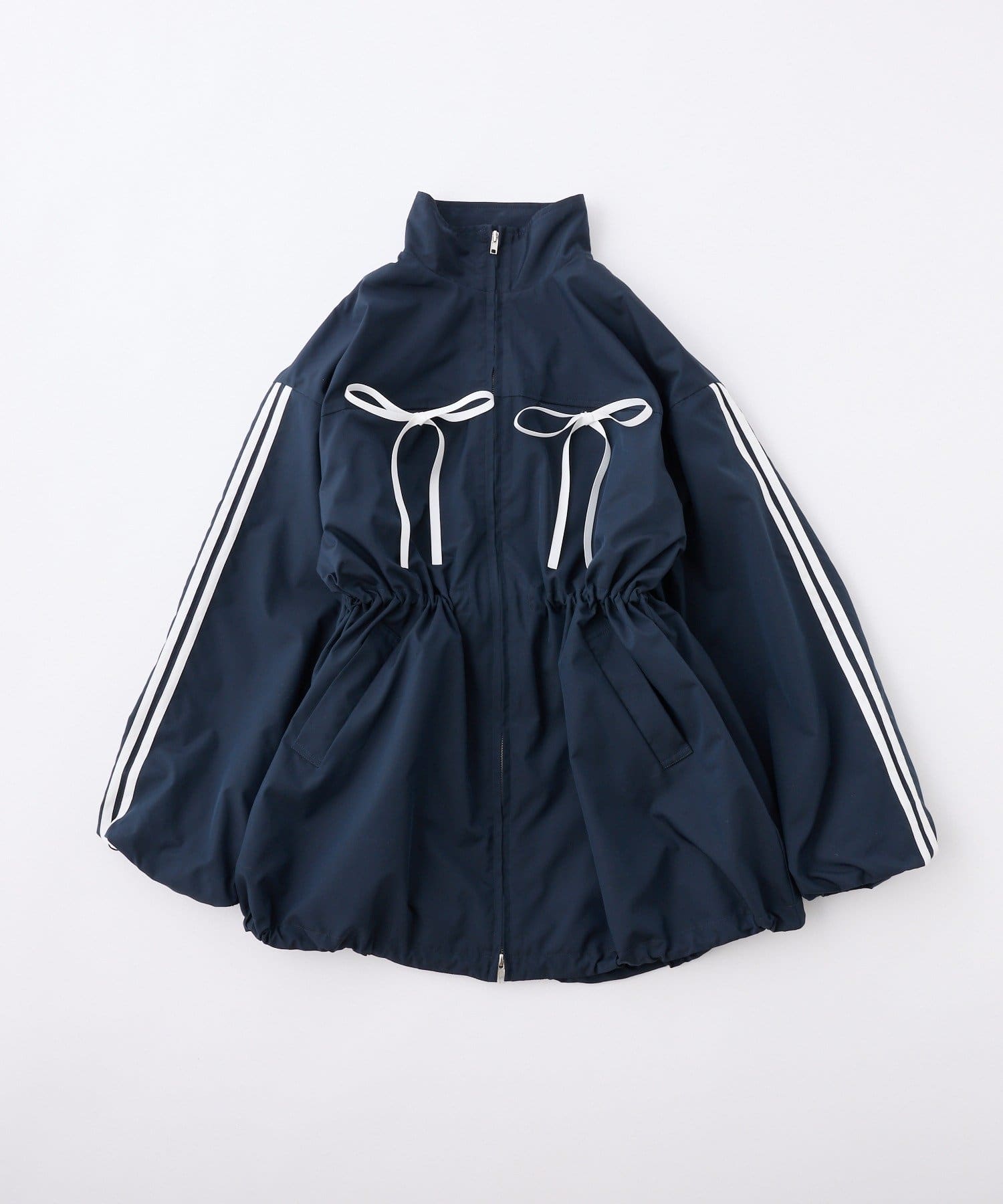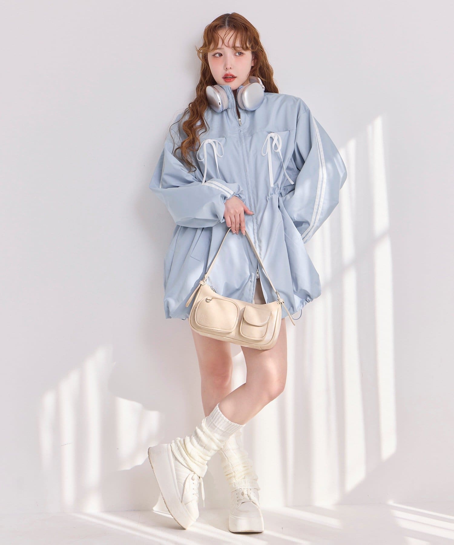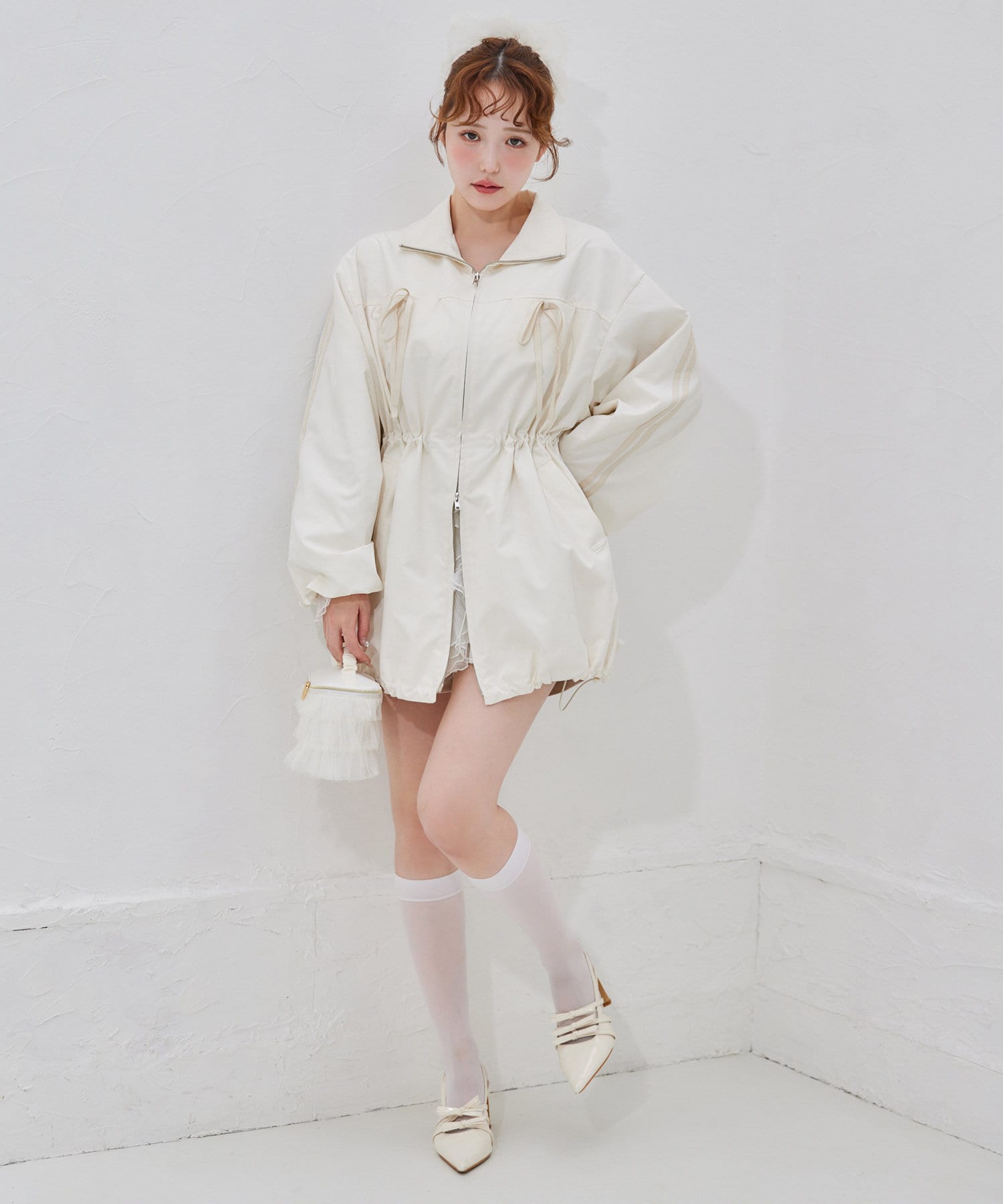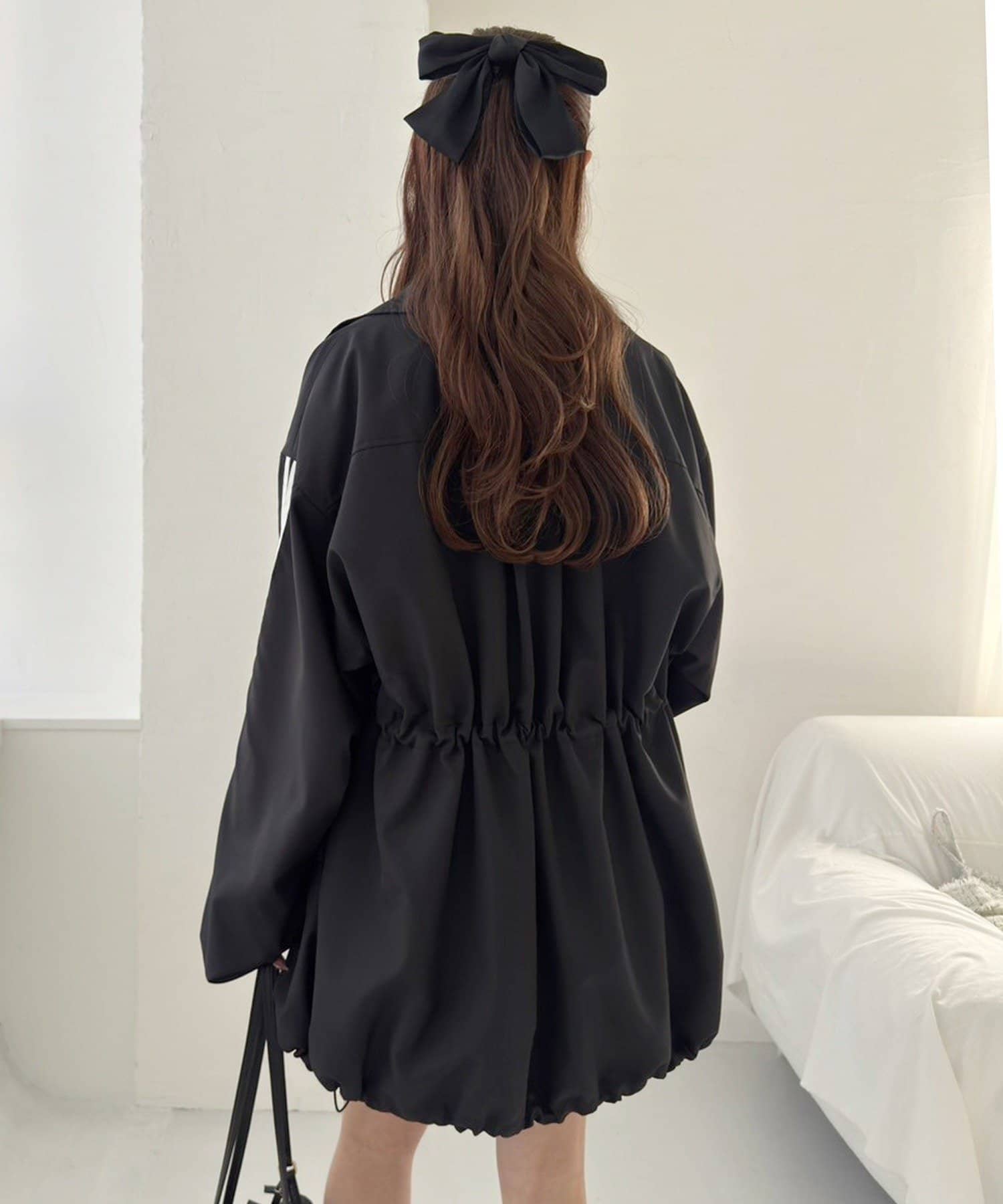 袖のラインと胸元のリボンがポイントのミドルブルゾン
