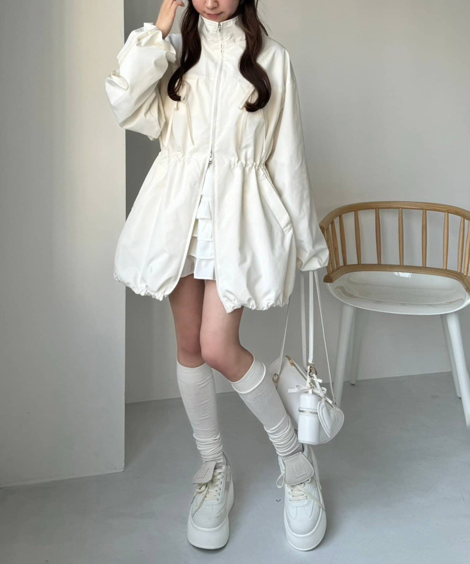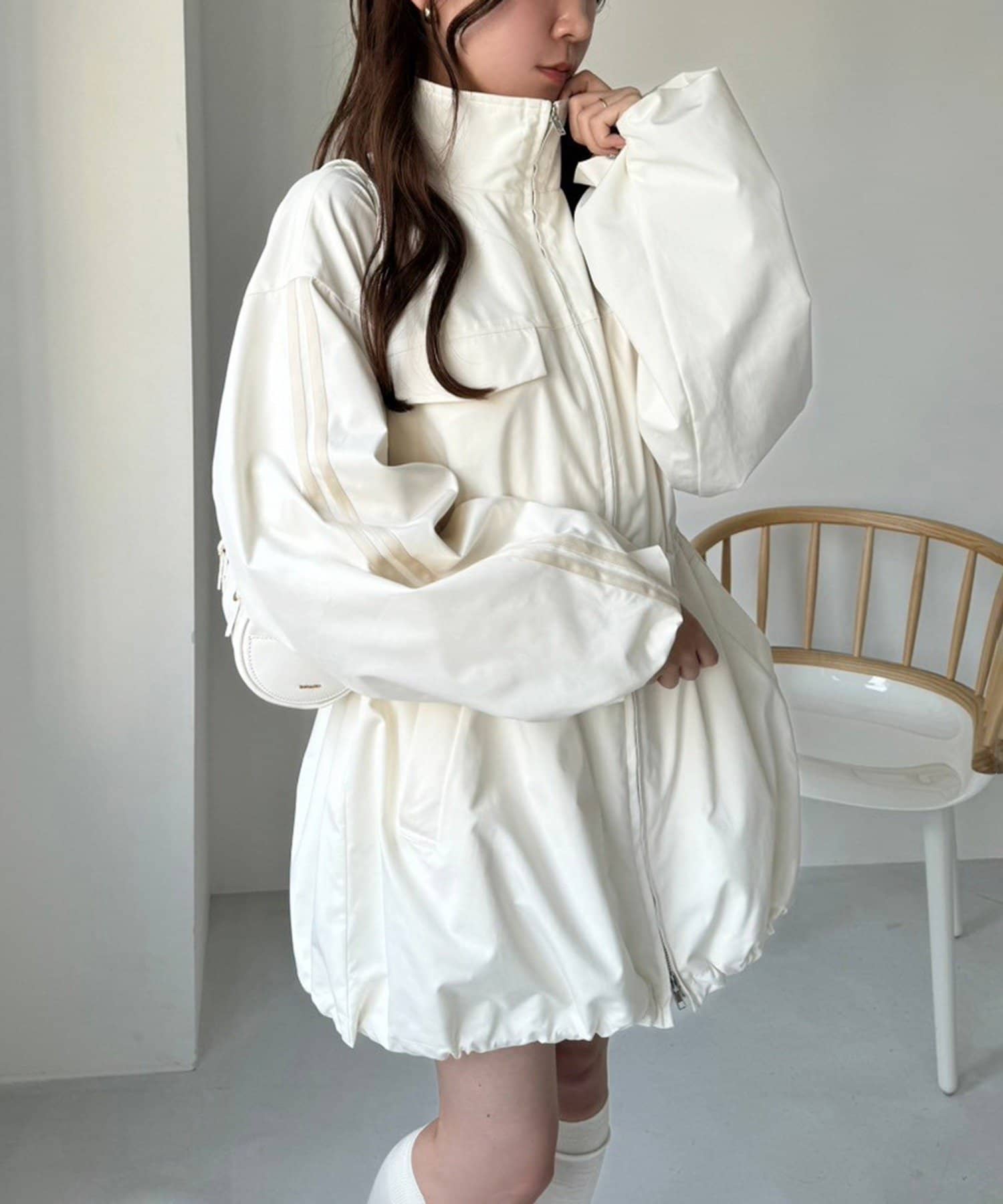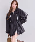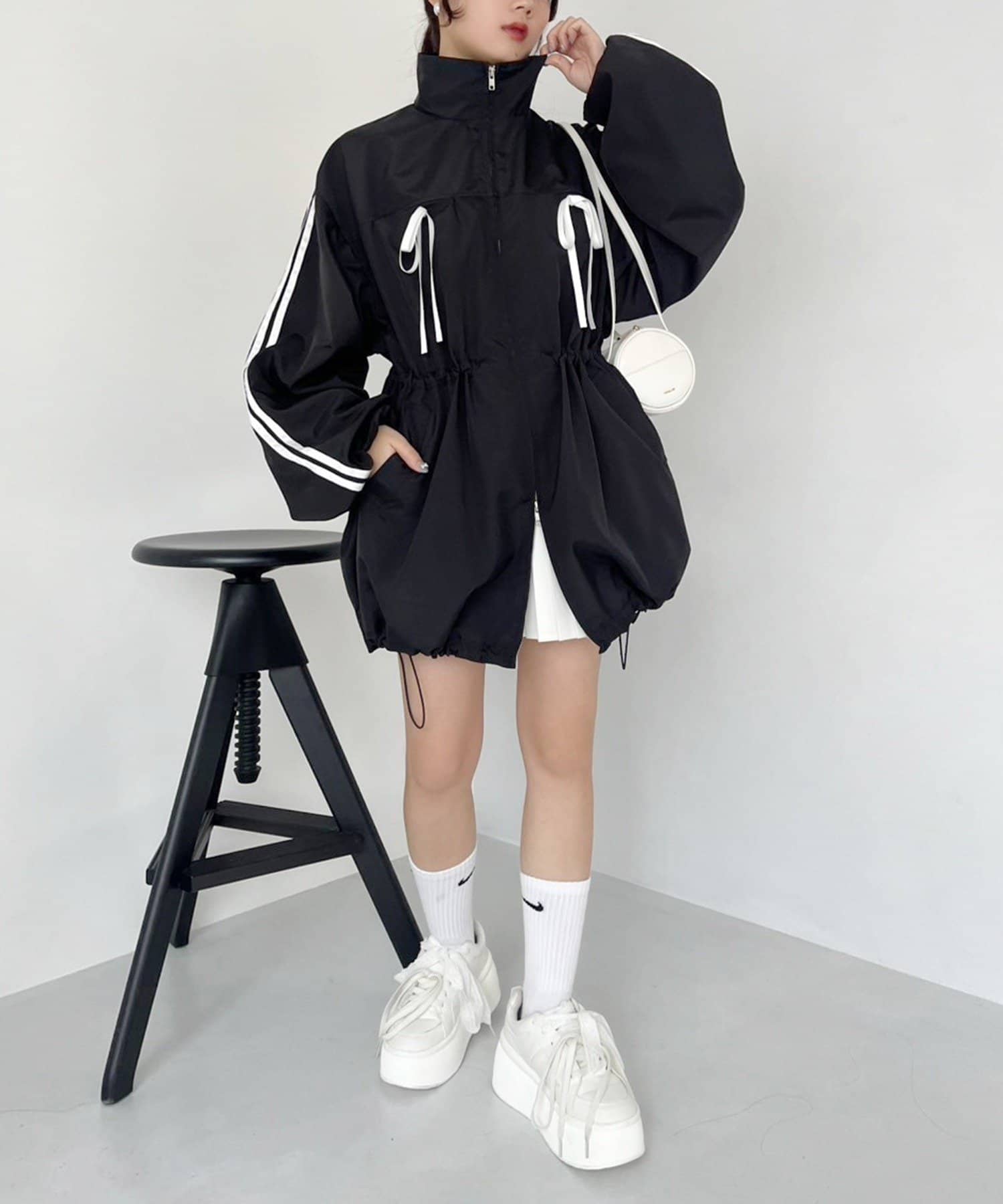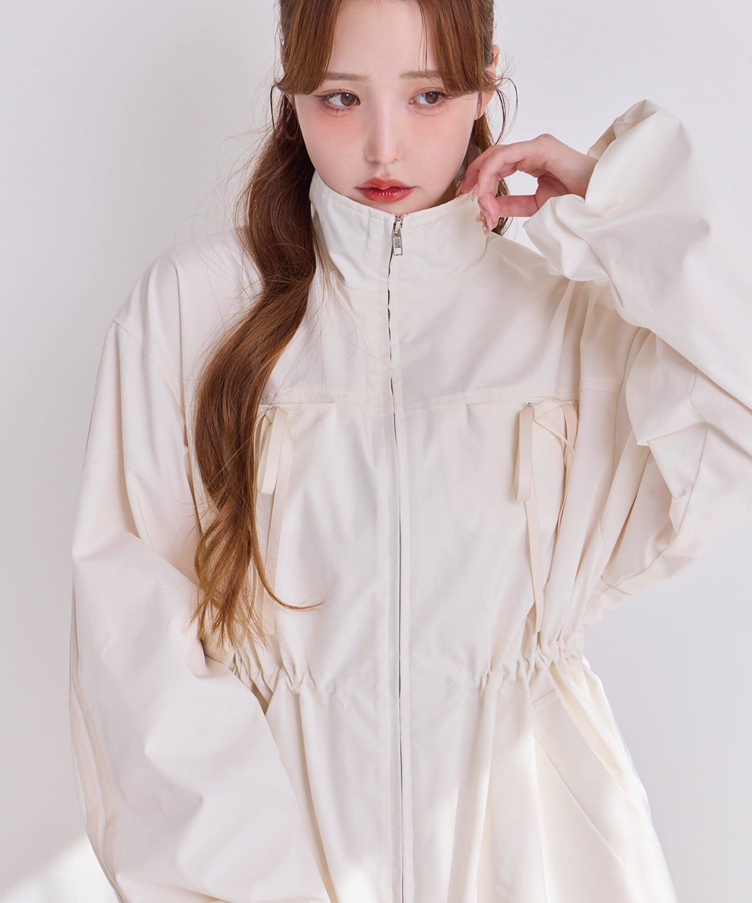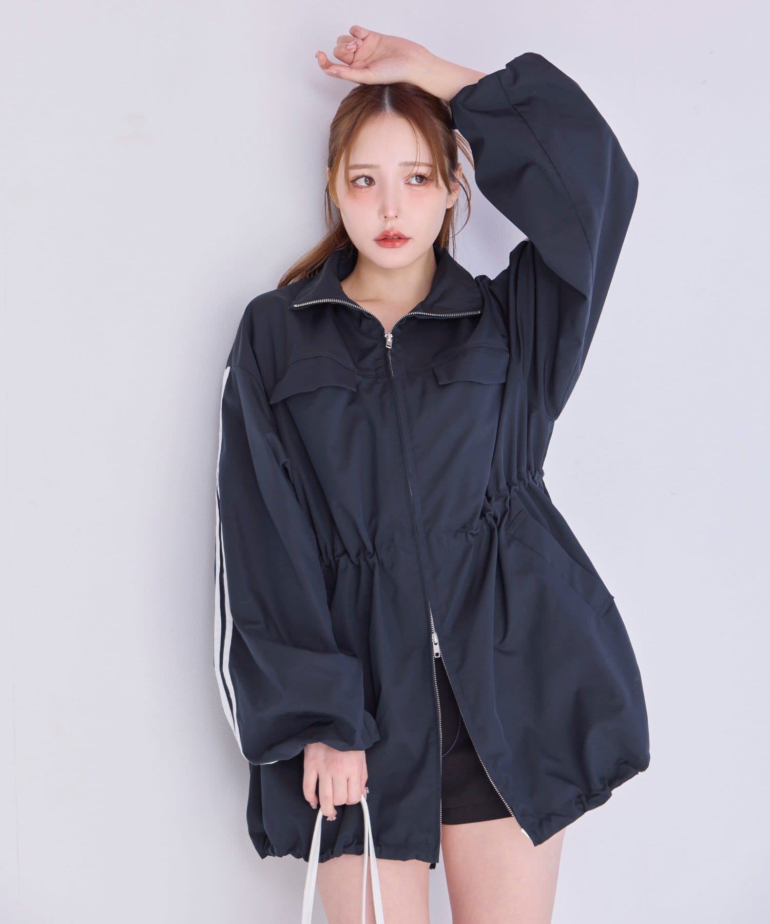 袖のラインと胸元のリボンがポイントのミドルブルゾン