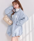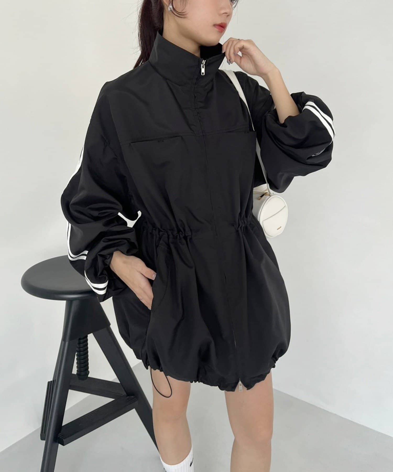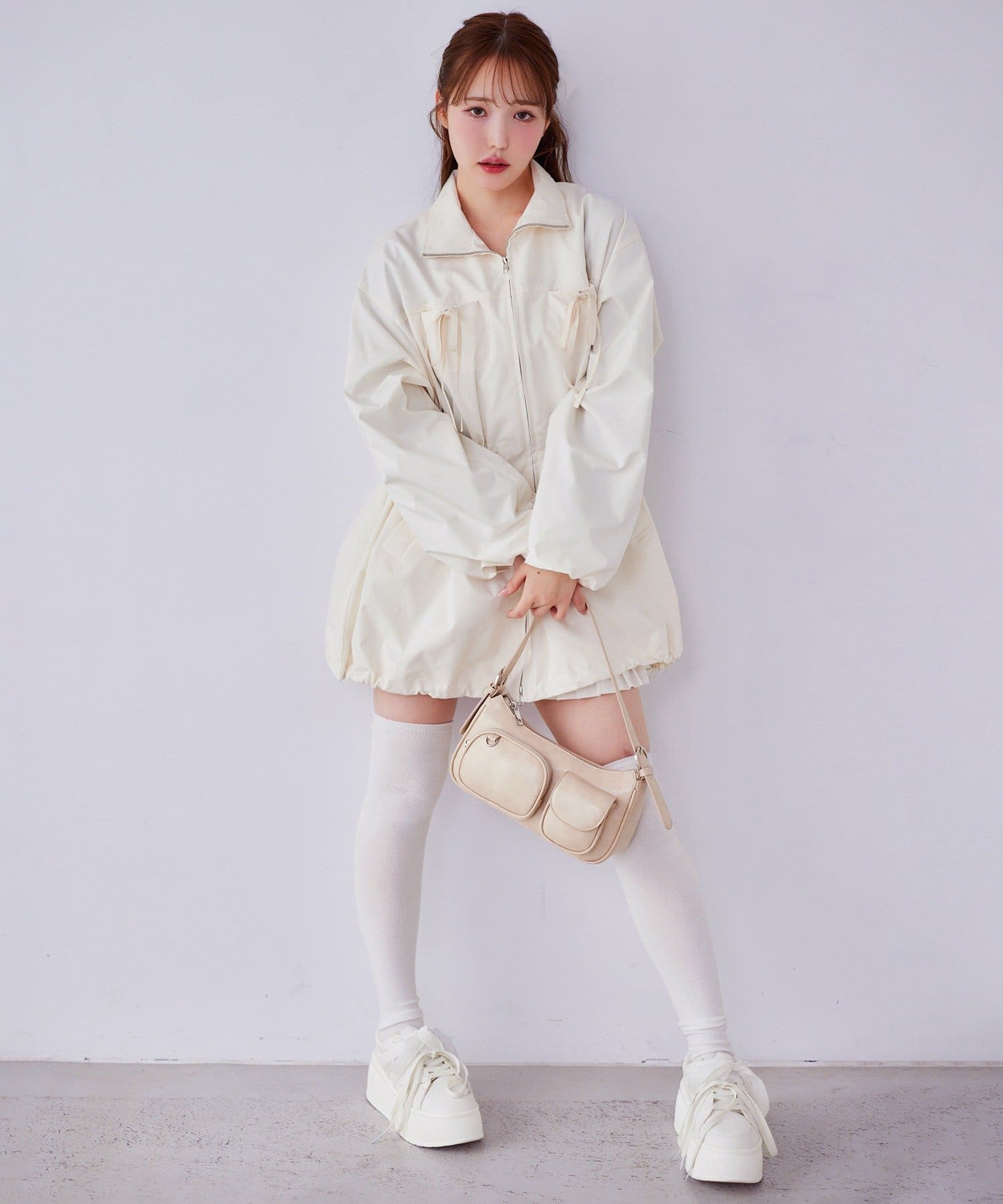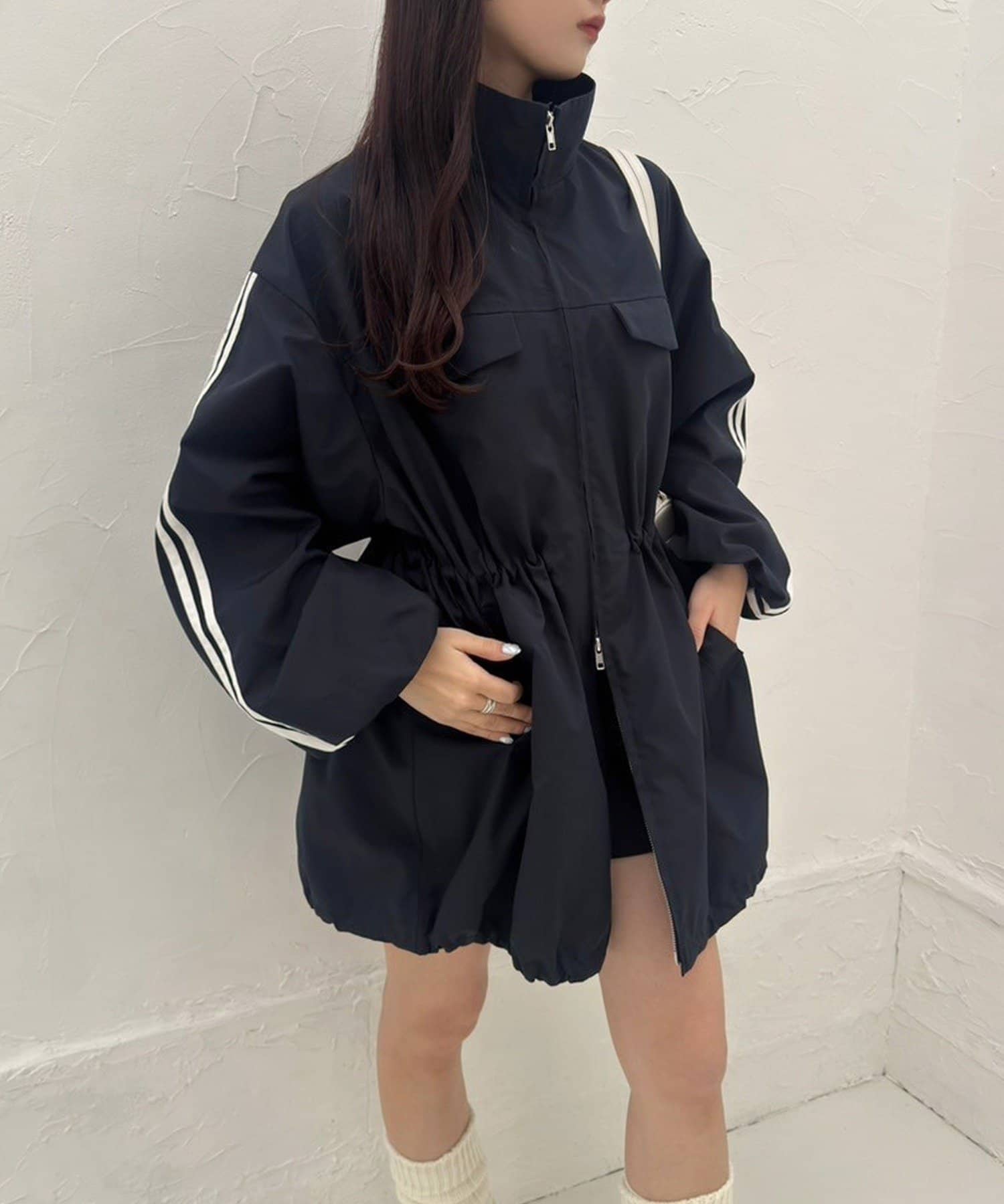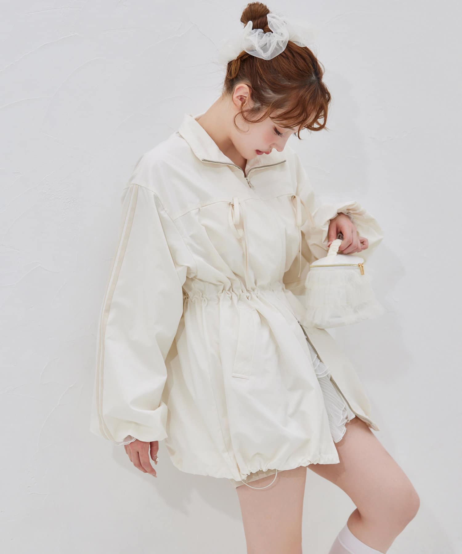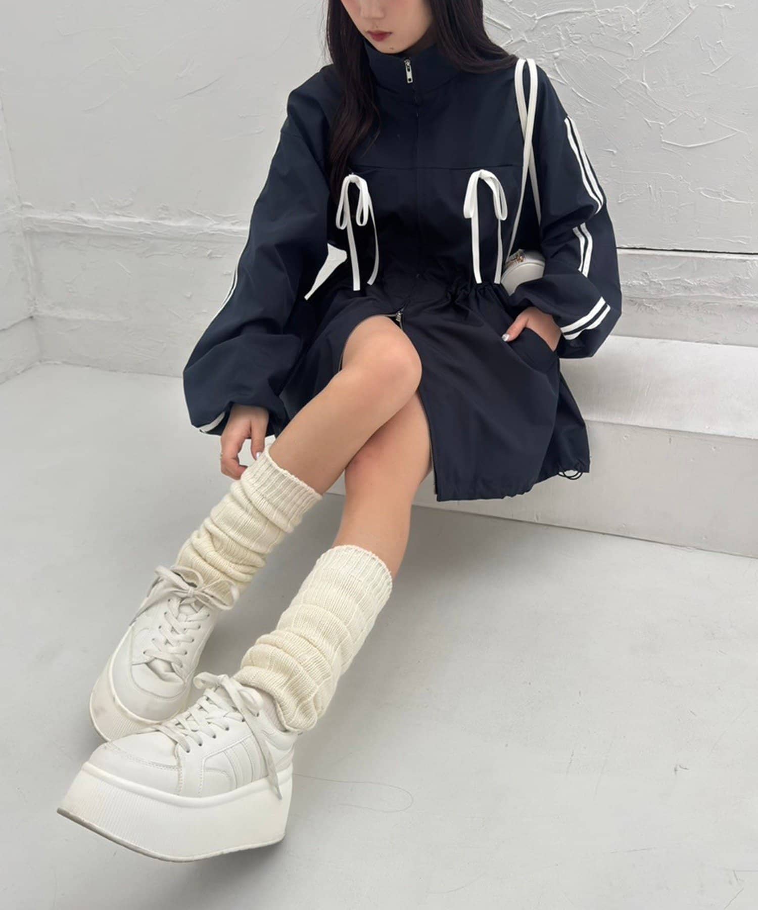 袖のラインと胸元のリボンがポイントのミドルブルゾン