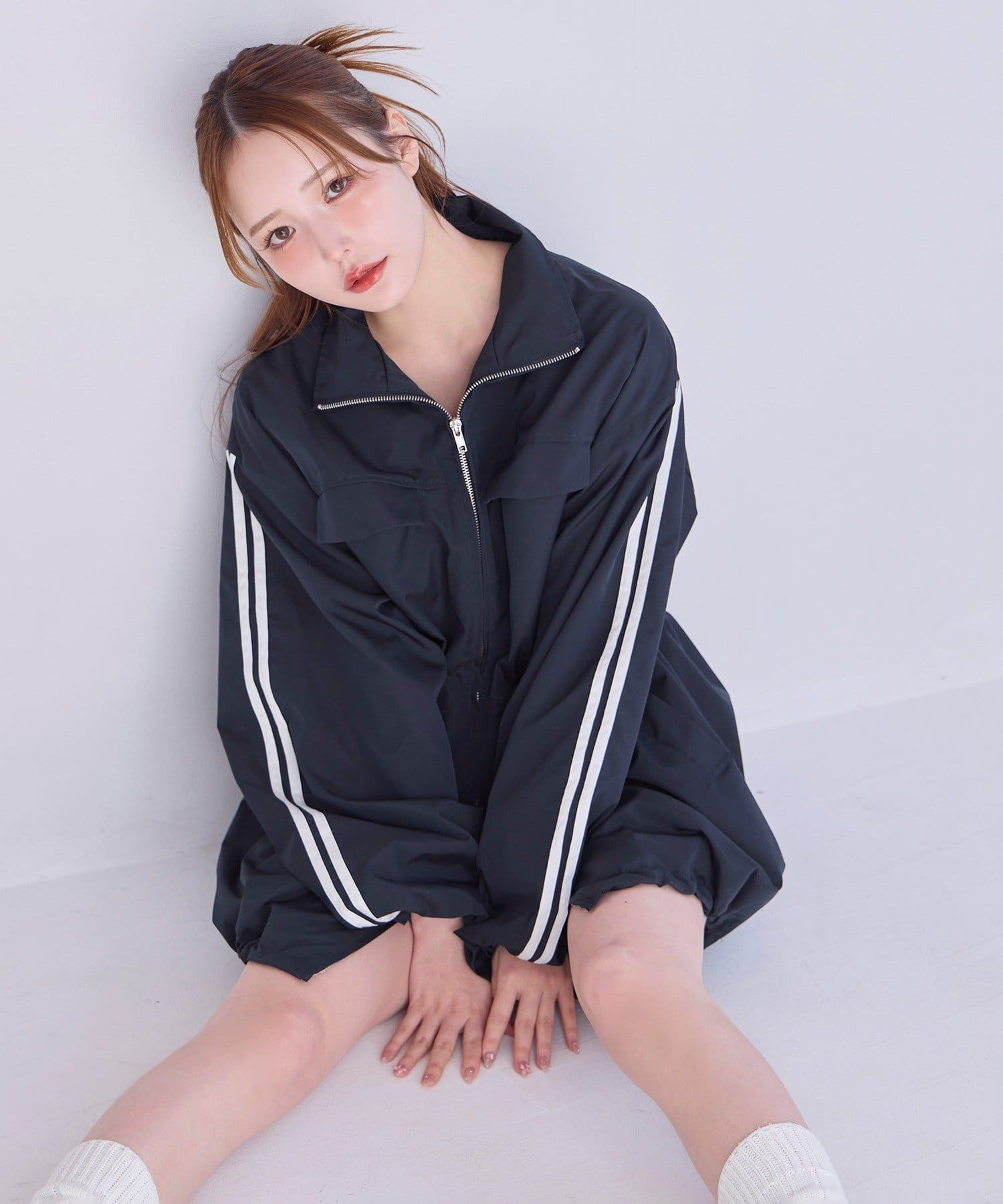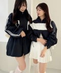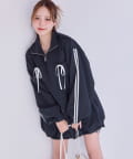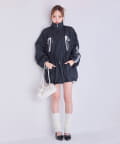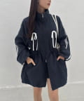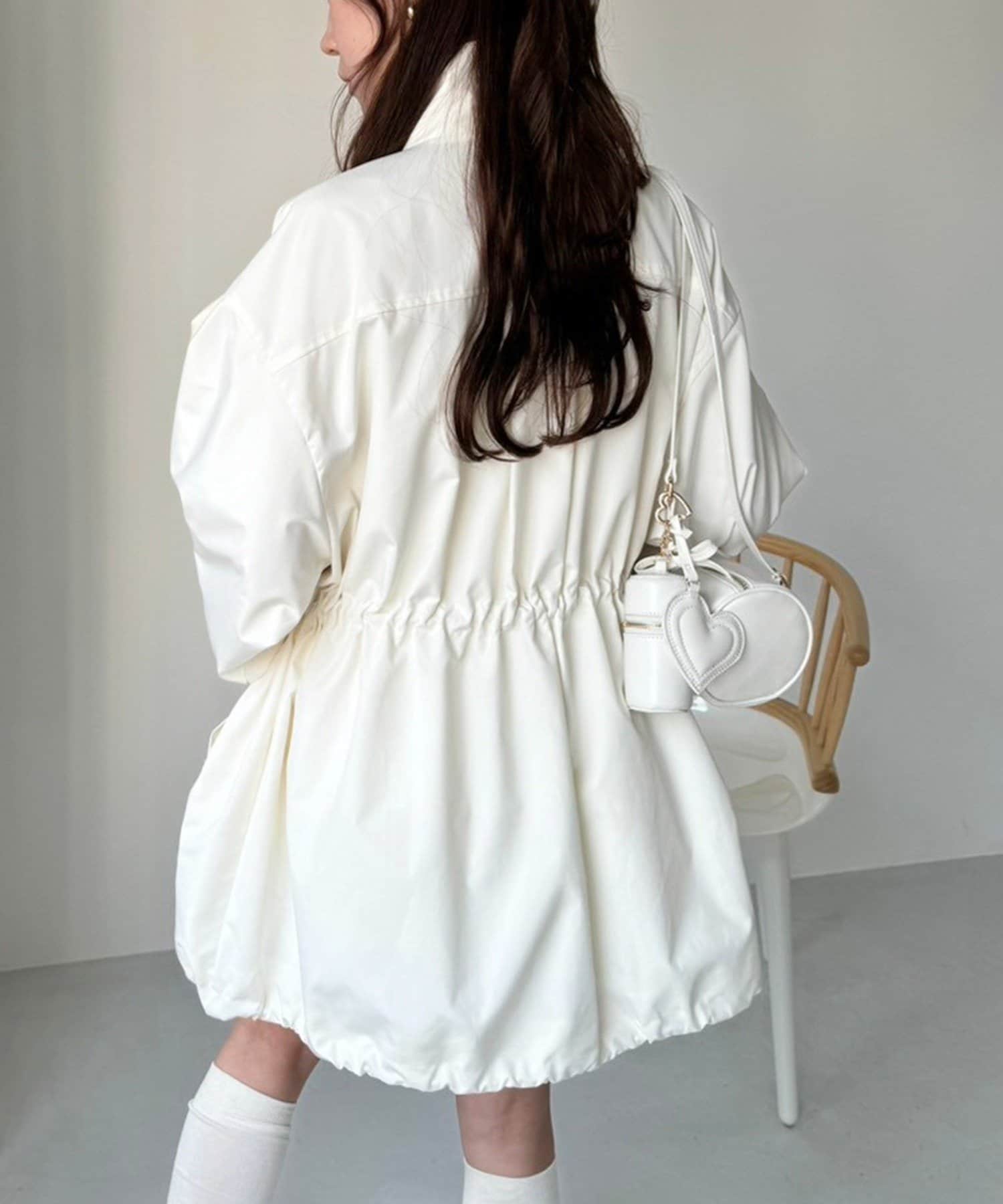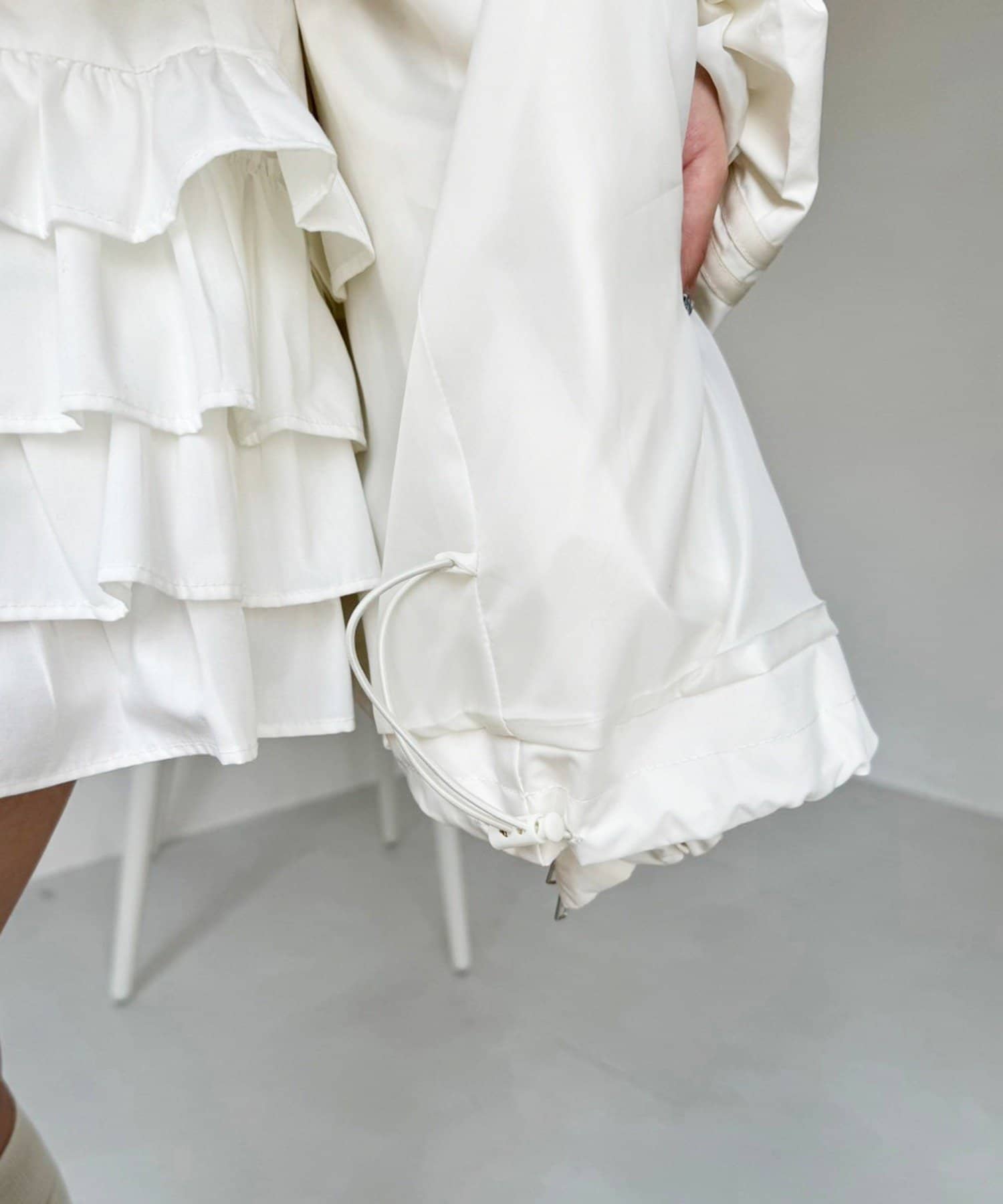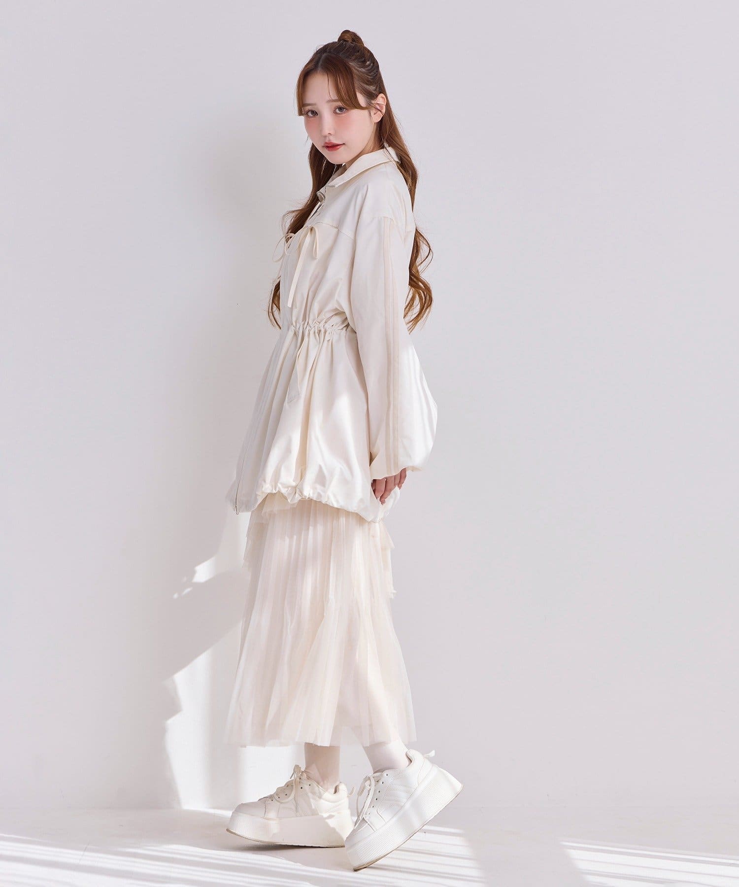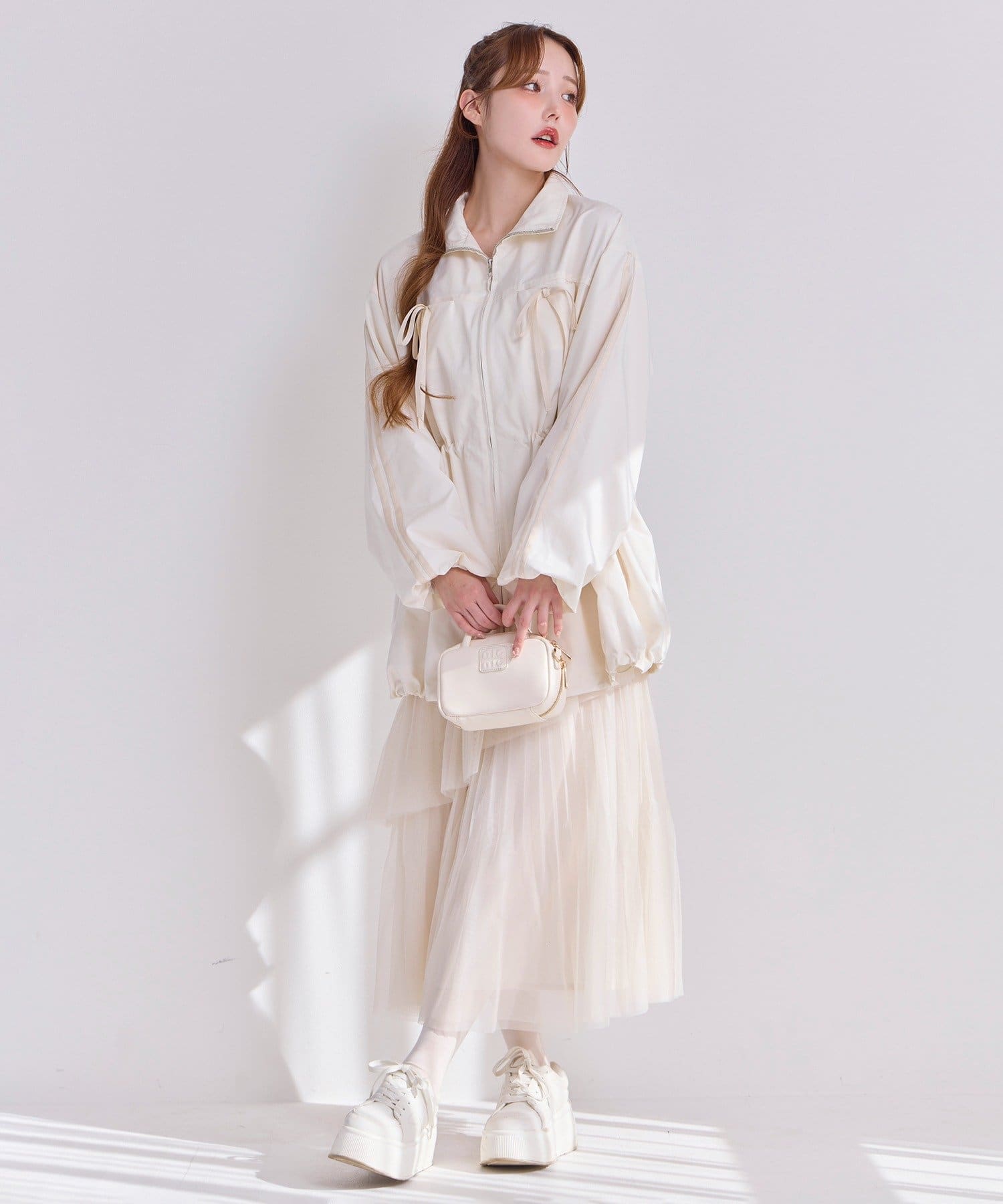 袖のラインと胸元のリボンがポイントのミドルブルゾン