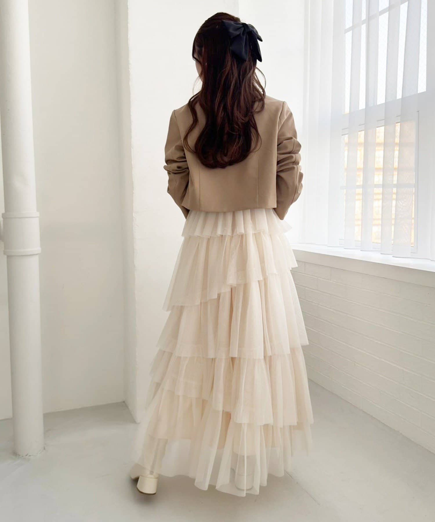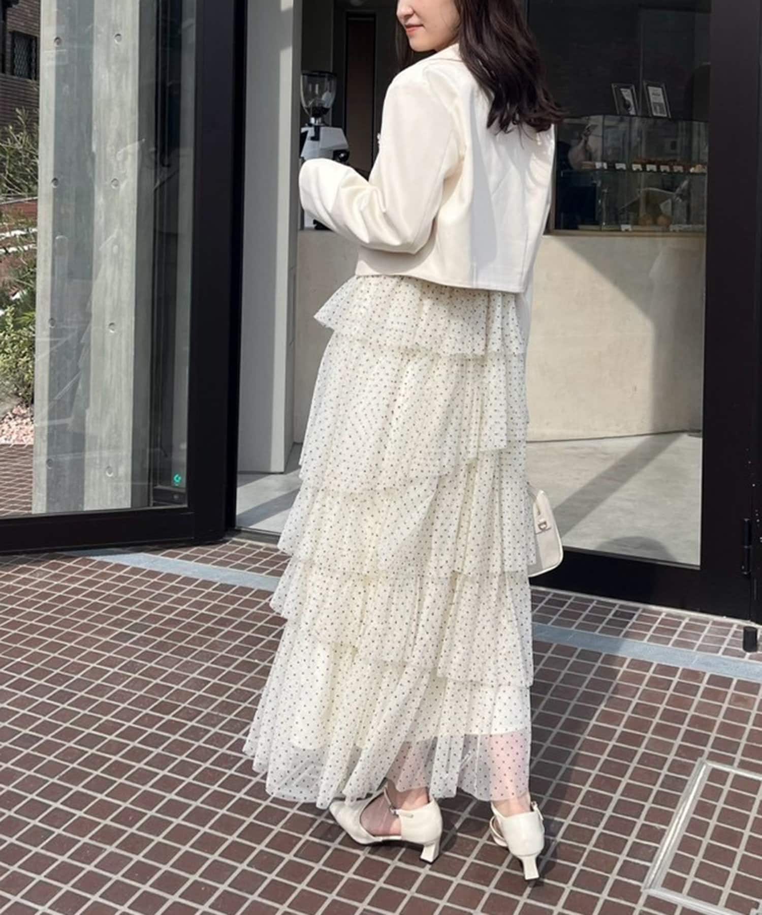 キレイめなコーデなら、フレアスカートやタイトスカートに合わせるのがオススメ。