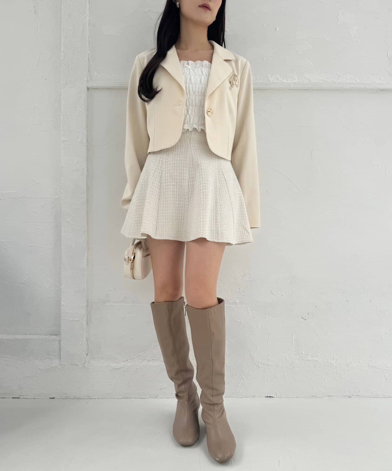 丈感が短いデザインは、スカートにもパンツにも合わせやすくコーデのしやすさも◎