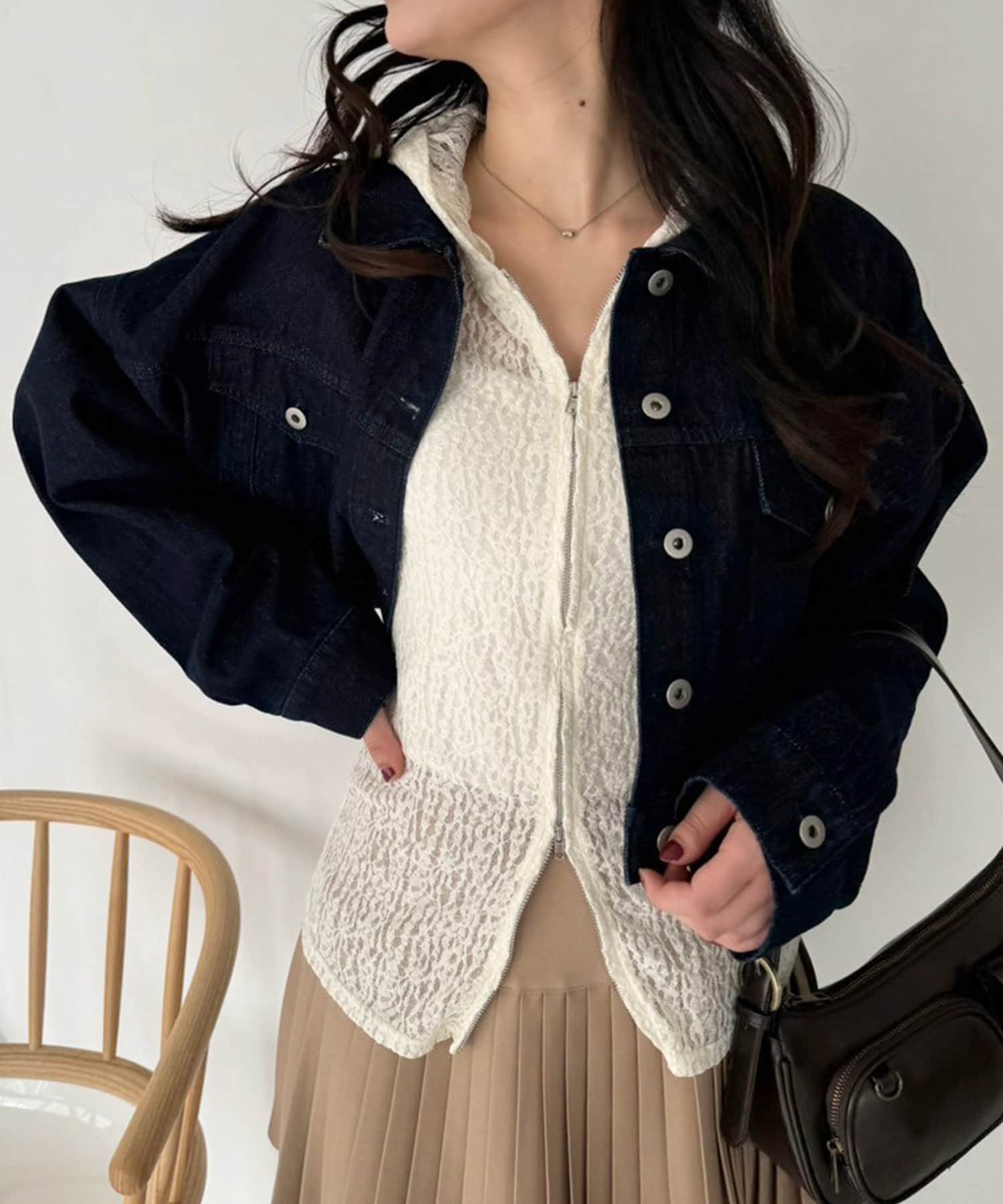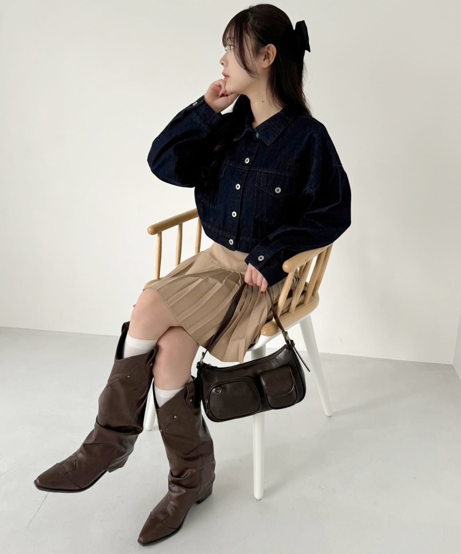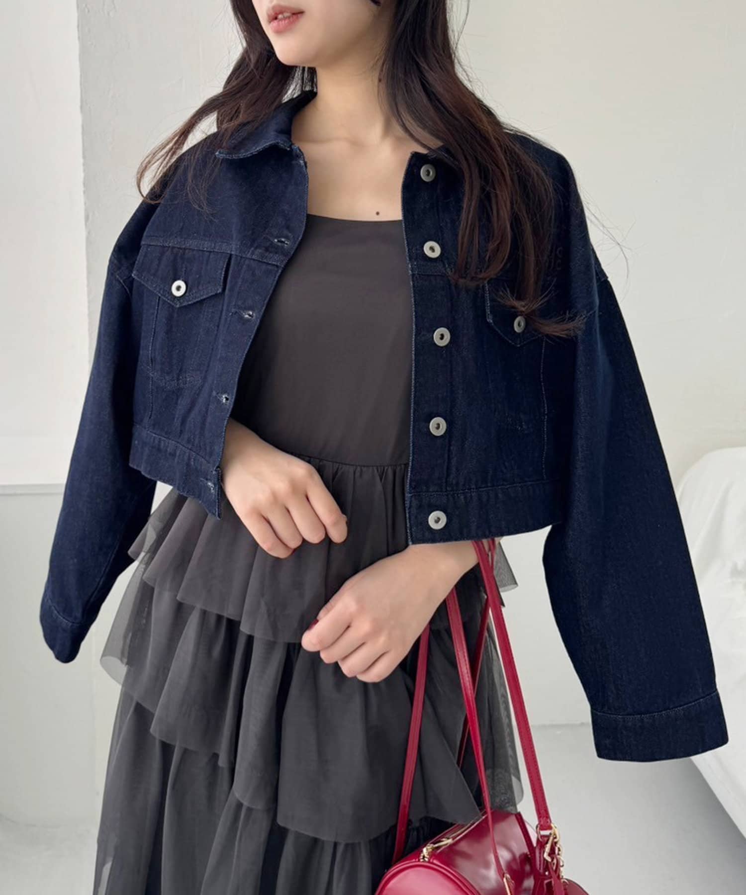 丈感が短いデザインは、スカートにもパンツにも合わせやすくコーデのしやすさも◎