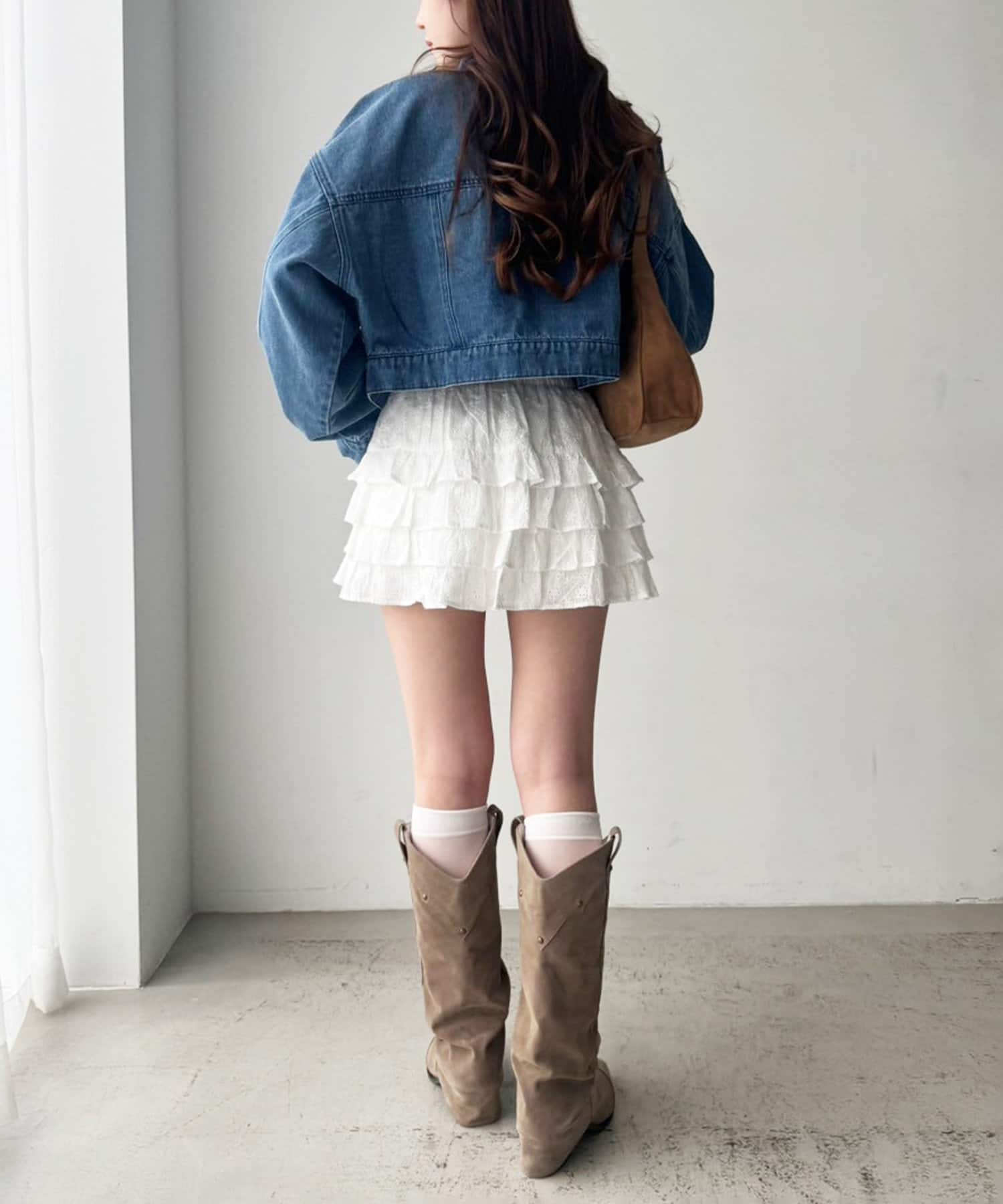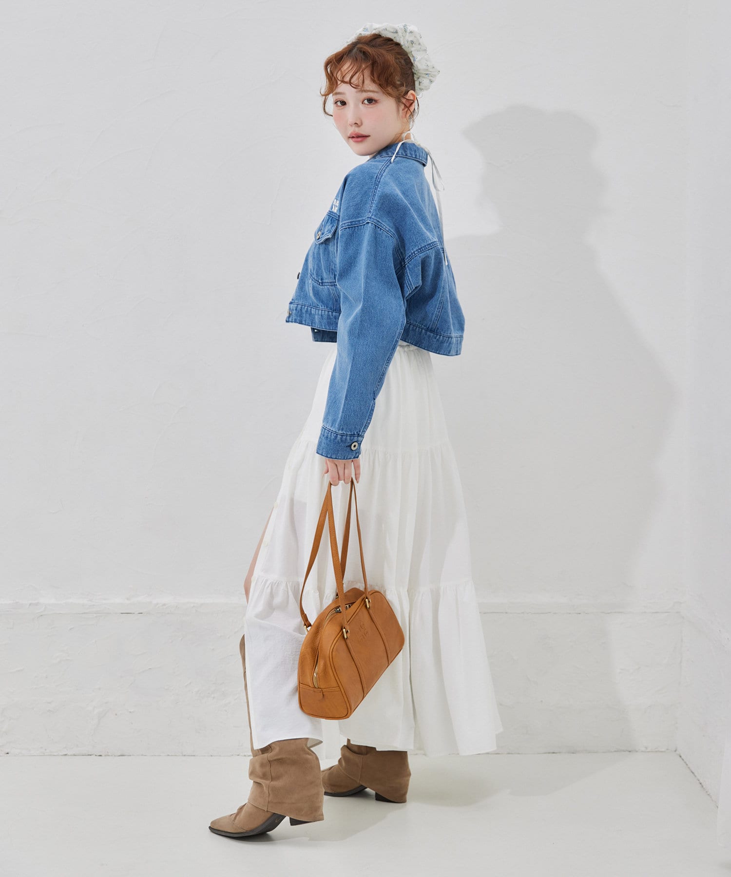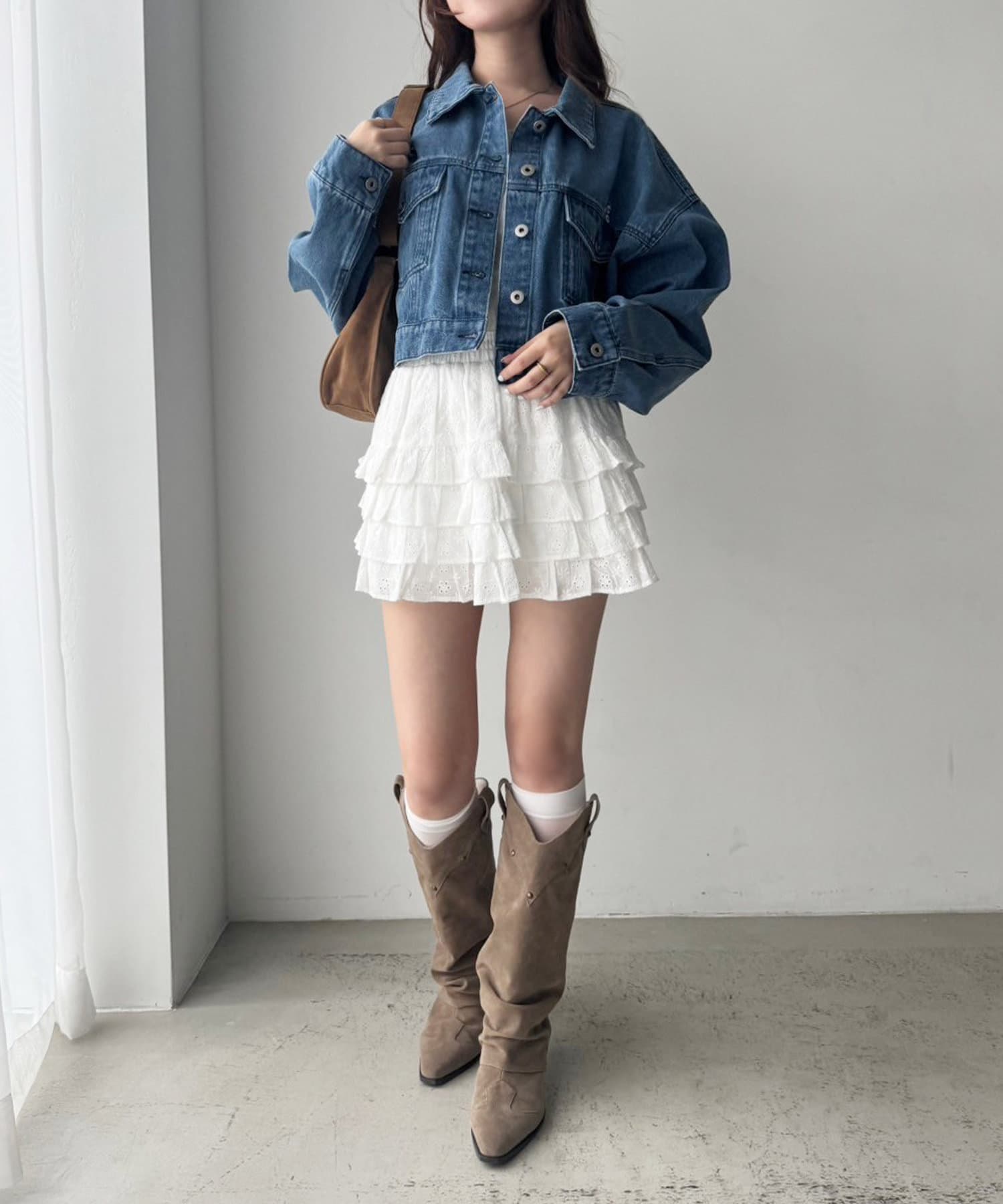 丈感が短いデザインは、スカートにもパンツにも合わせやすくコーデのしやすさも◎