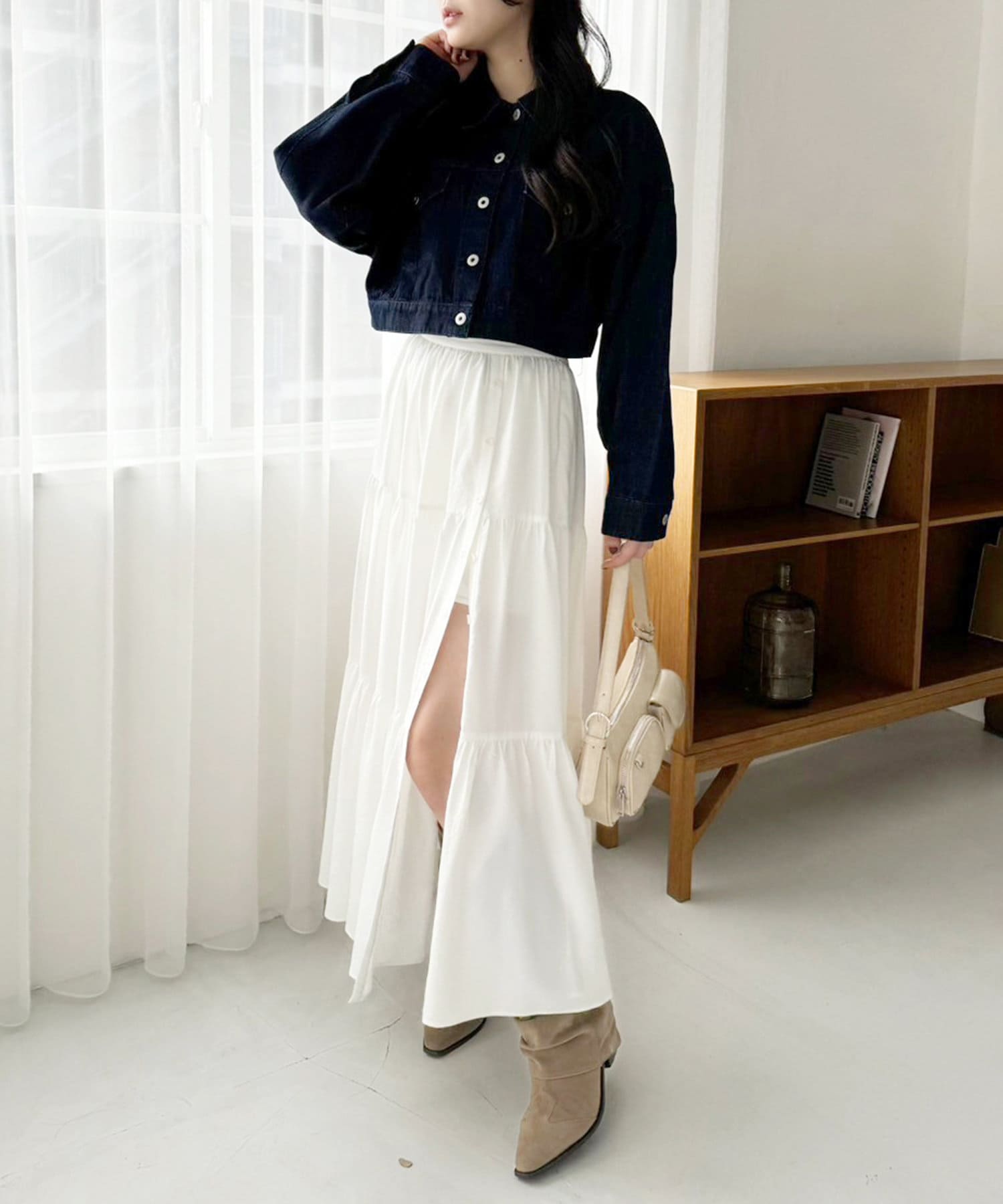 同じカラーのボトムスと合わせてセットアップ風に着るのも旬な着こなしになります。