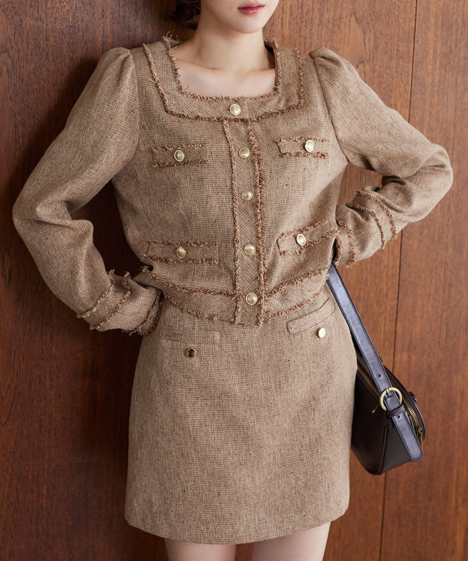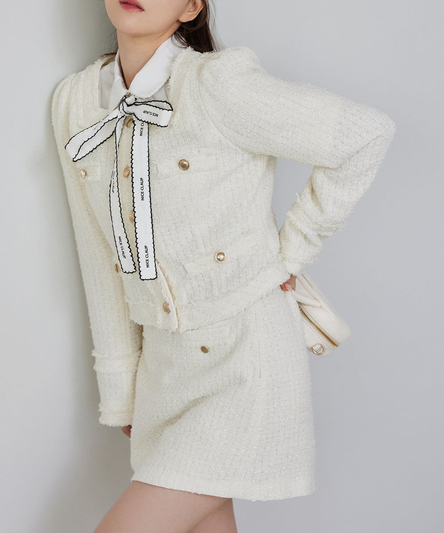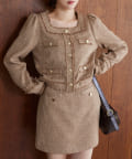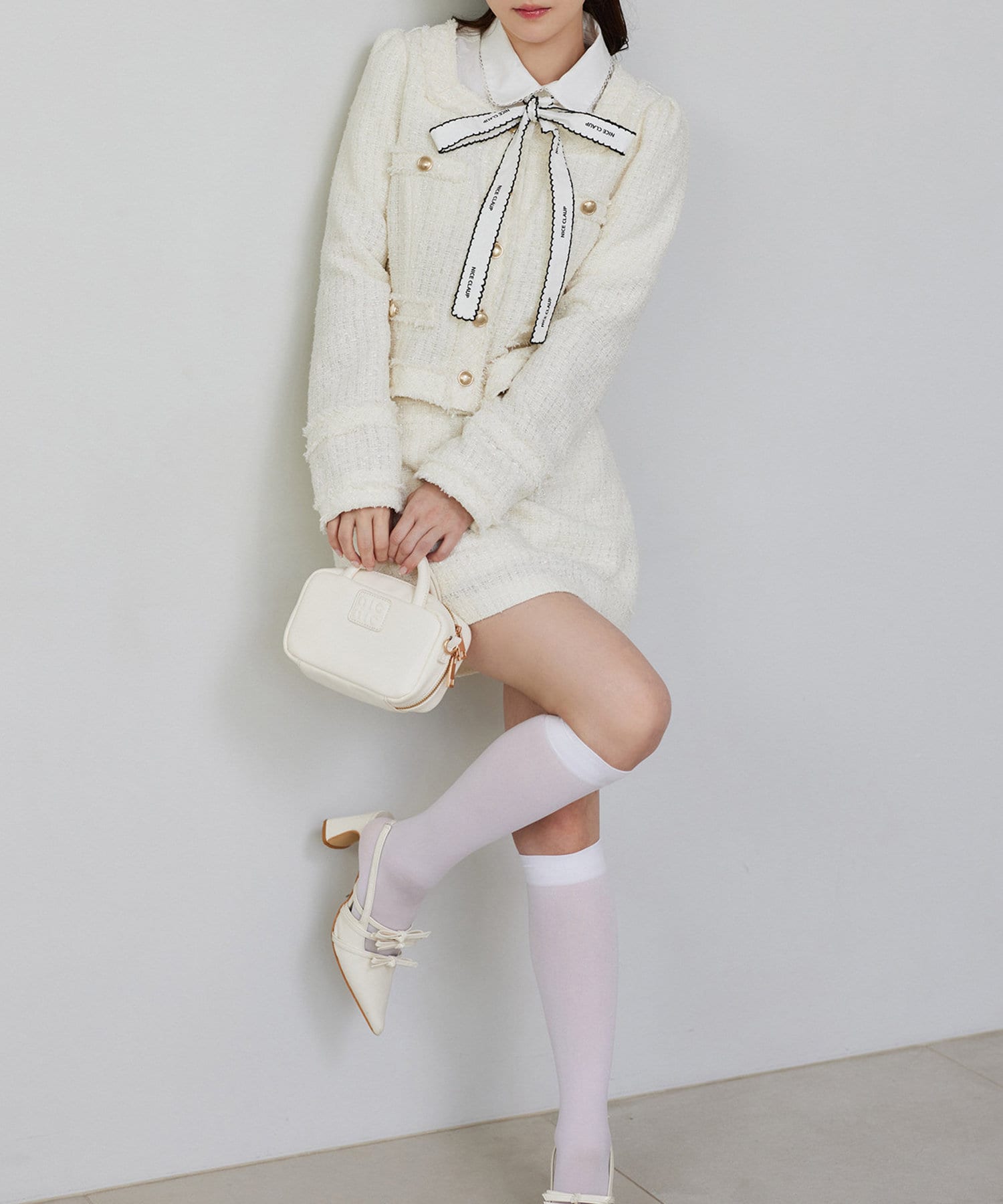 ハイネックトップスなどと合わせるとフレンチガーリーなスタイリングになります。
