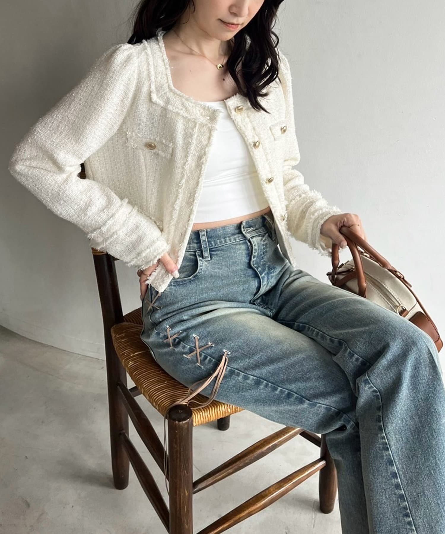 キャミやビスチェの上にさっと羽織って、デニムパンツと合わせるのも◎