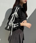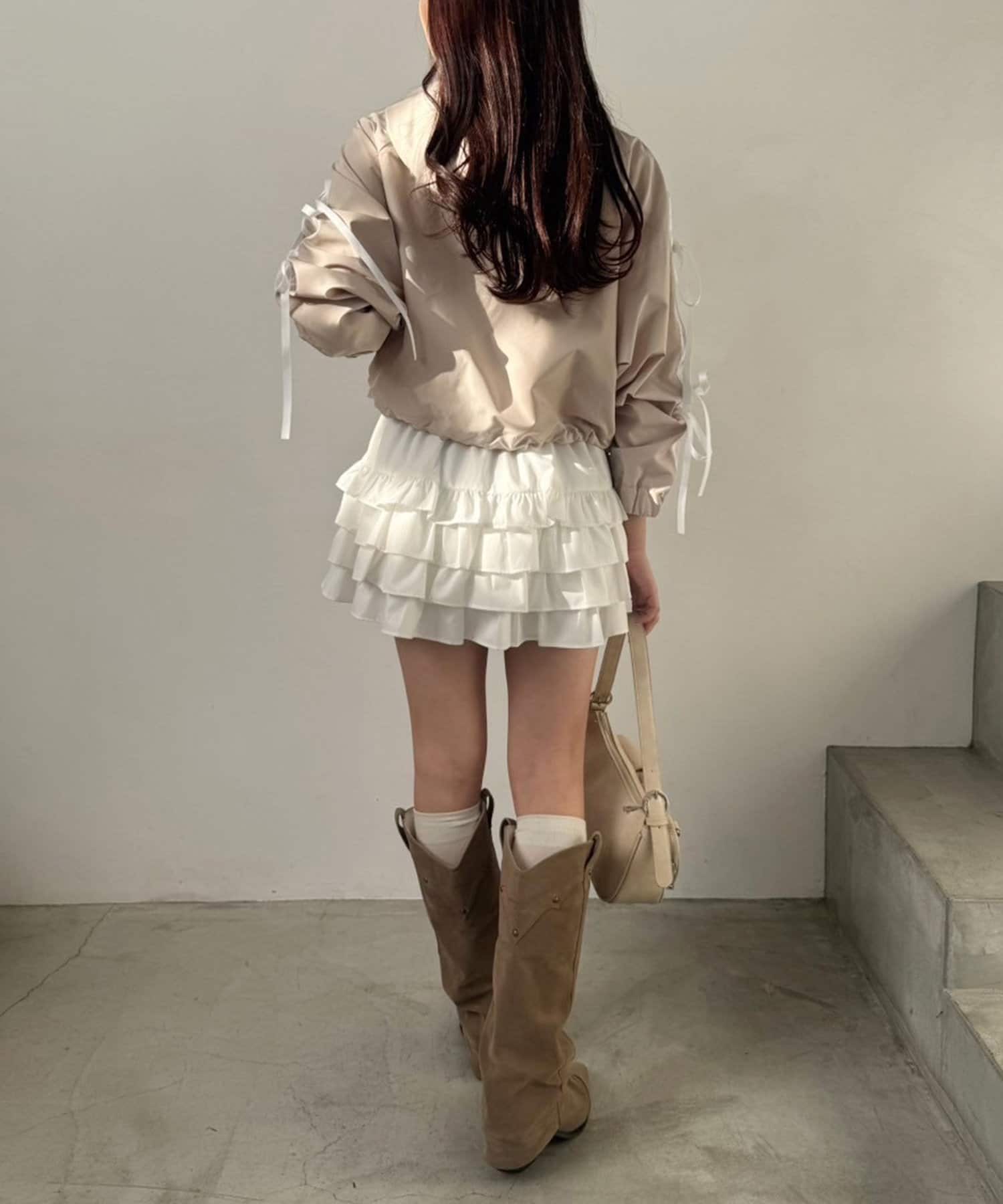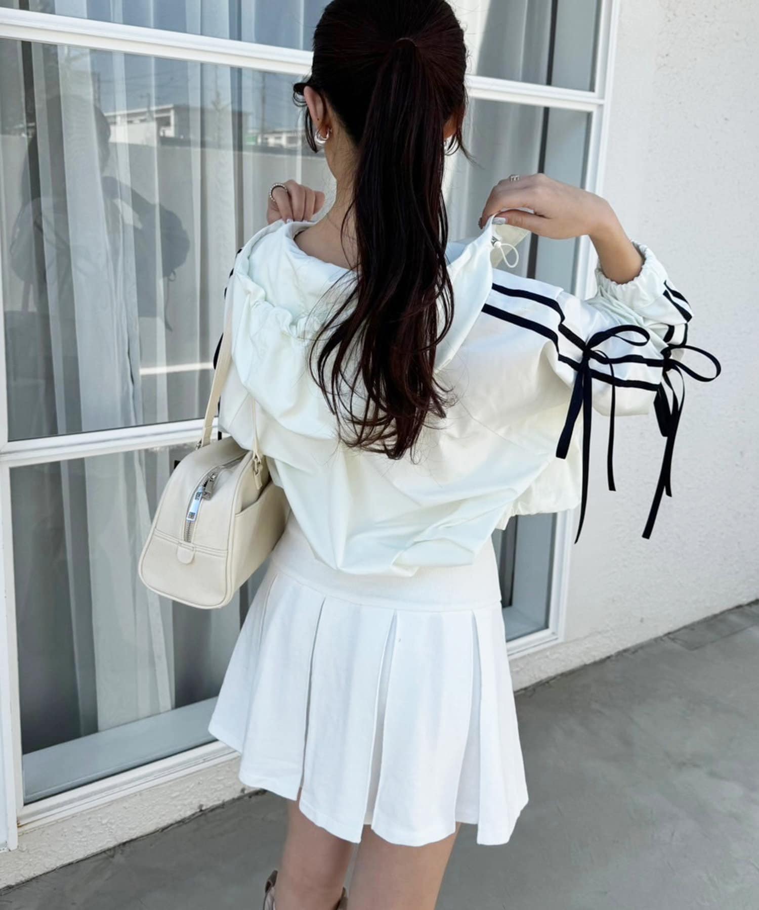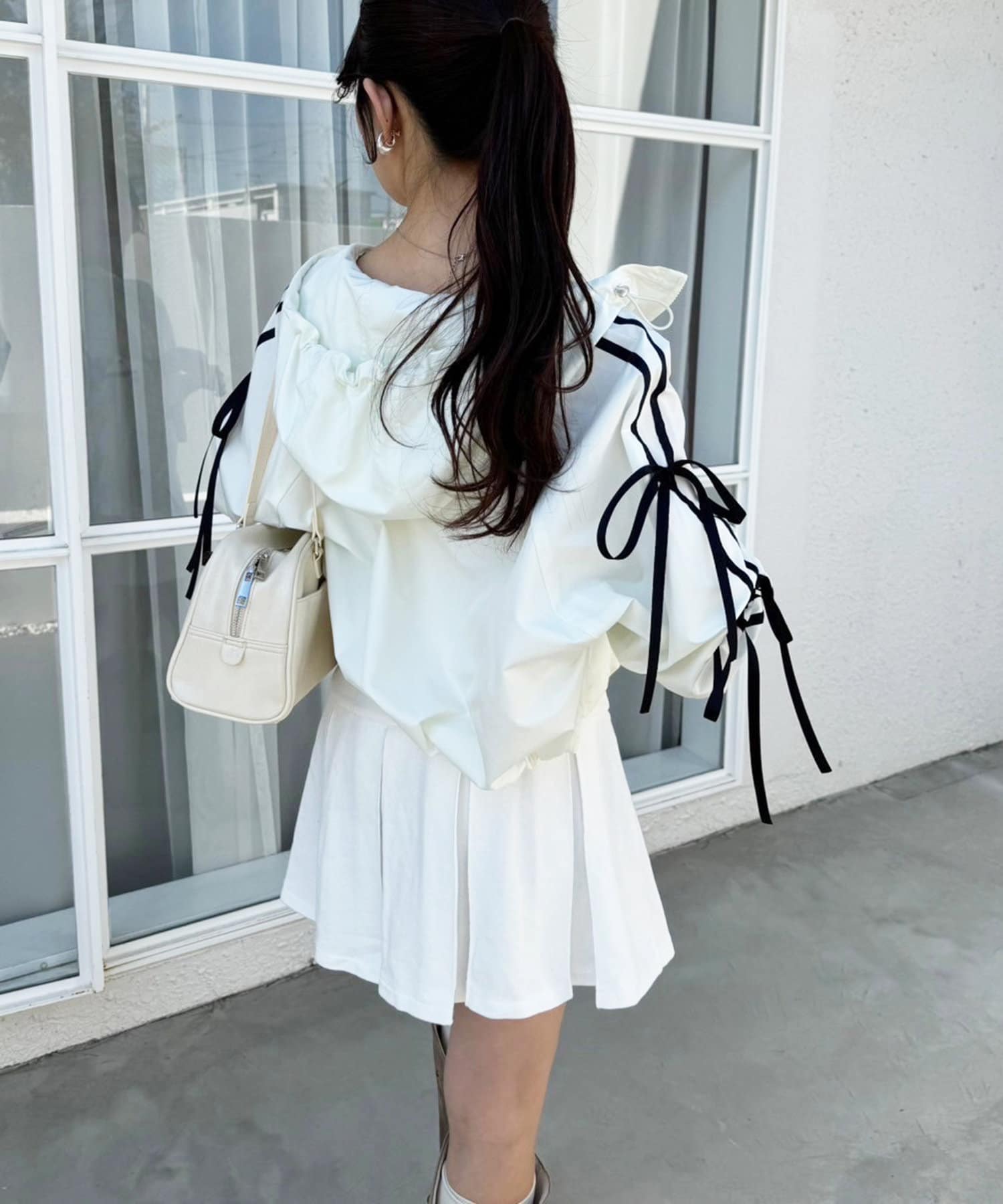 袖のリボンがあるから カジュアルになりすぎず ガーリーコーデに合います