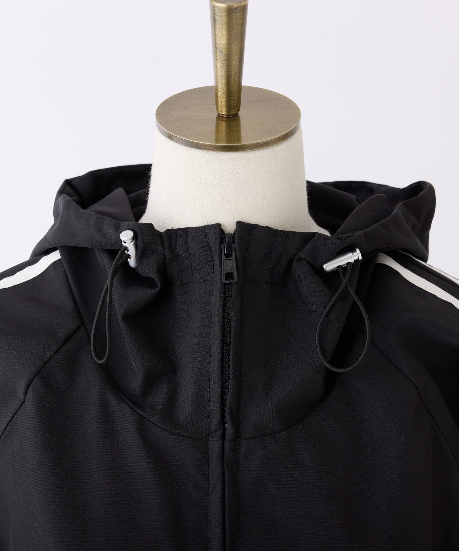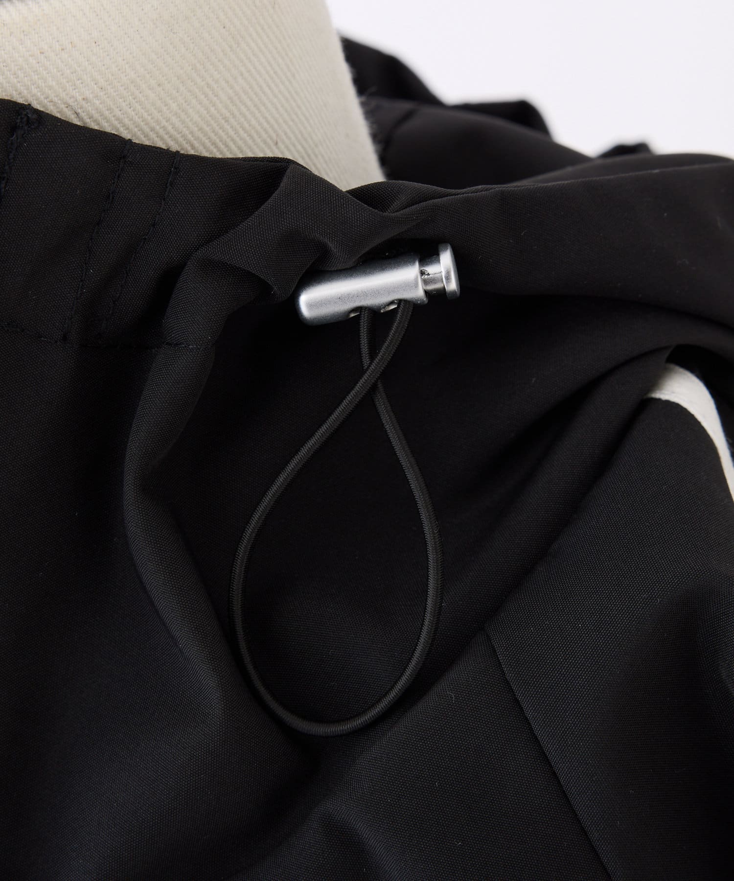 フードと裾には絞り金具が付いており、シルエットを変えることで印象チェンジも可能。