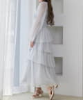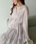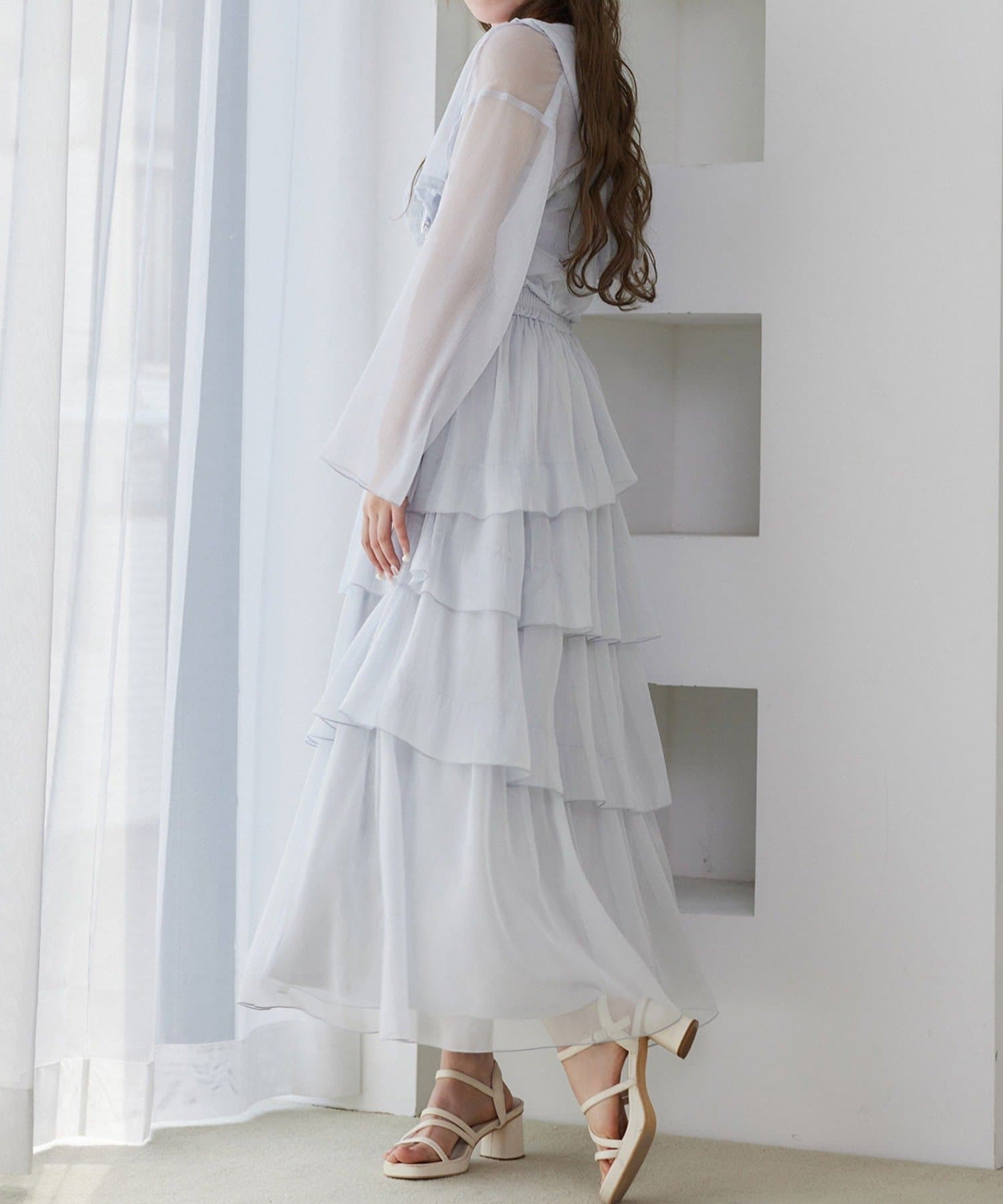 袖口にあしらわれたスリット入りのベルスリーブが、女性らしい雰囲気を演出します。