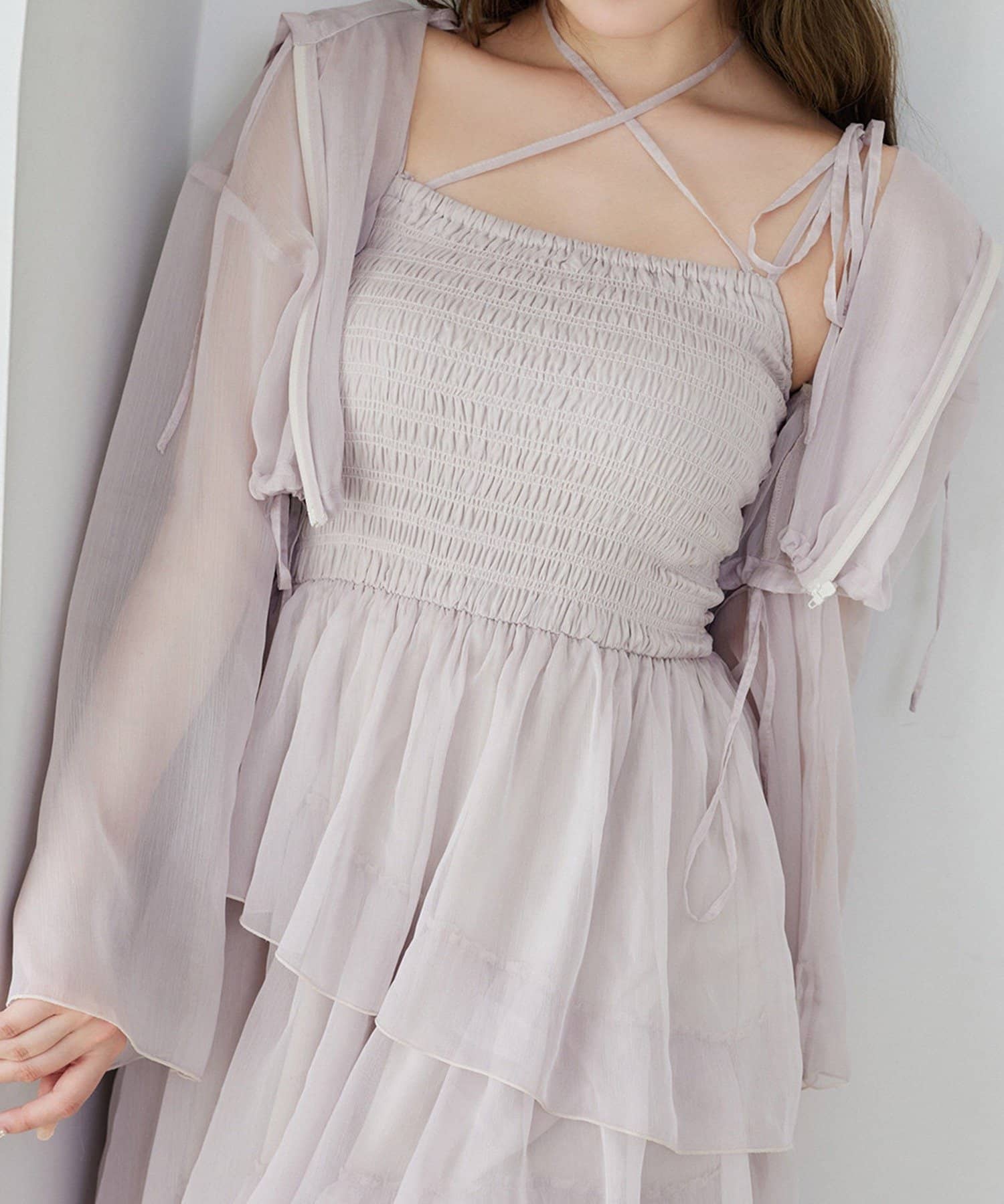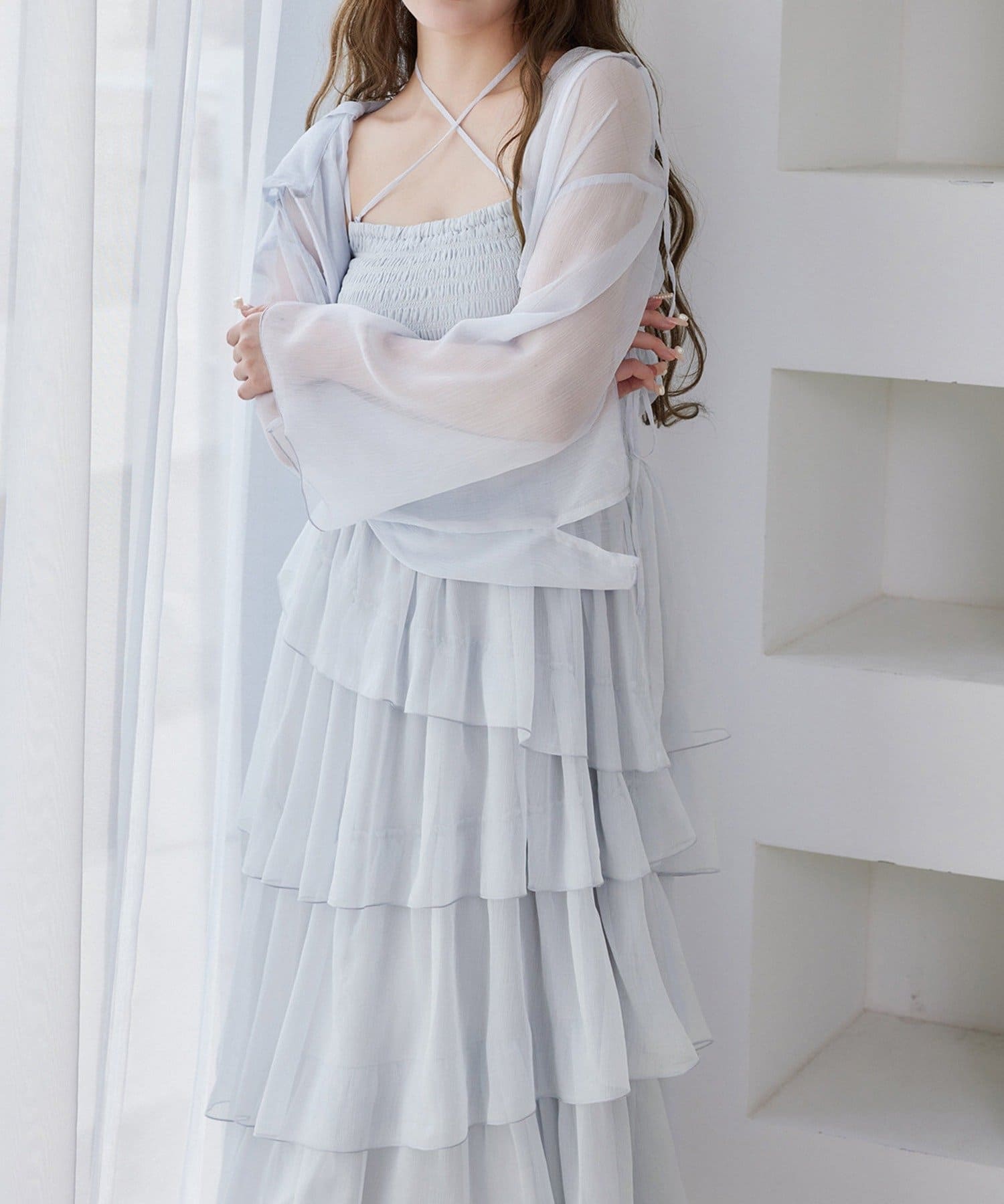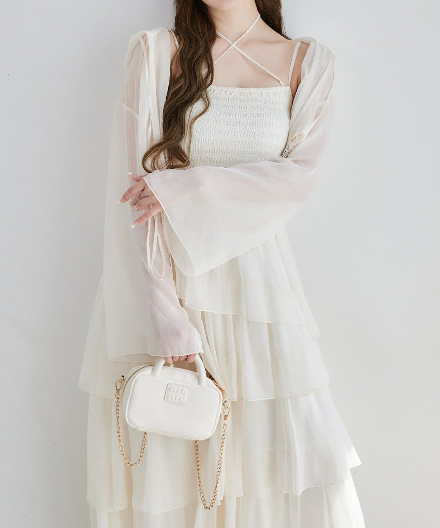 これからの時期はノースリーブのワンピースやキャミソール、ビスチェとの合わせも◎