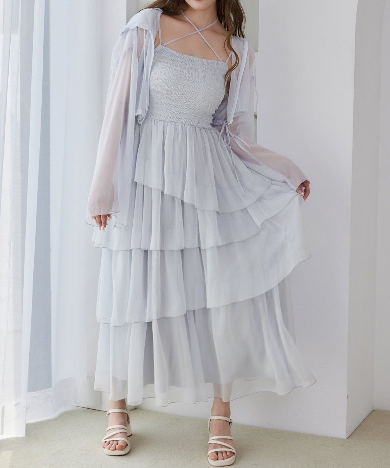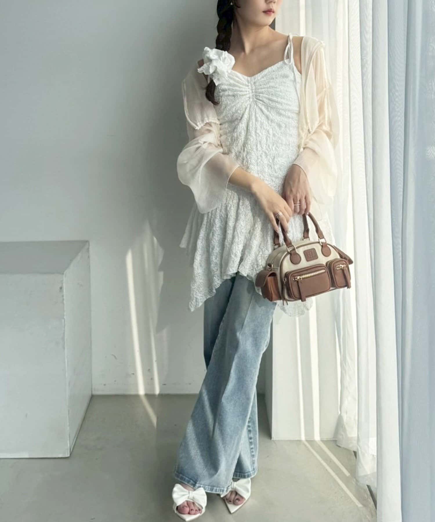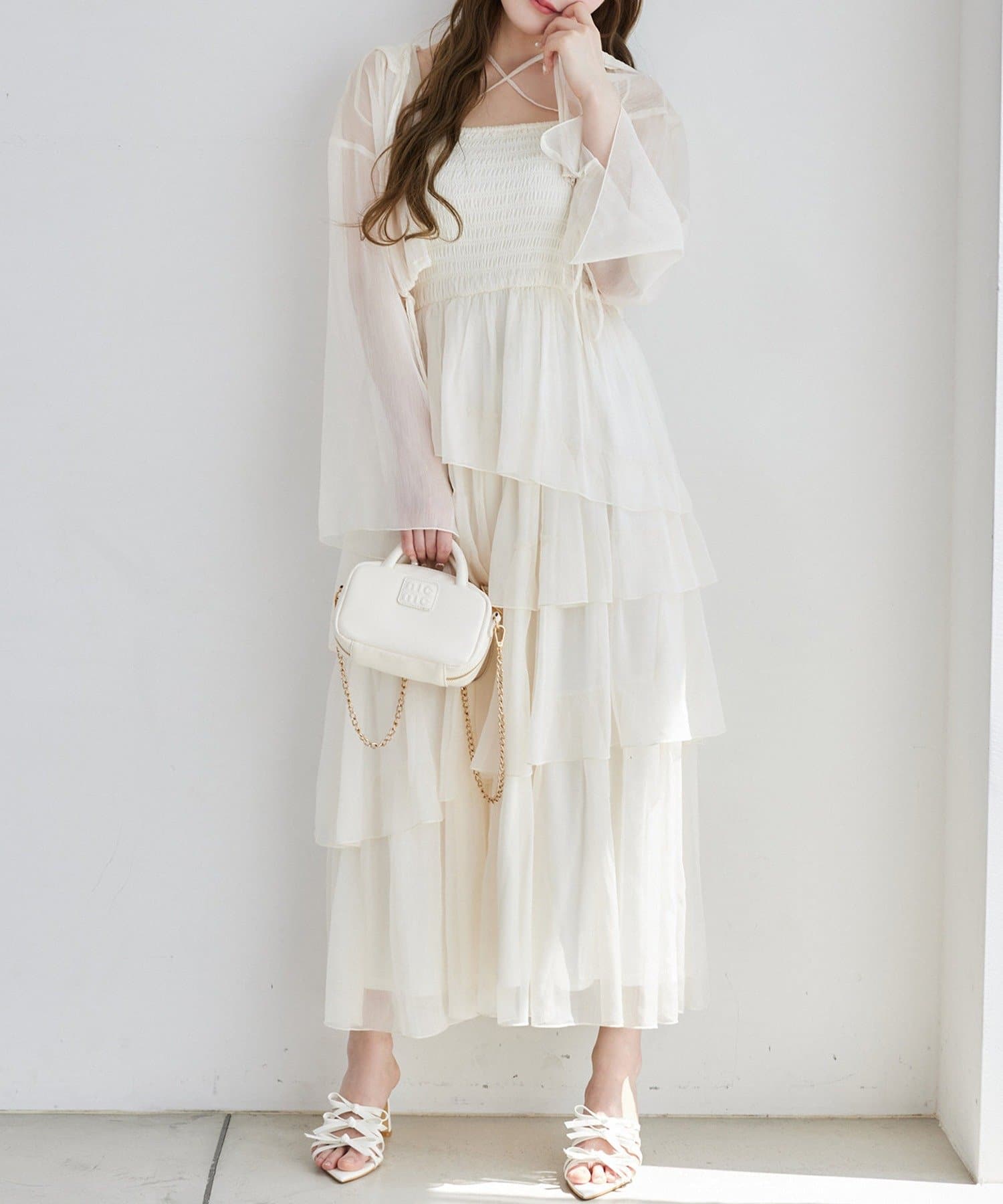 これからの時期はノースリーブのワンピースやキャミソール、ビスチェとの合わせも◎