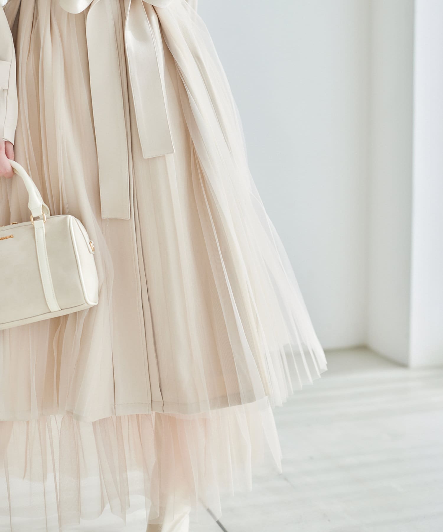 チュールが歩くたびに揺れ、女性らしさを演出します。