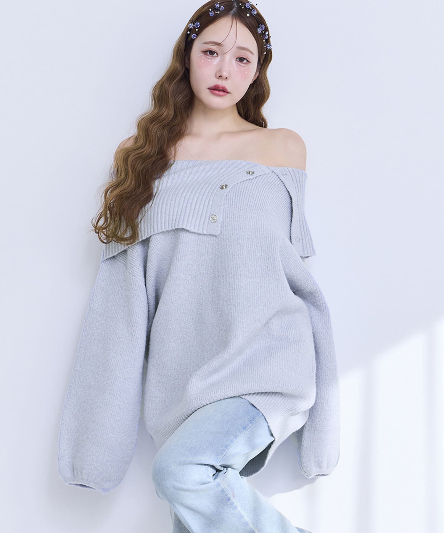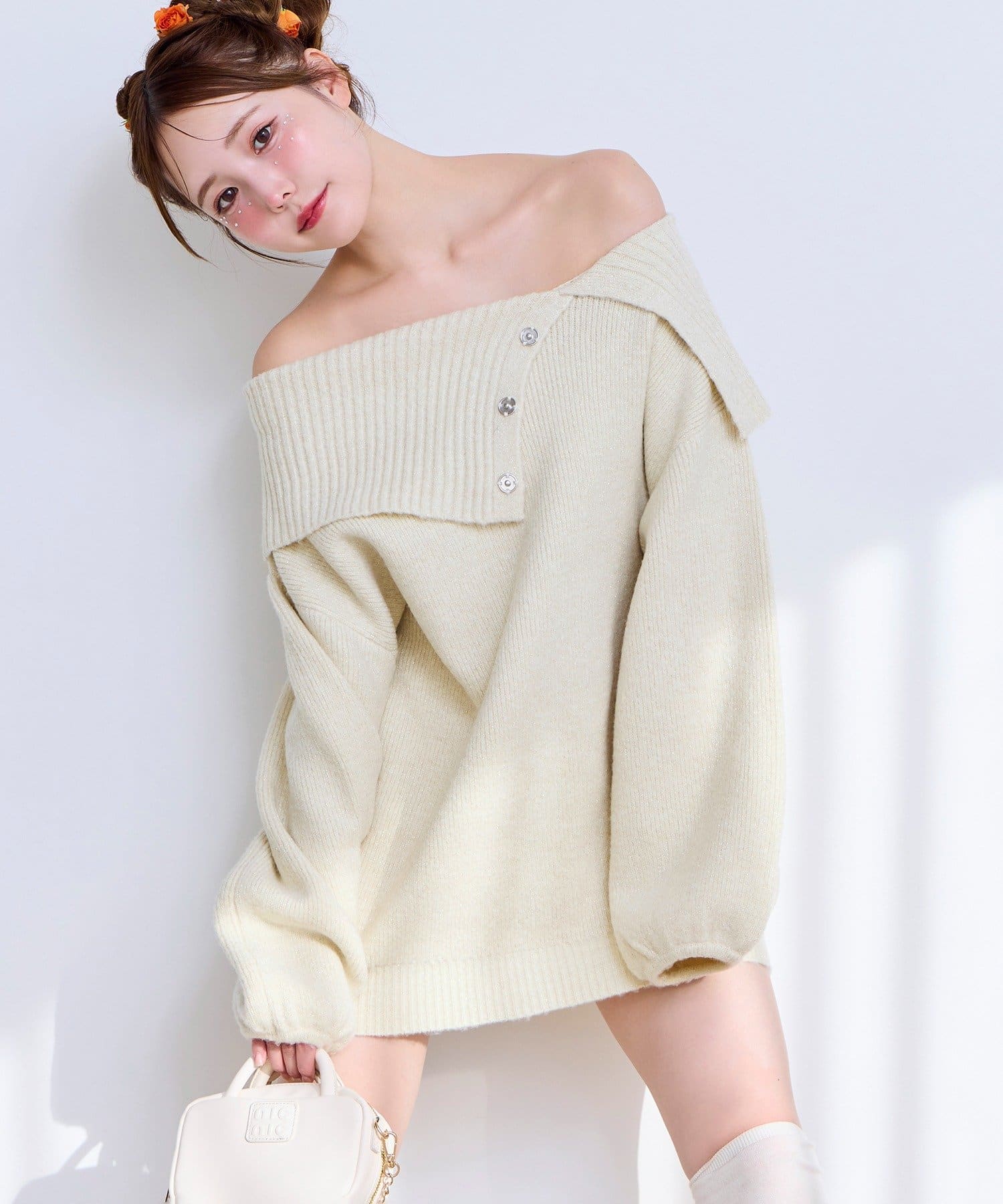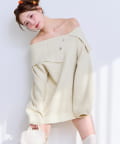 オフショル部分は大きく折り返しているのでデコルテを綺麗に見せ、