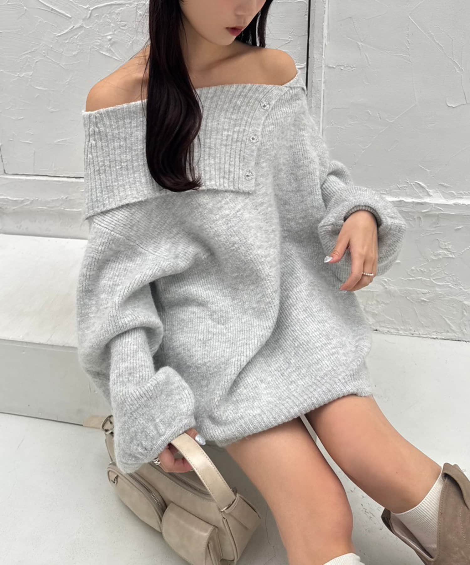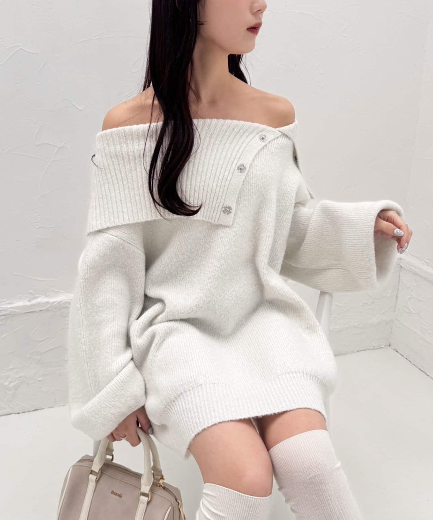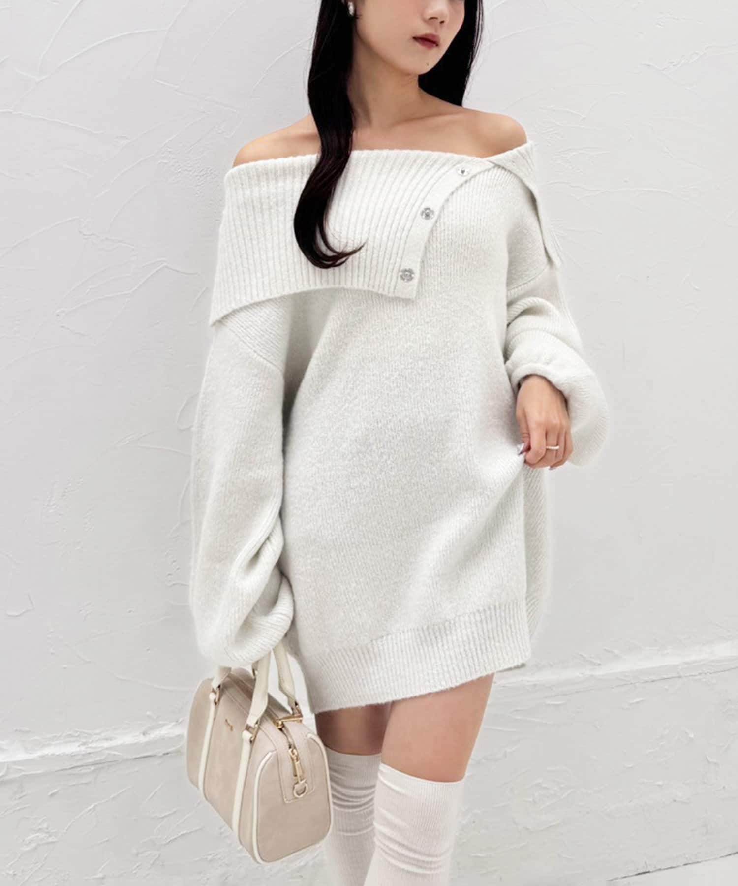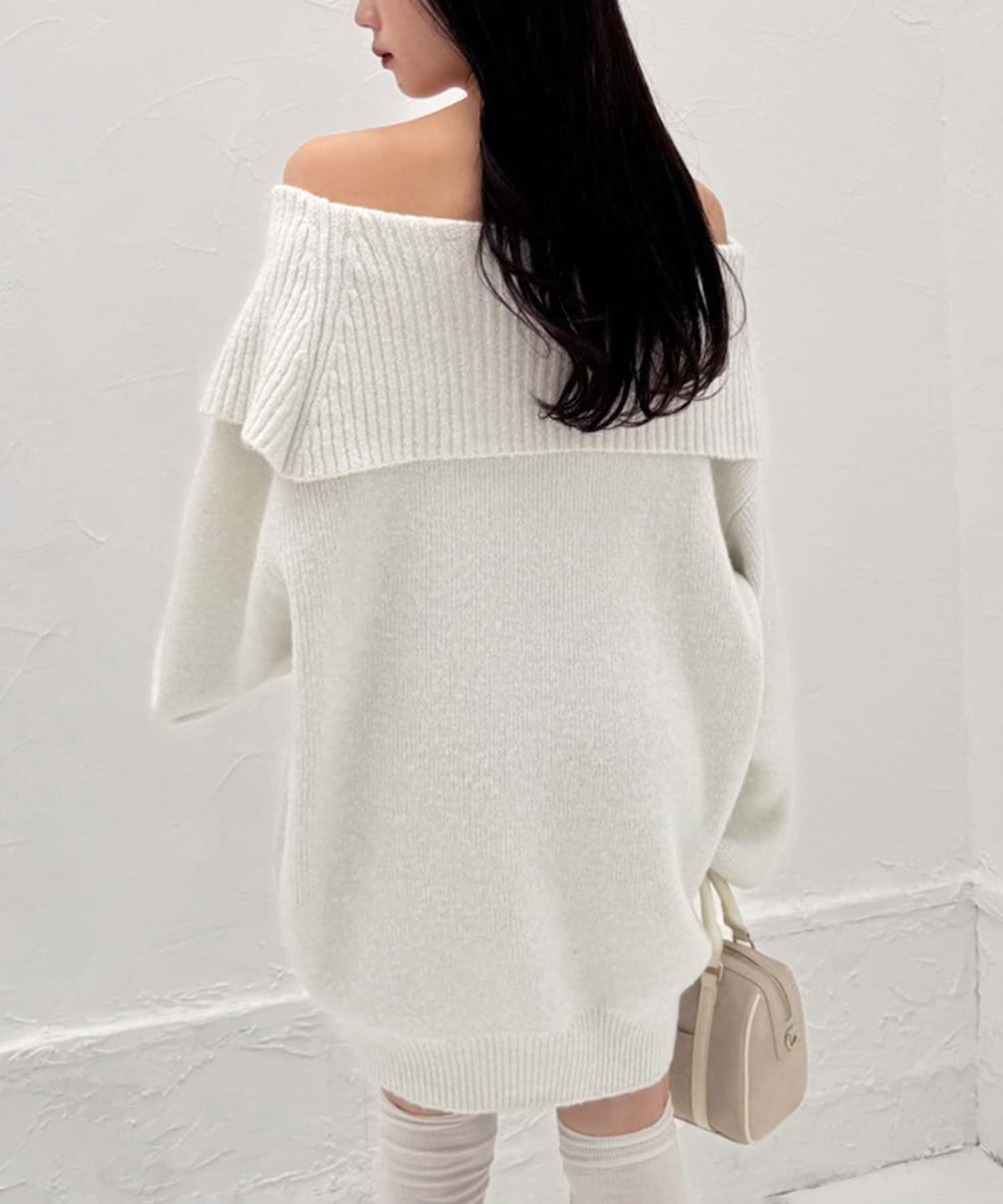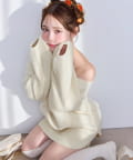 オフショルニットミニワンピース