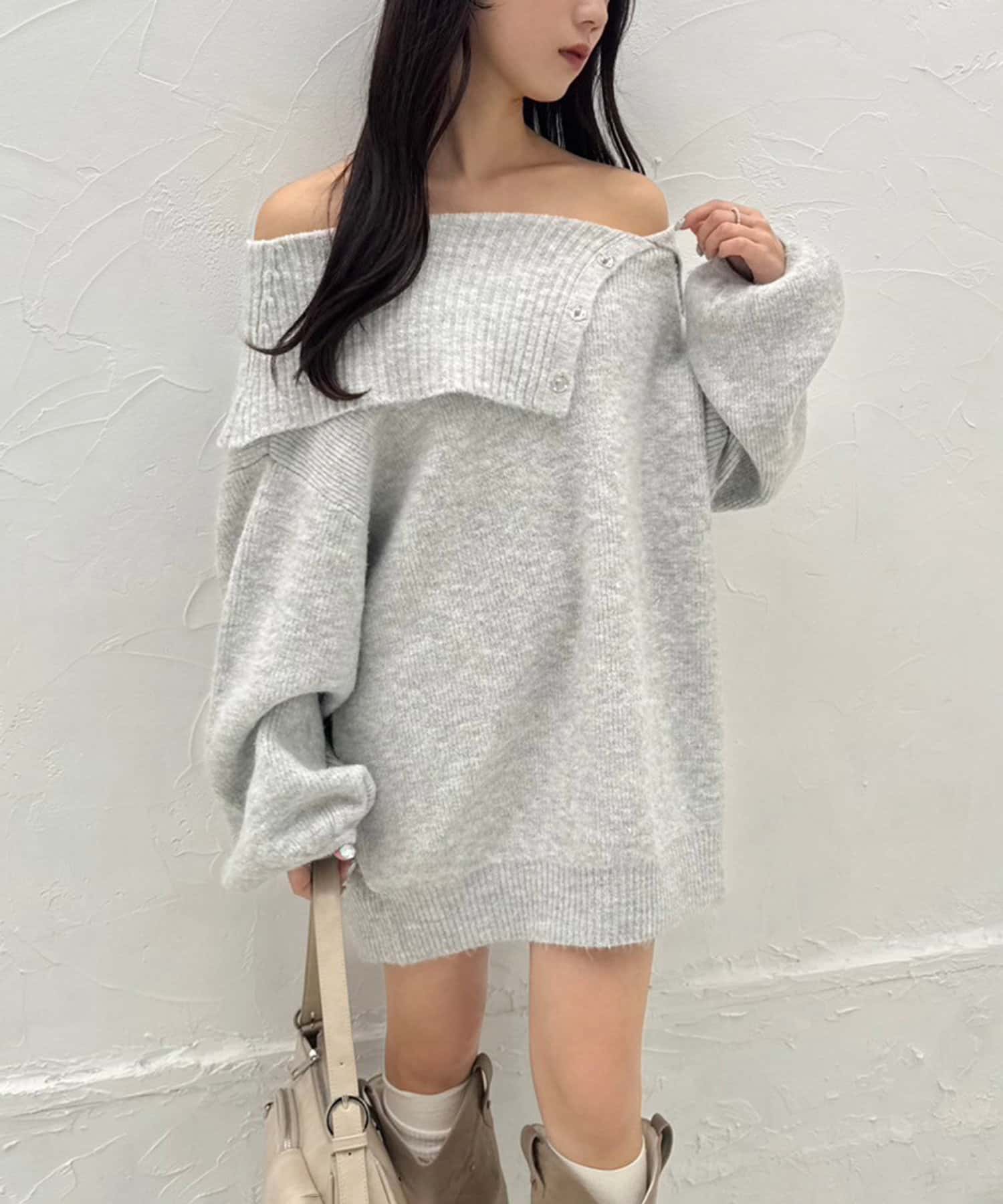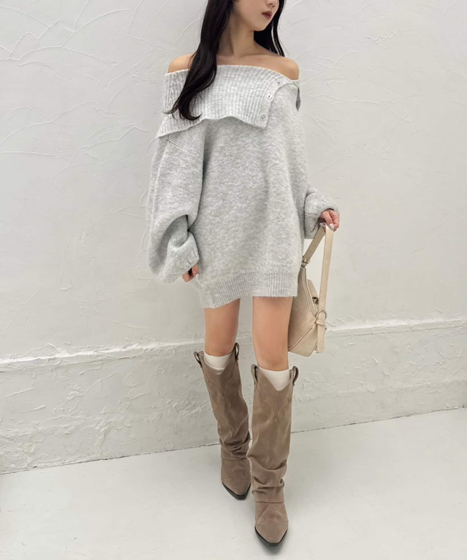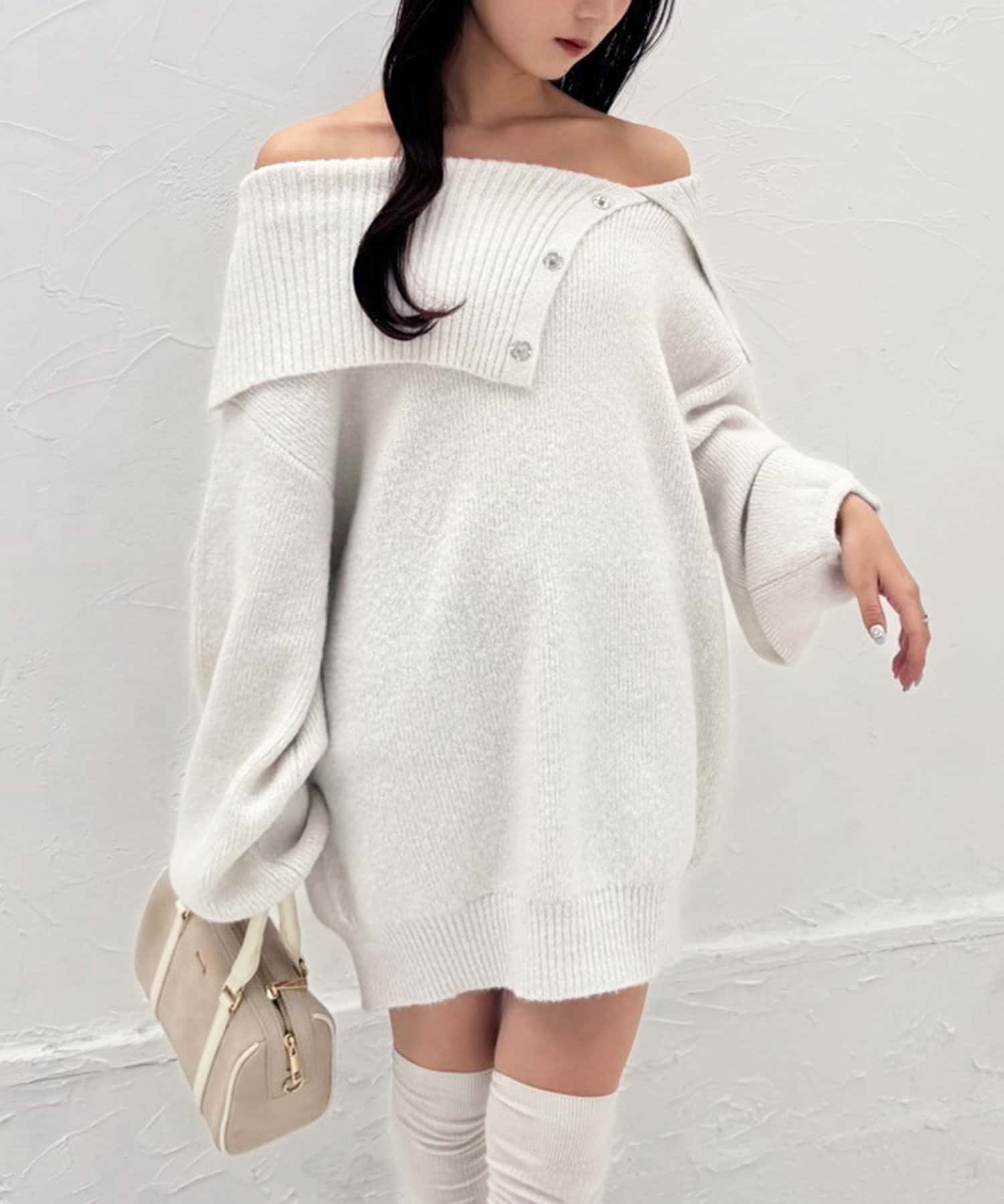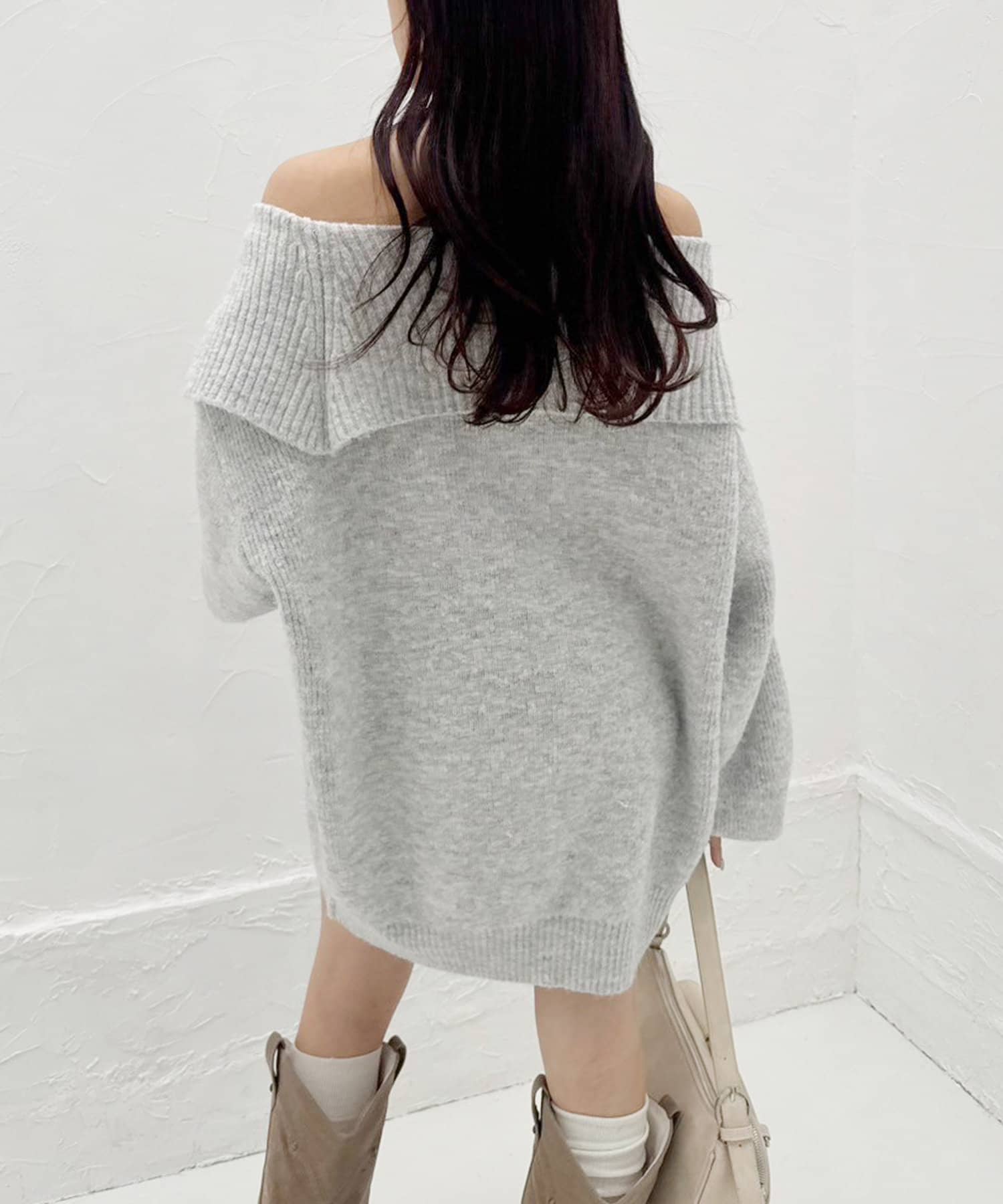 オフショルニットミニワンピース