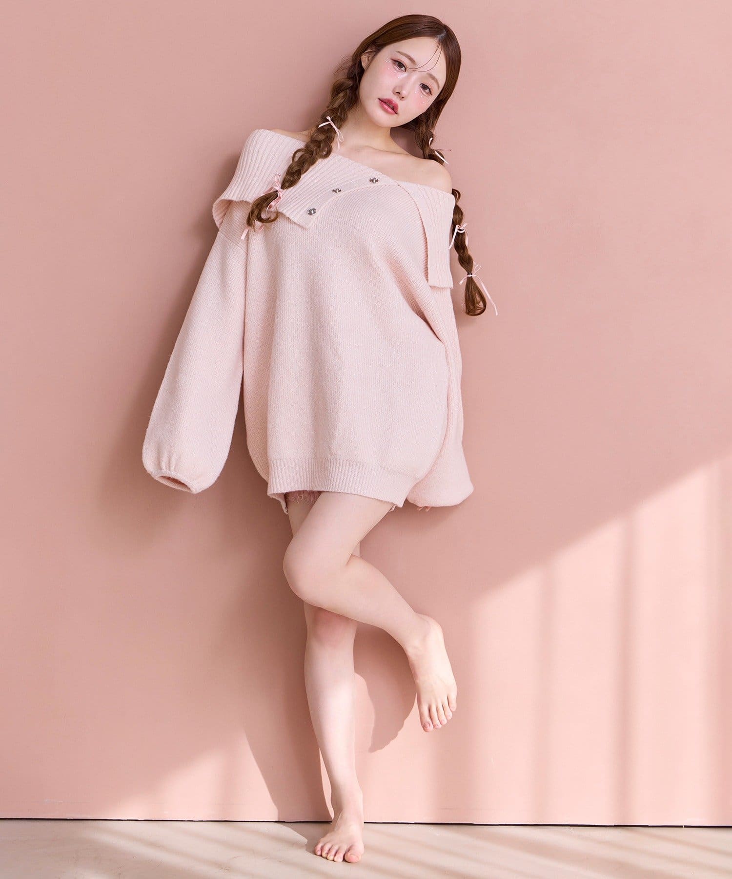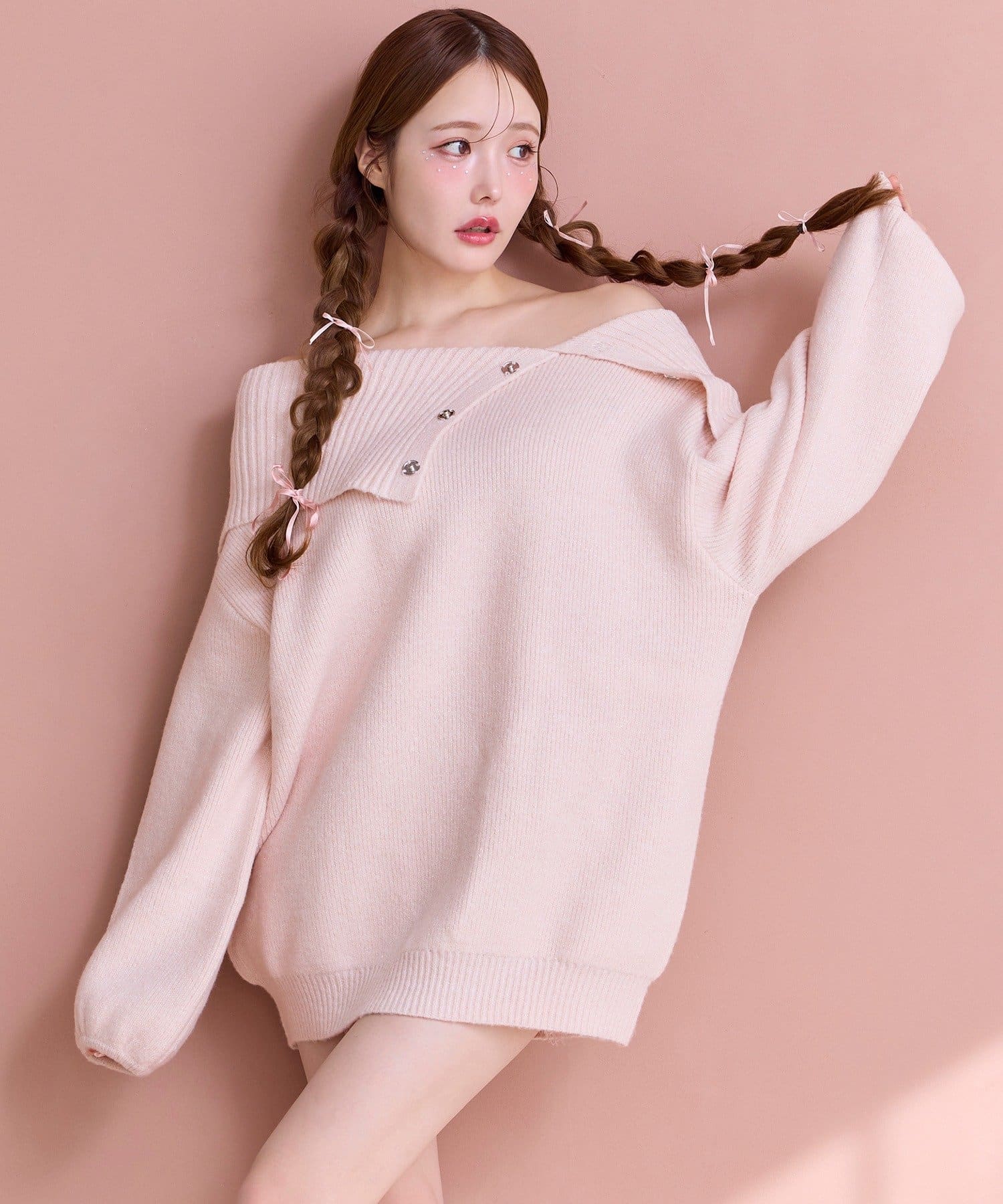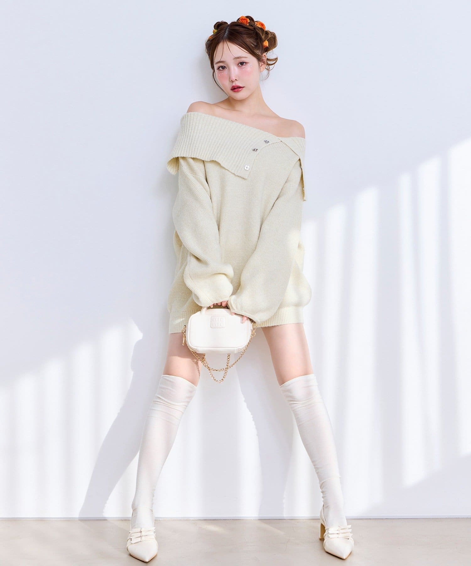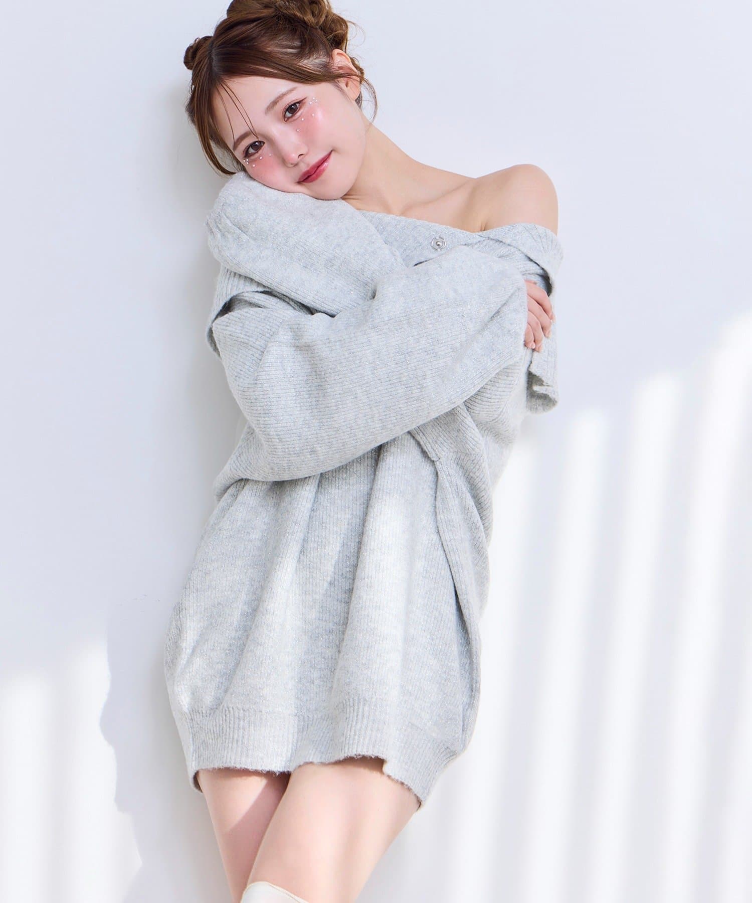 オフショルニットミニワンピース