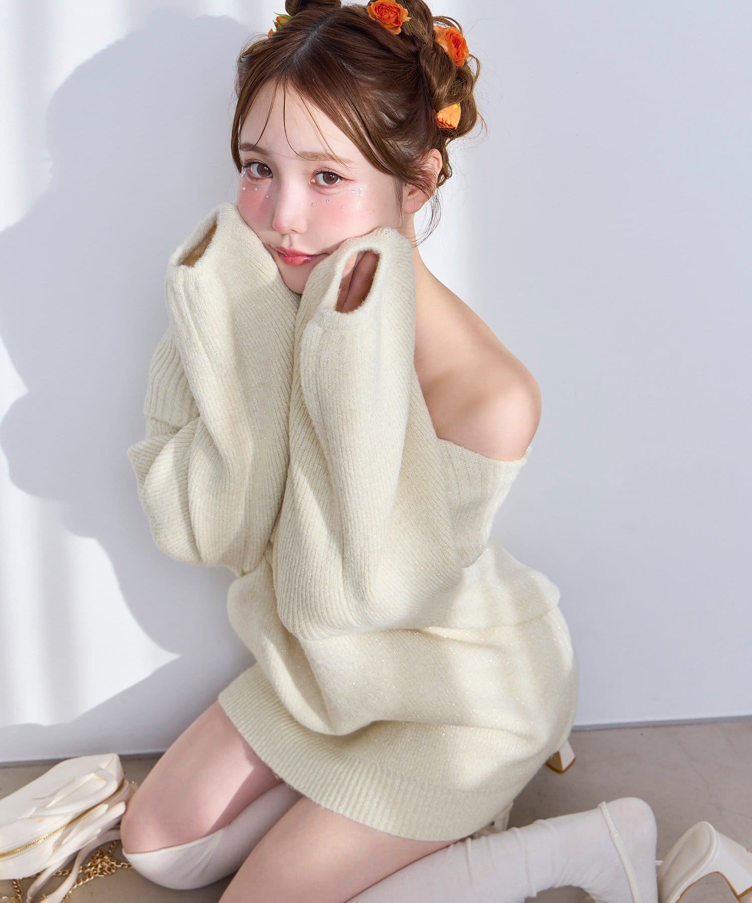 ヘルシーな肌見せが叶うオフショルニットワンピース