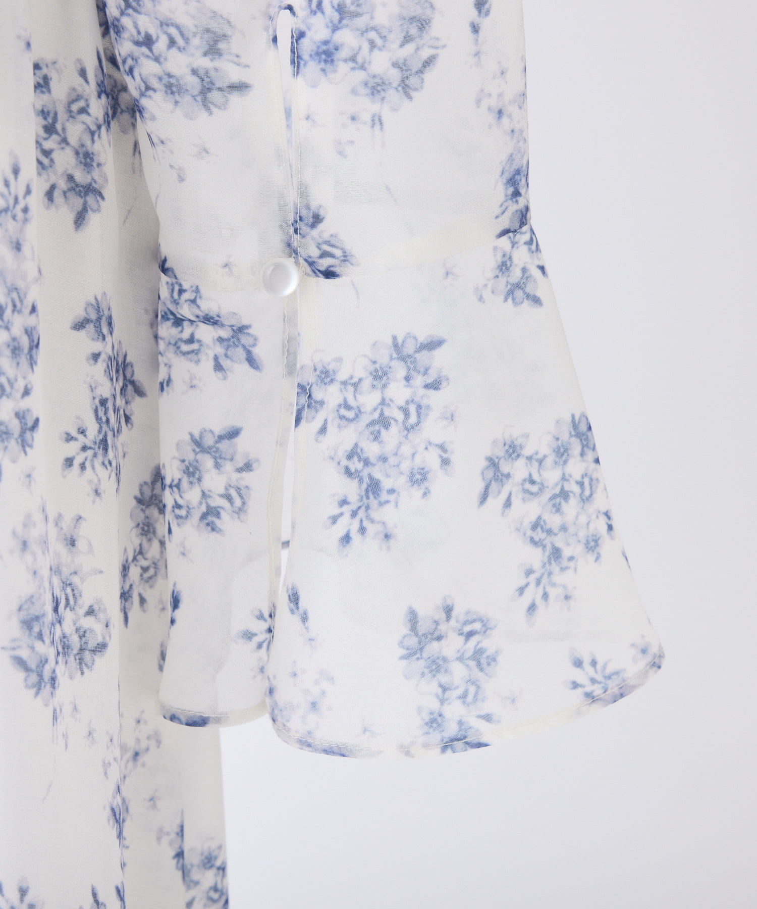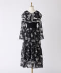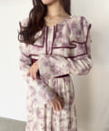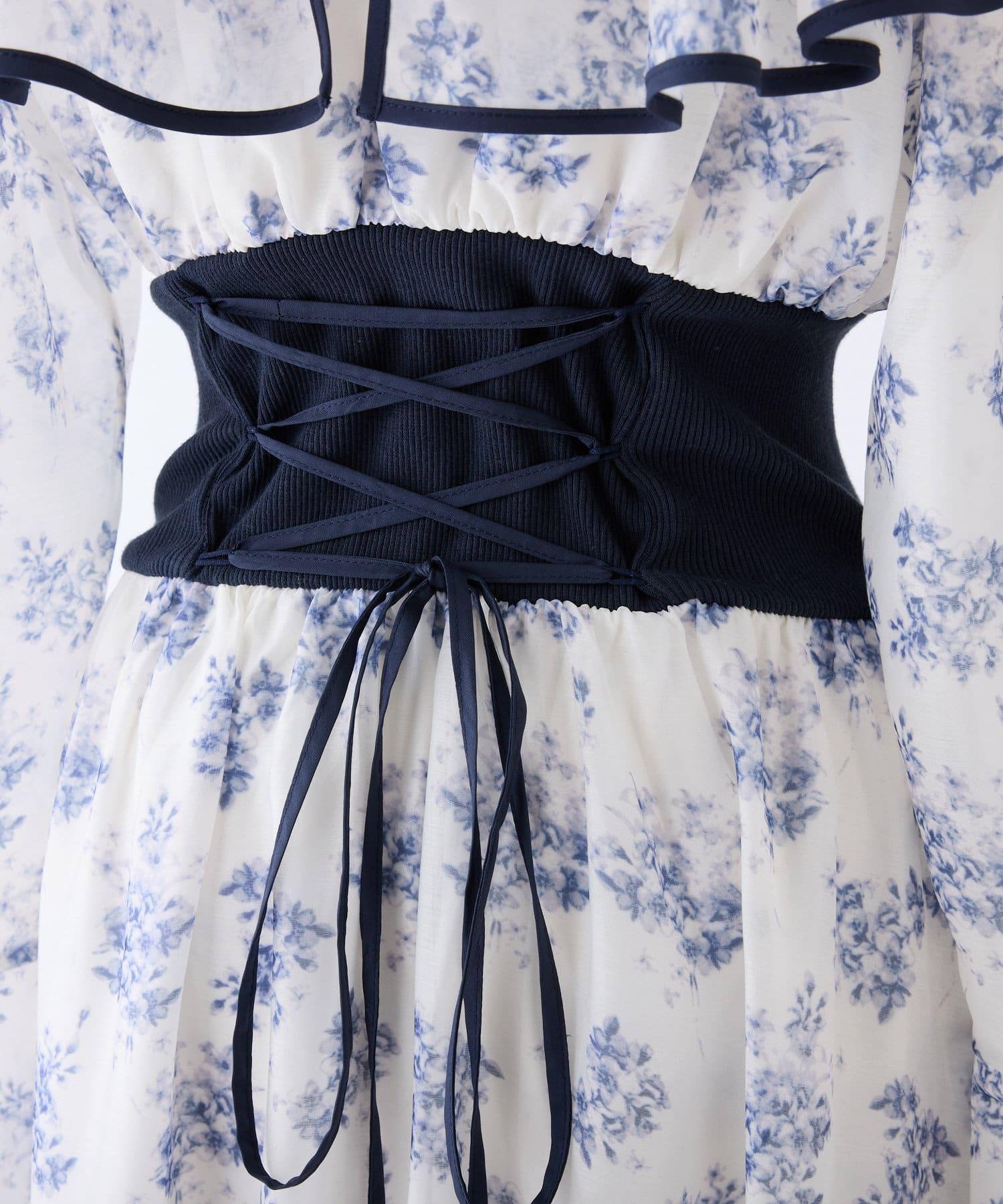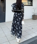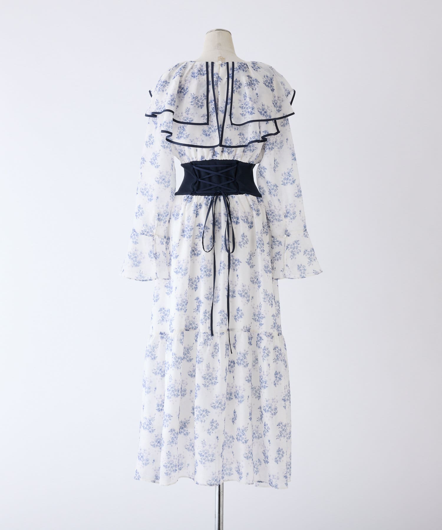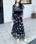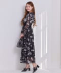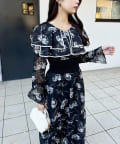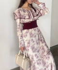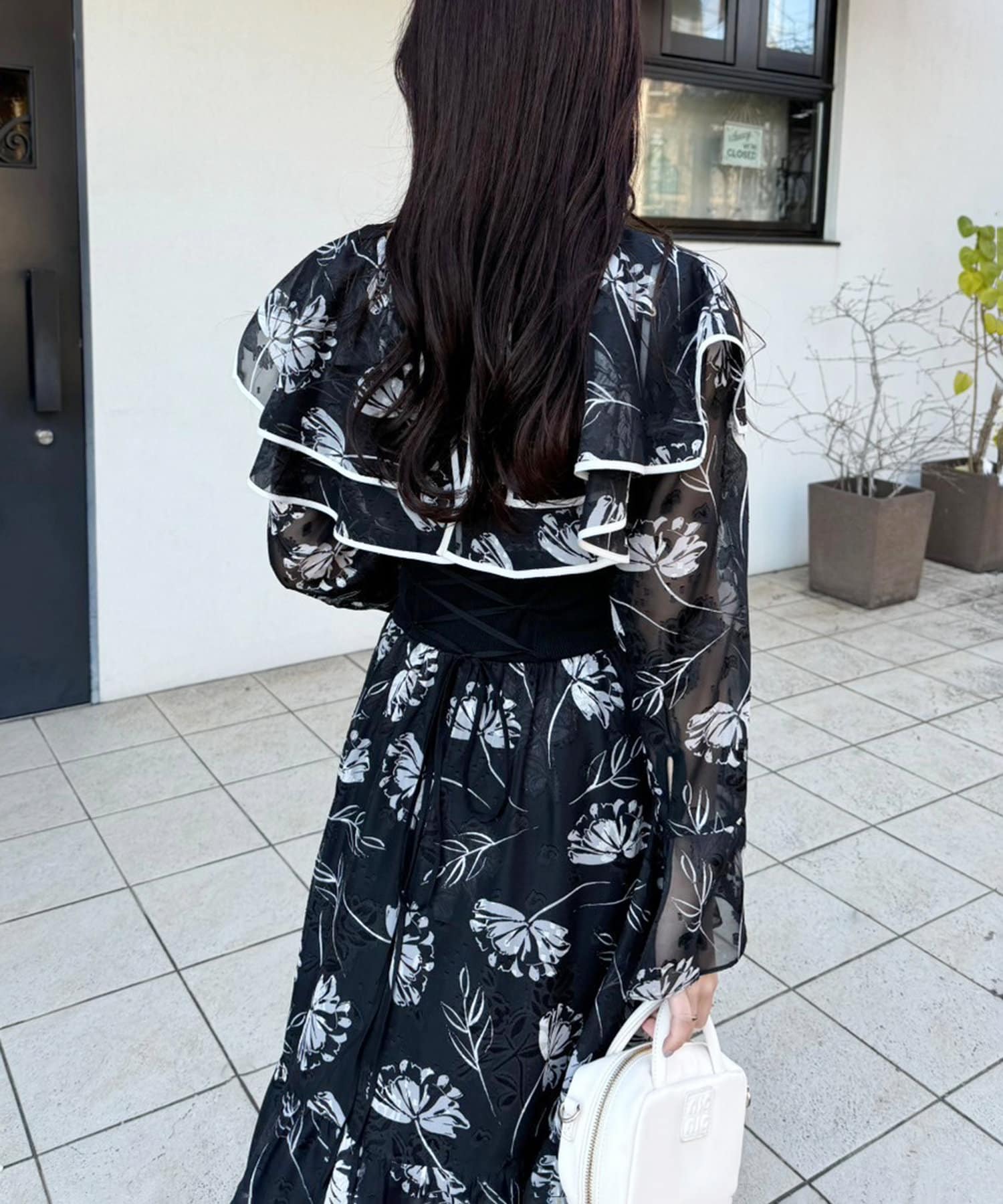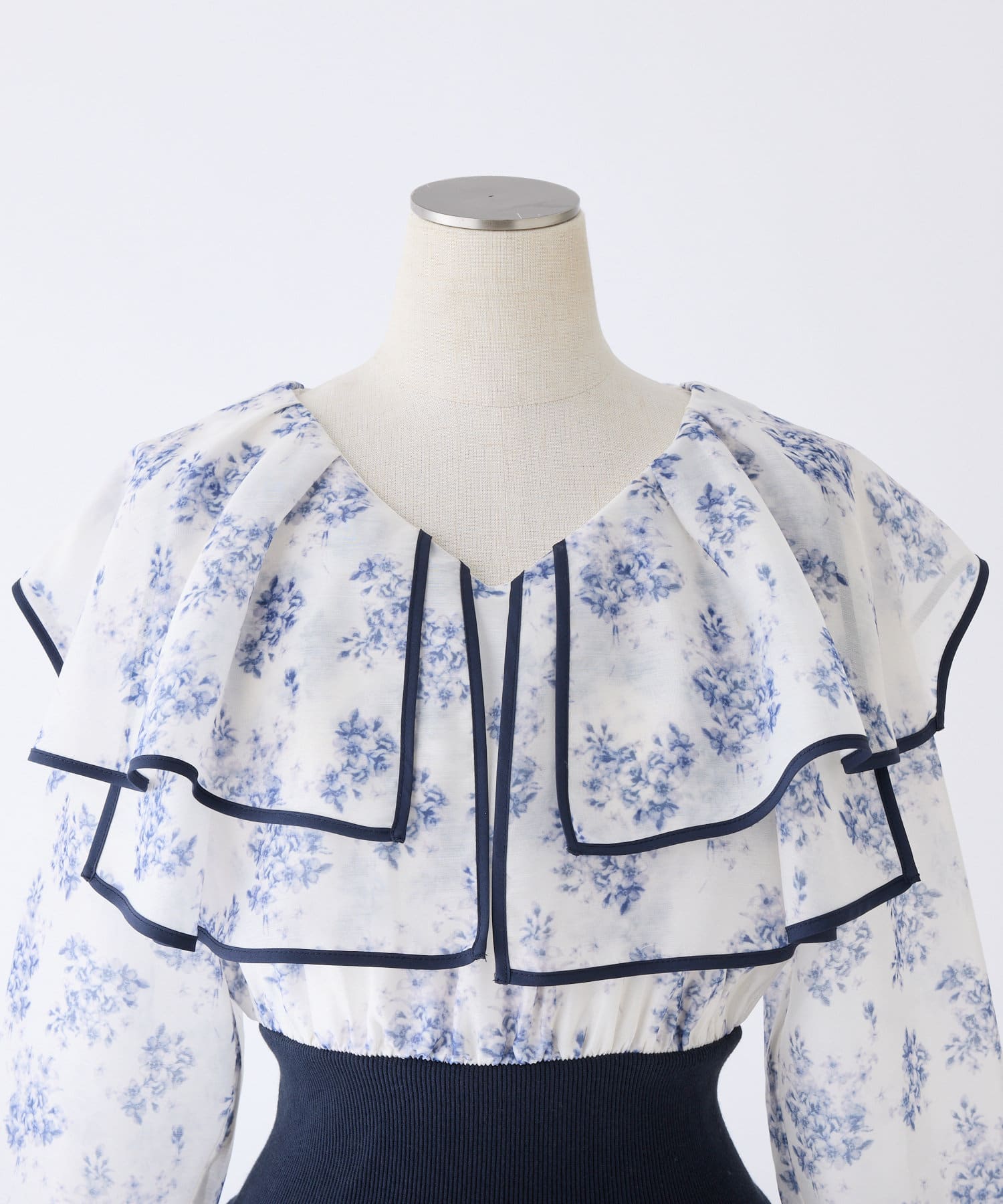 オトナ可愛いパイピング配色の花柄ワンピース。