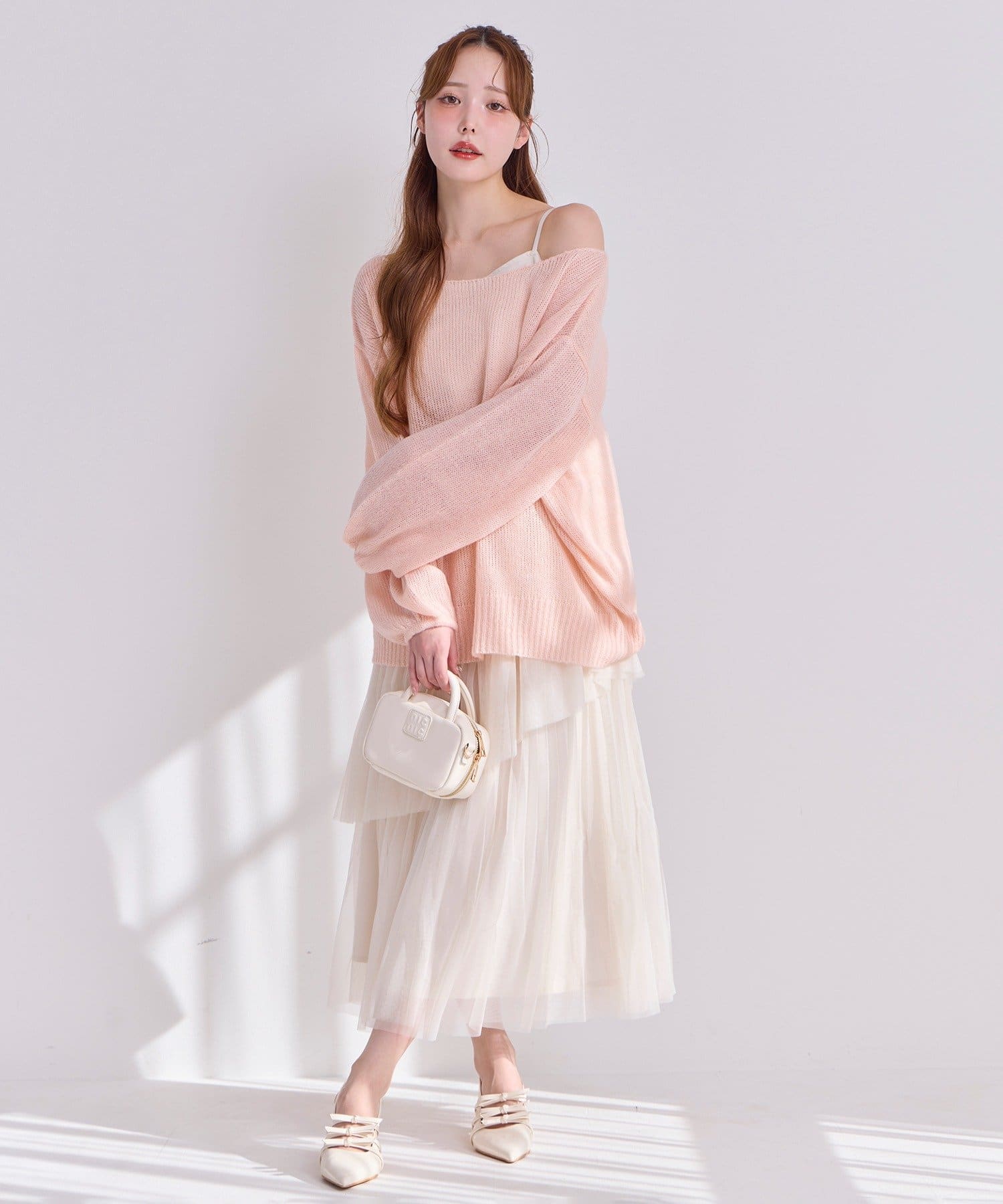 ニットは首周りを広くしているのでヘルシーな肌見せが叶います◎