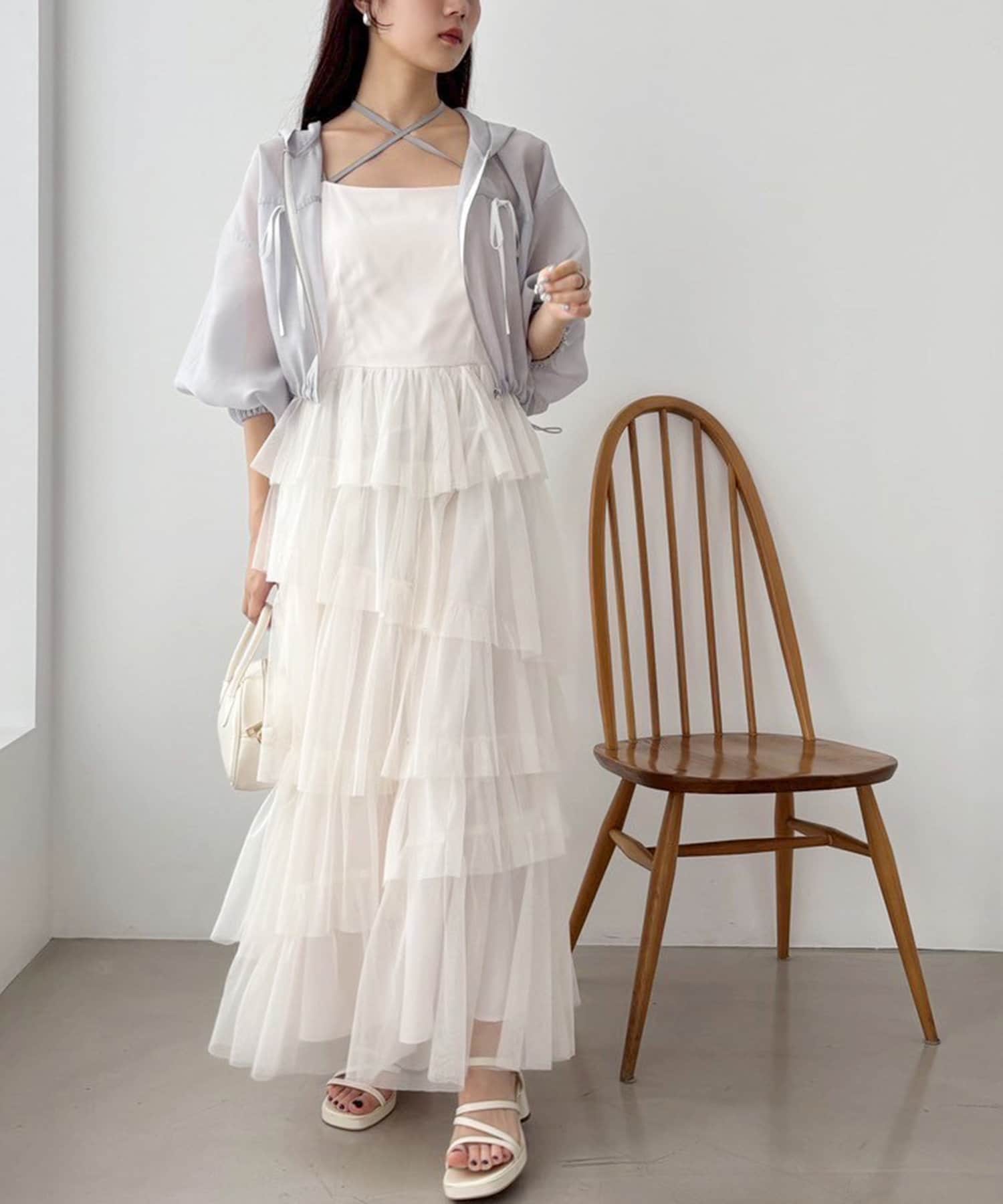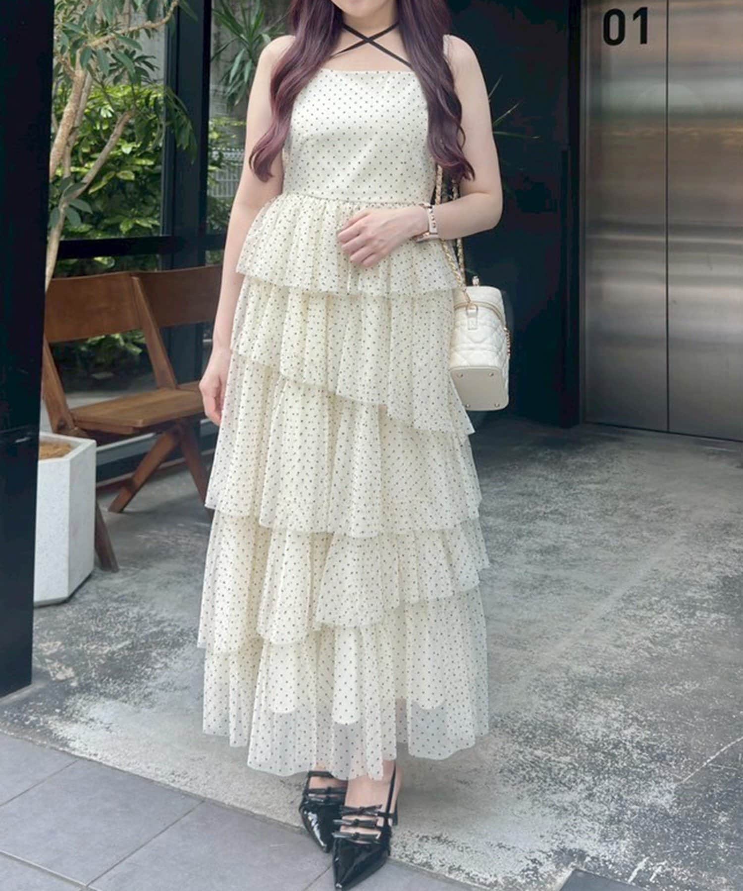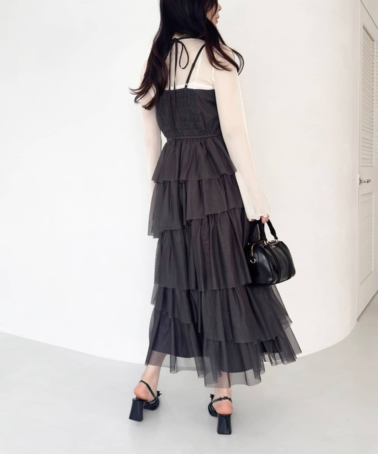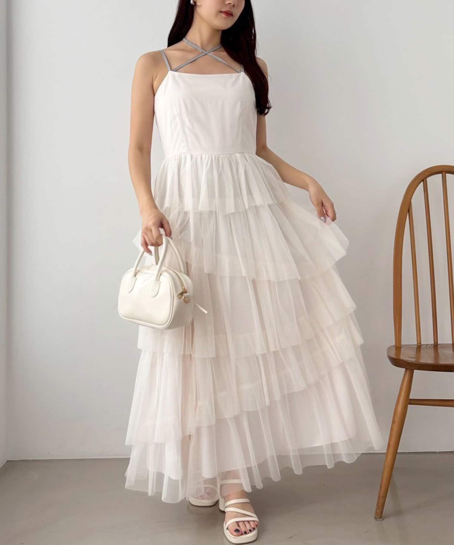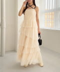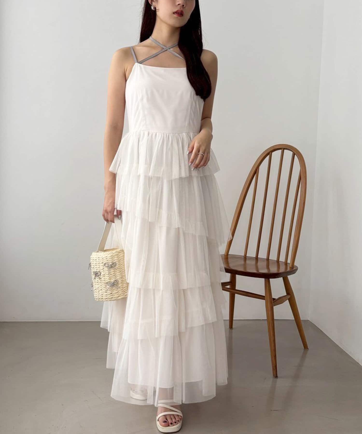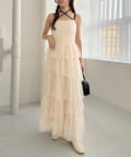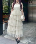 チュールのフリルを贅沢にあしらったティアードワンピース