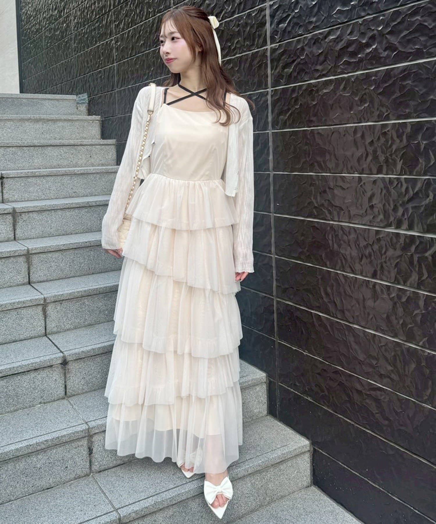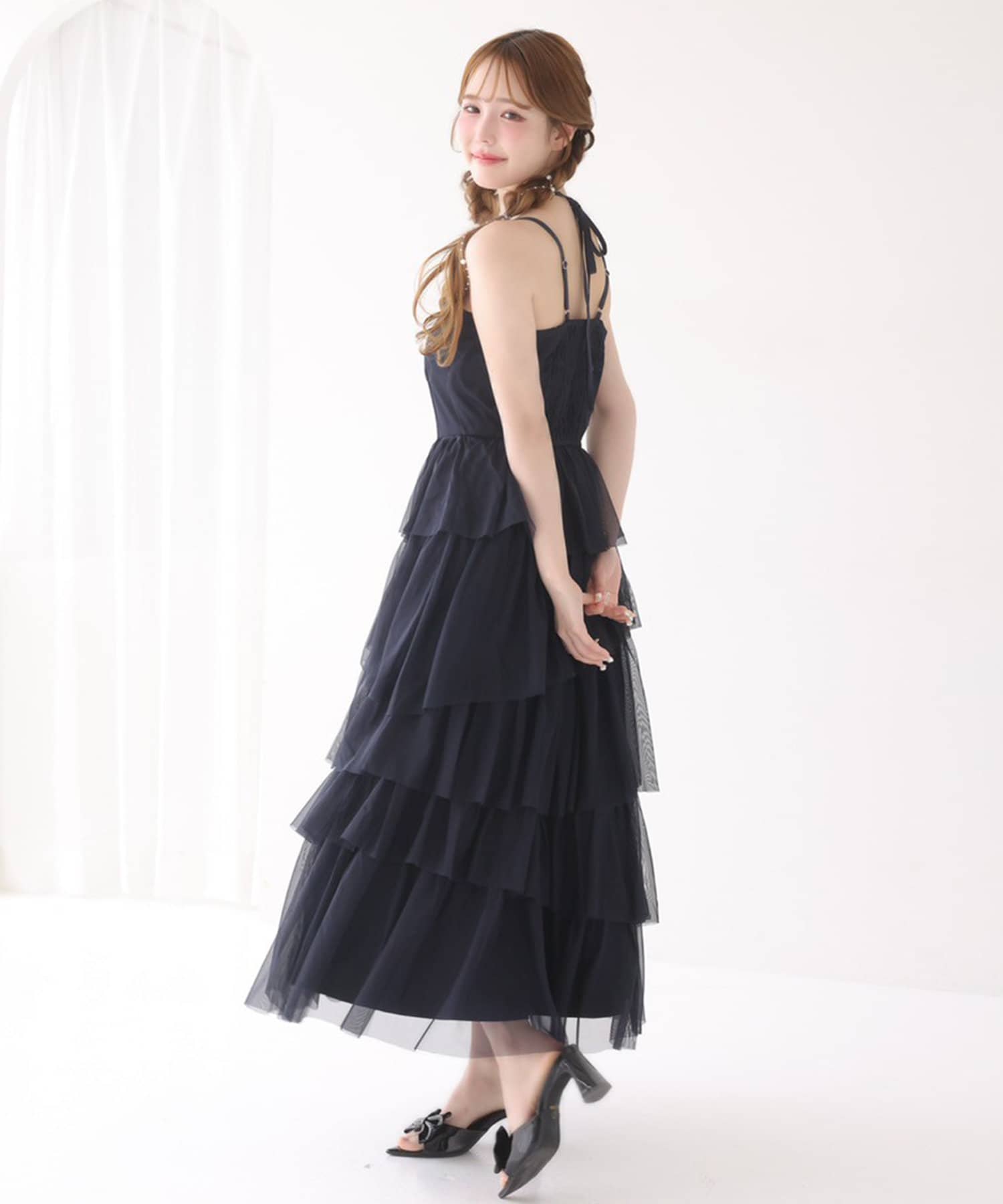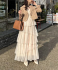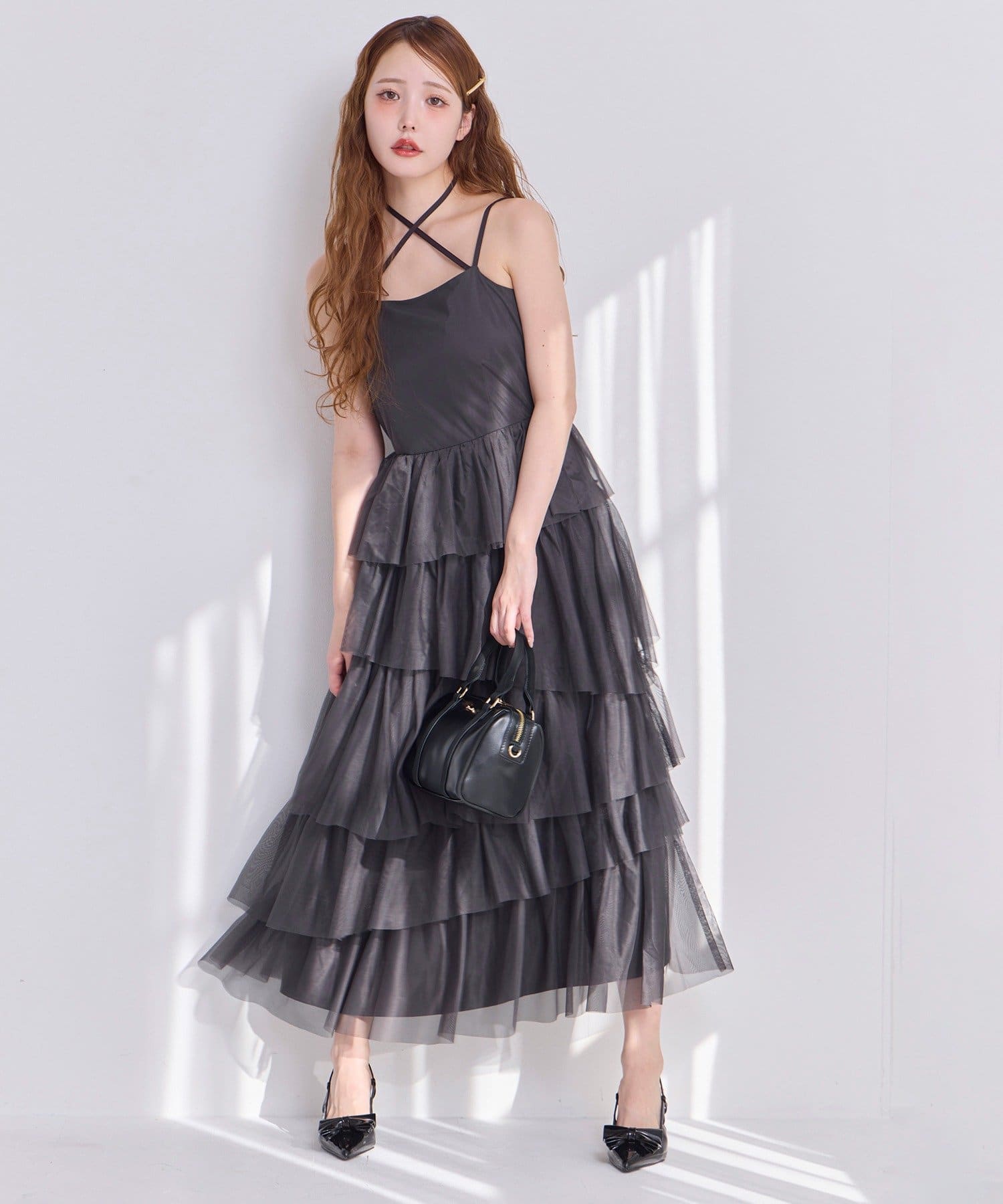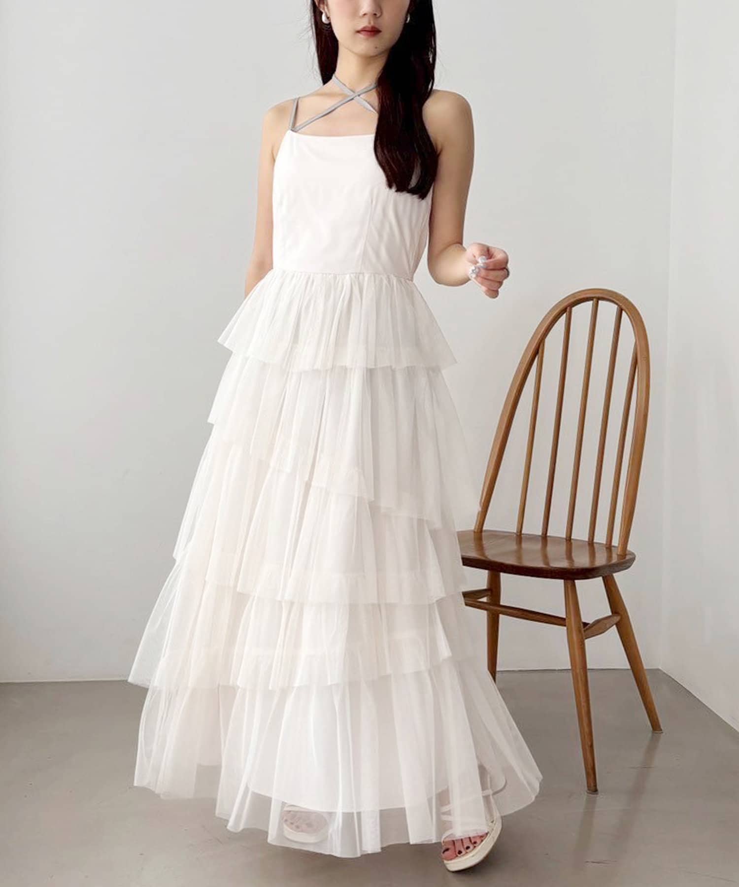 チュールのフリルを贅沢にあしらったティアードワンピース