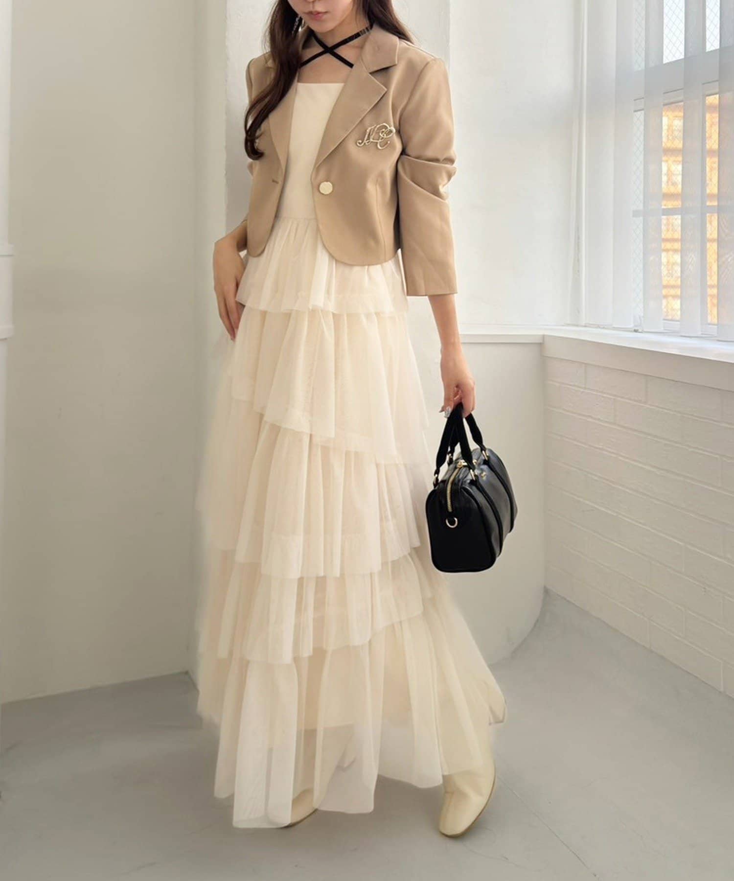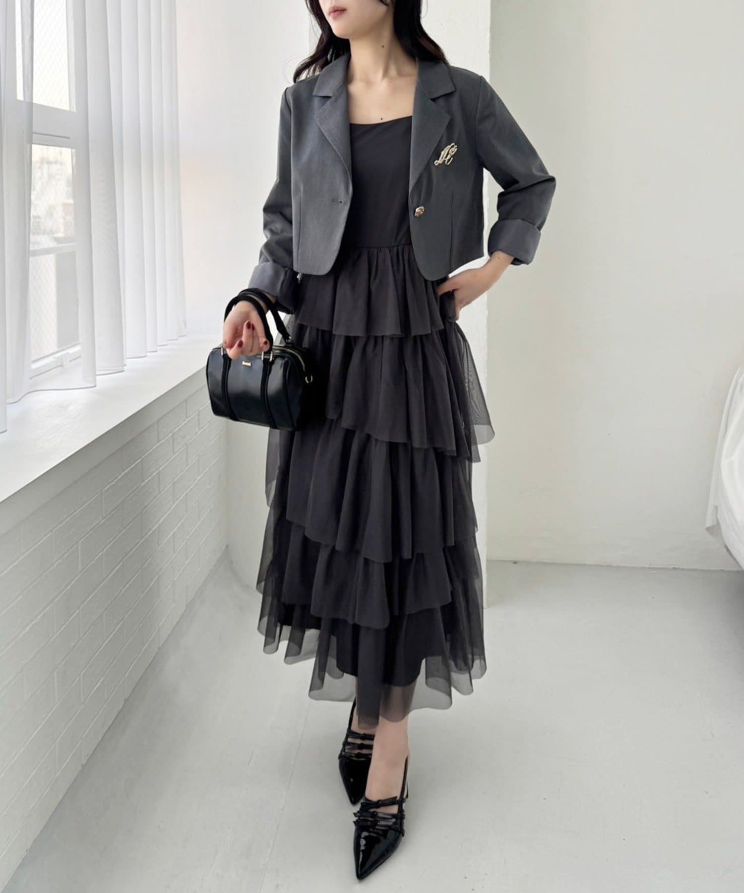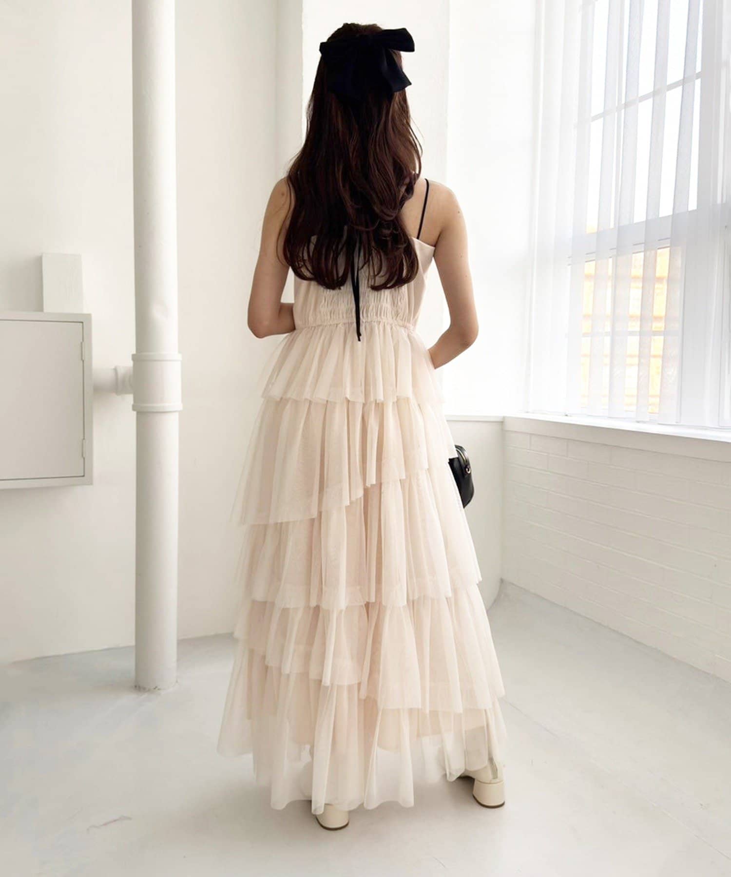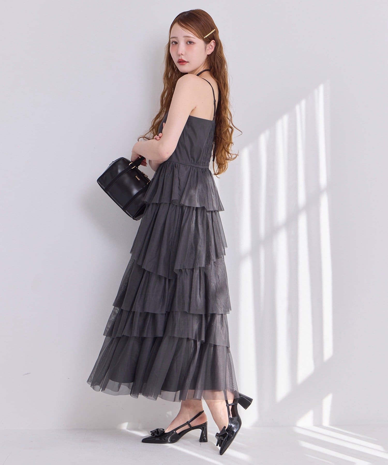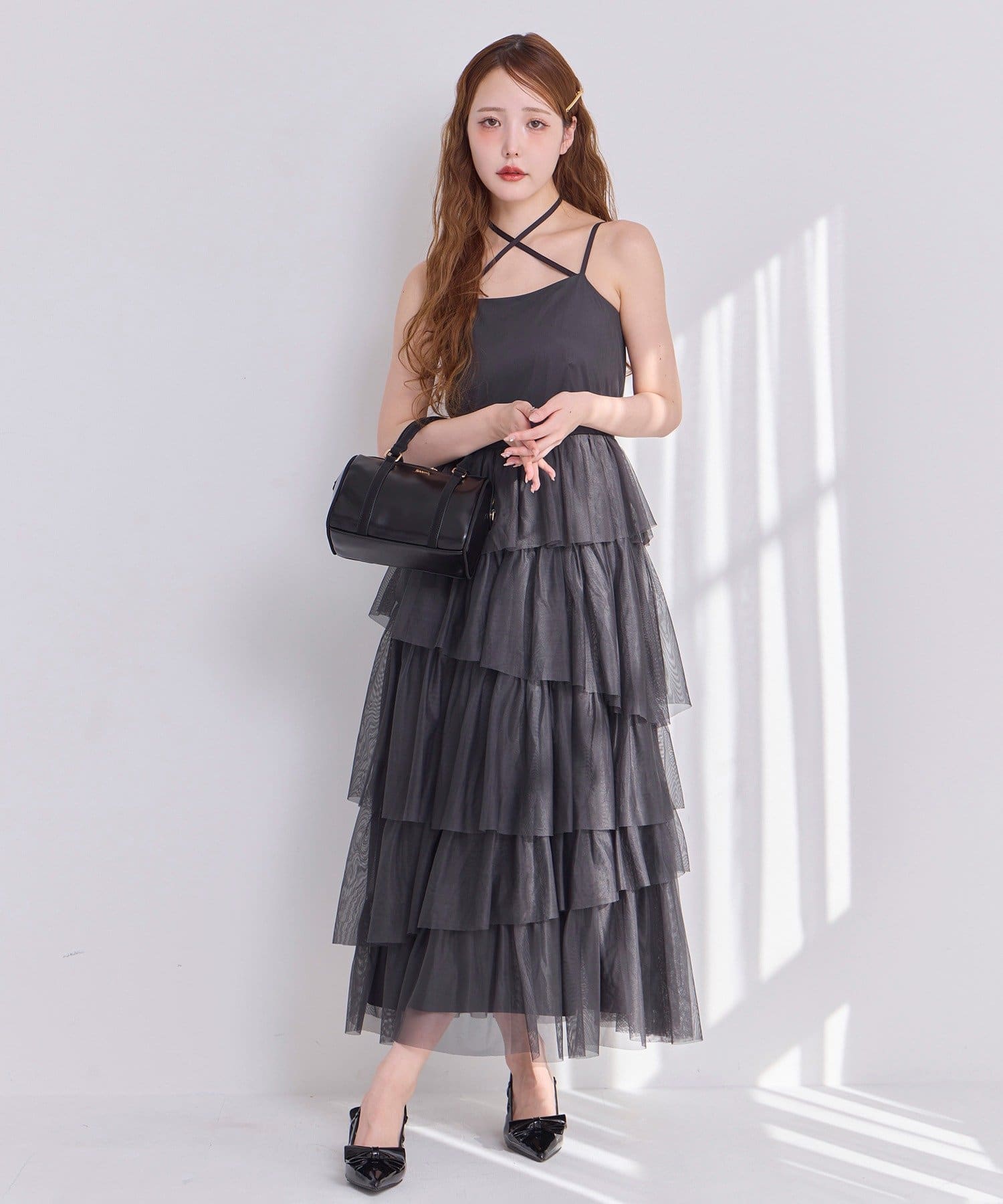 チュールのフリルを贅沢にあしらったティアードワンピース