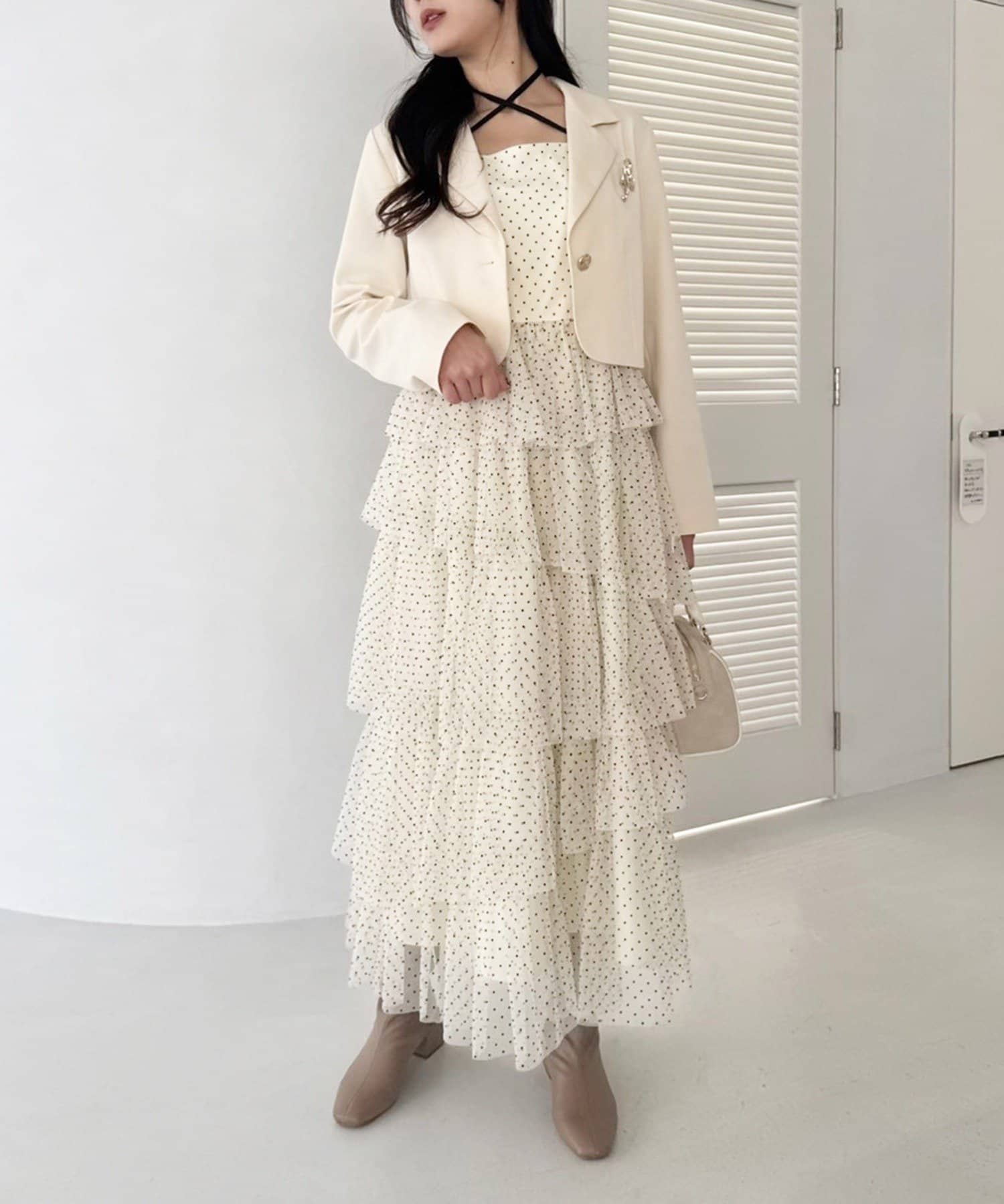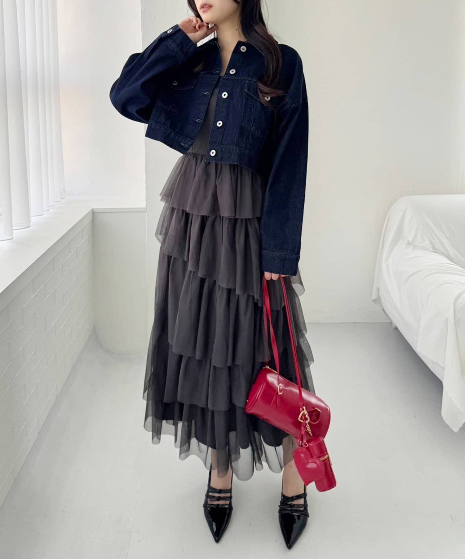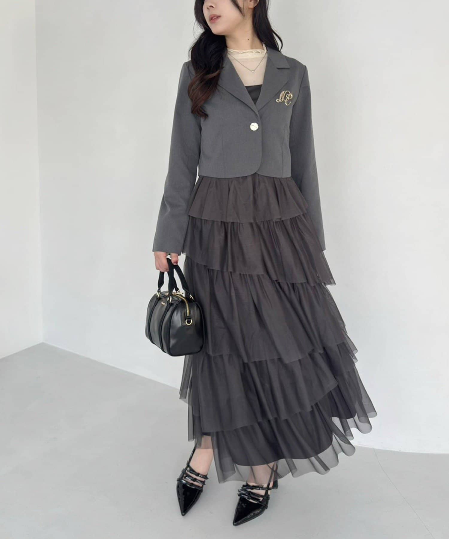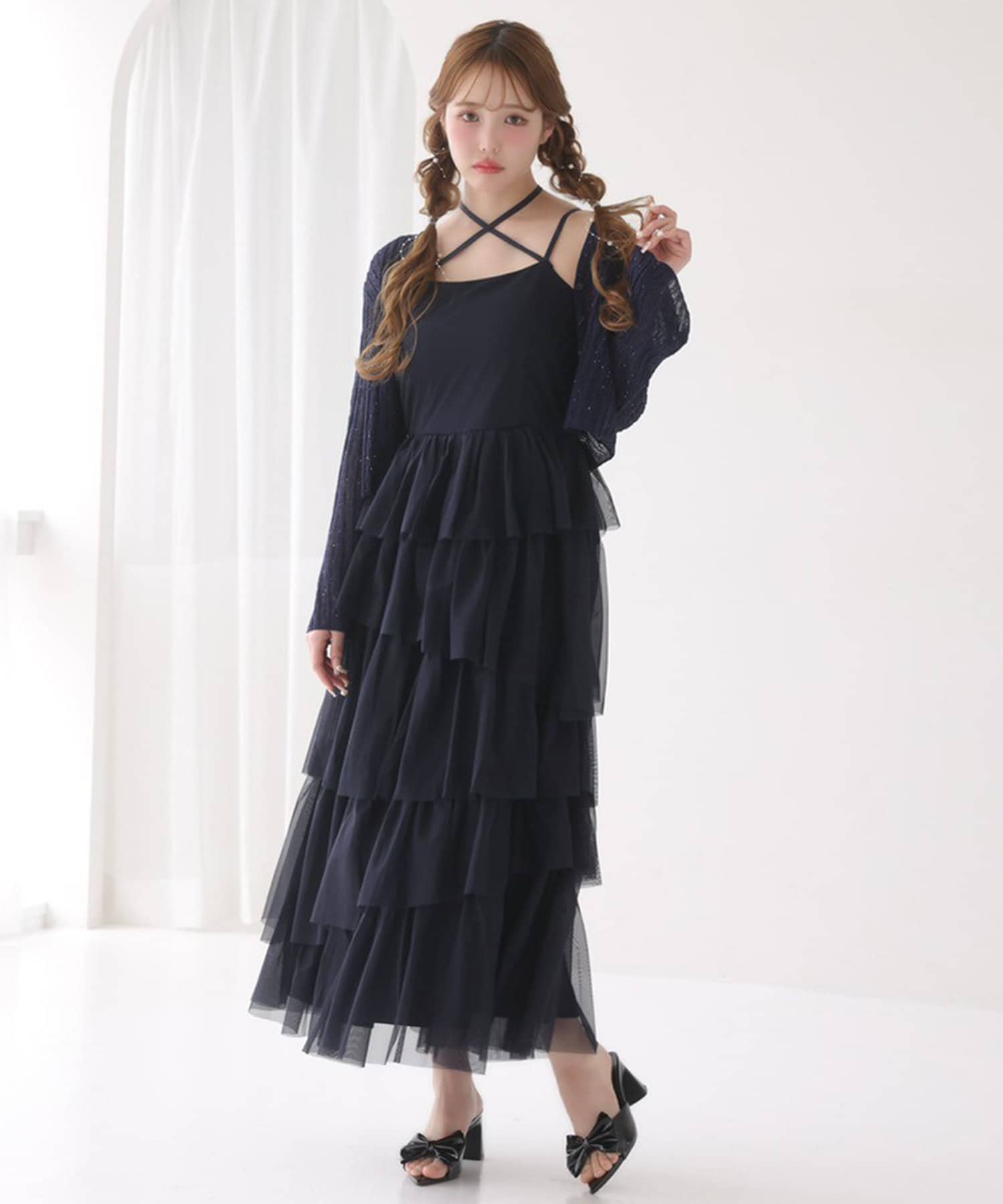 チュールのフリルを贅沢にあしらったティアードワンピース