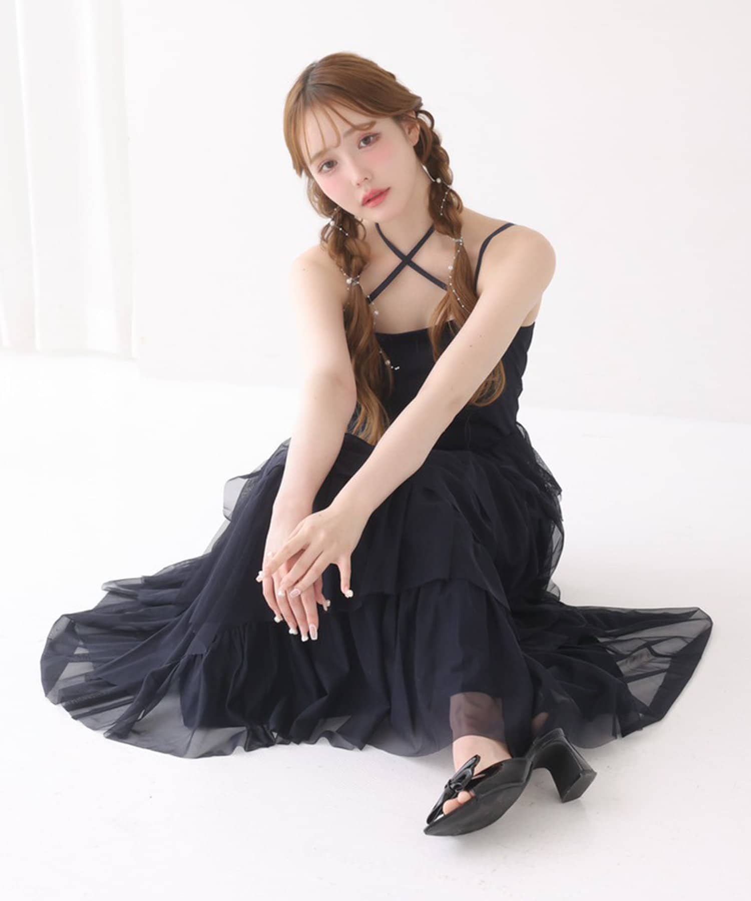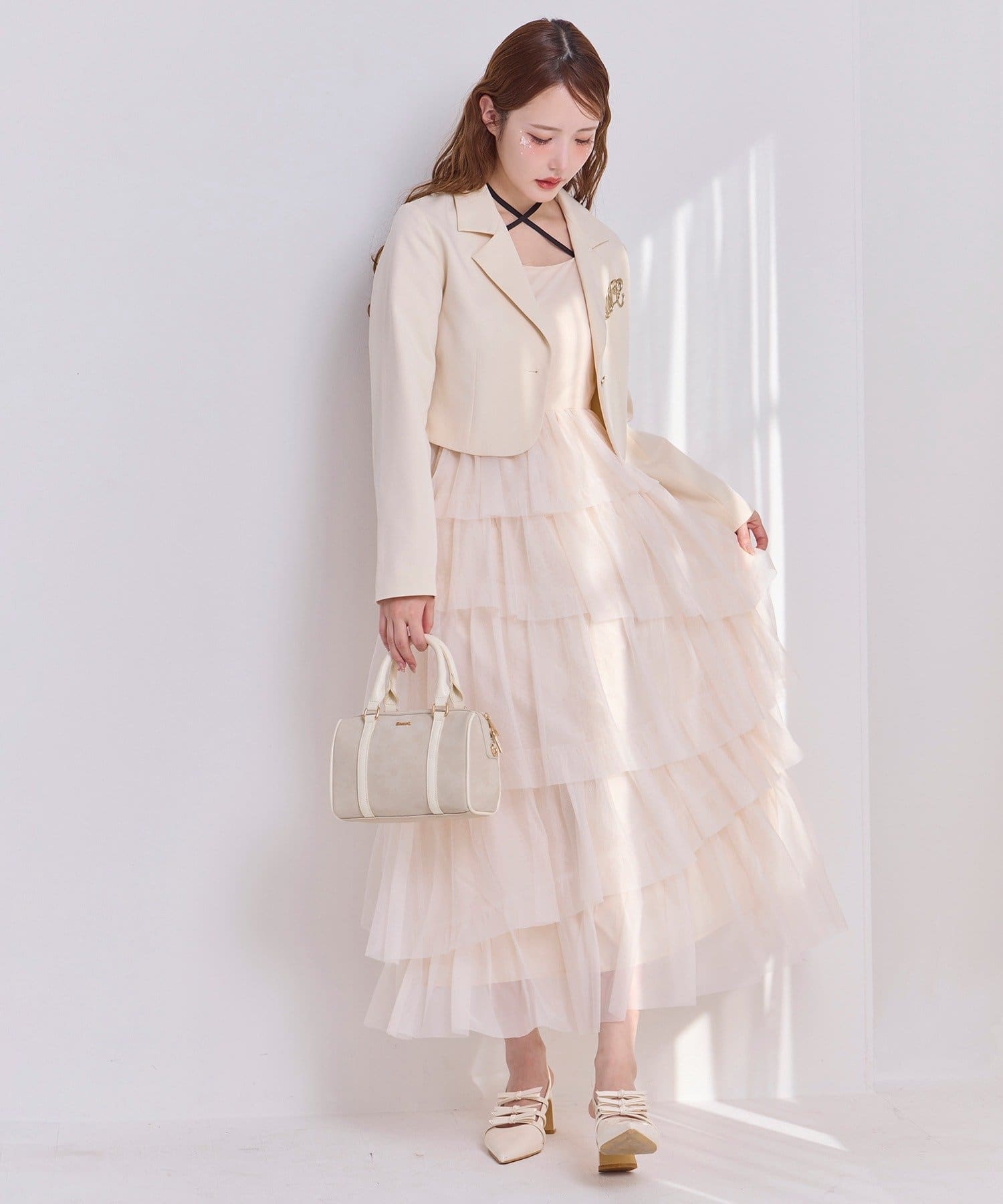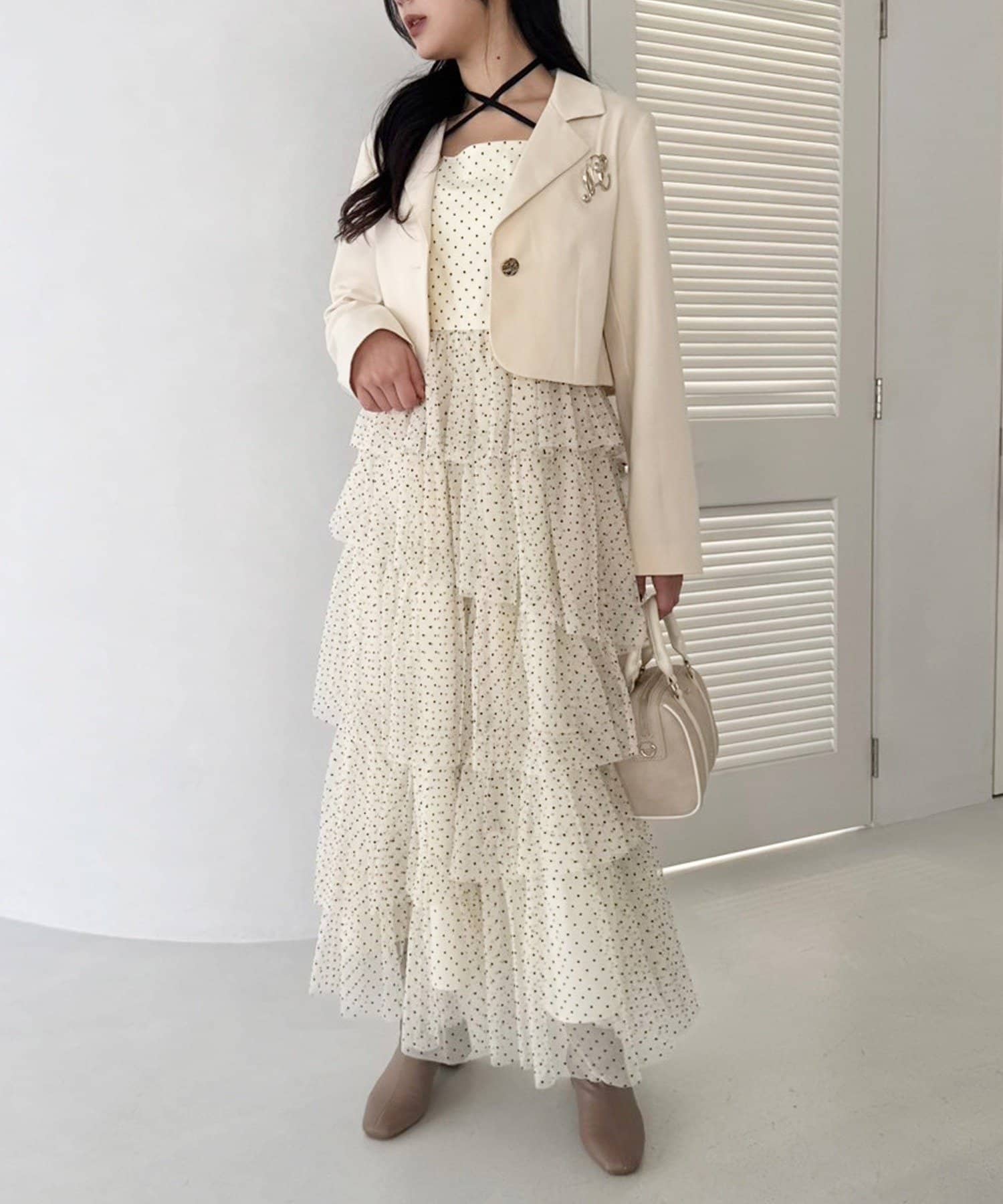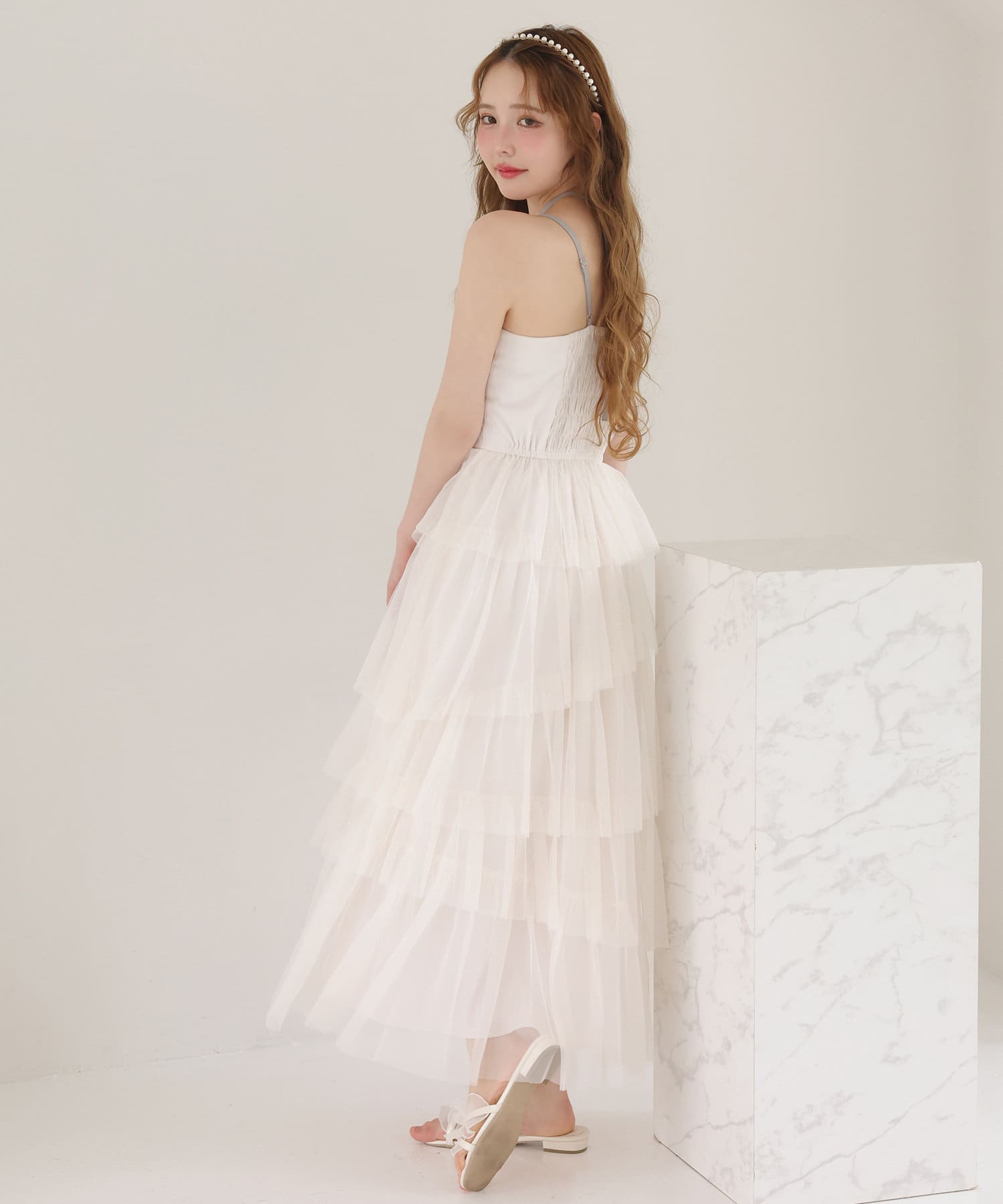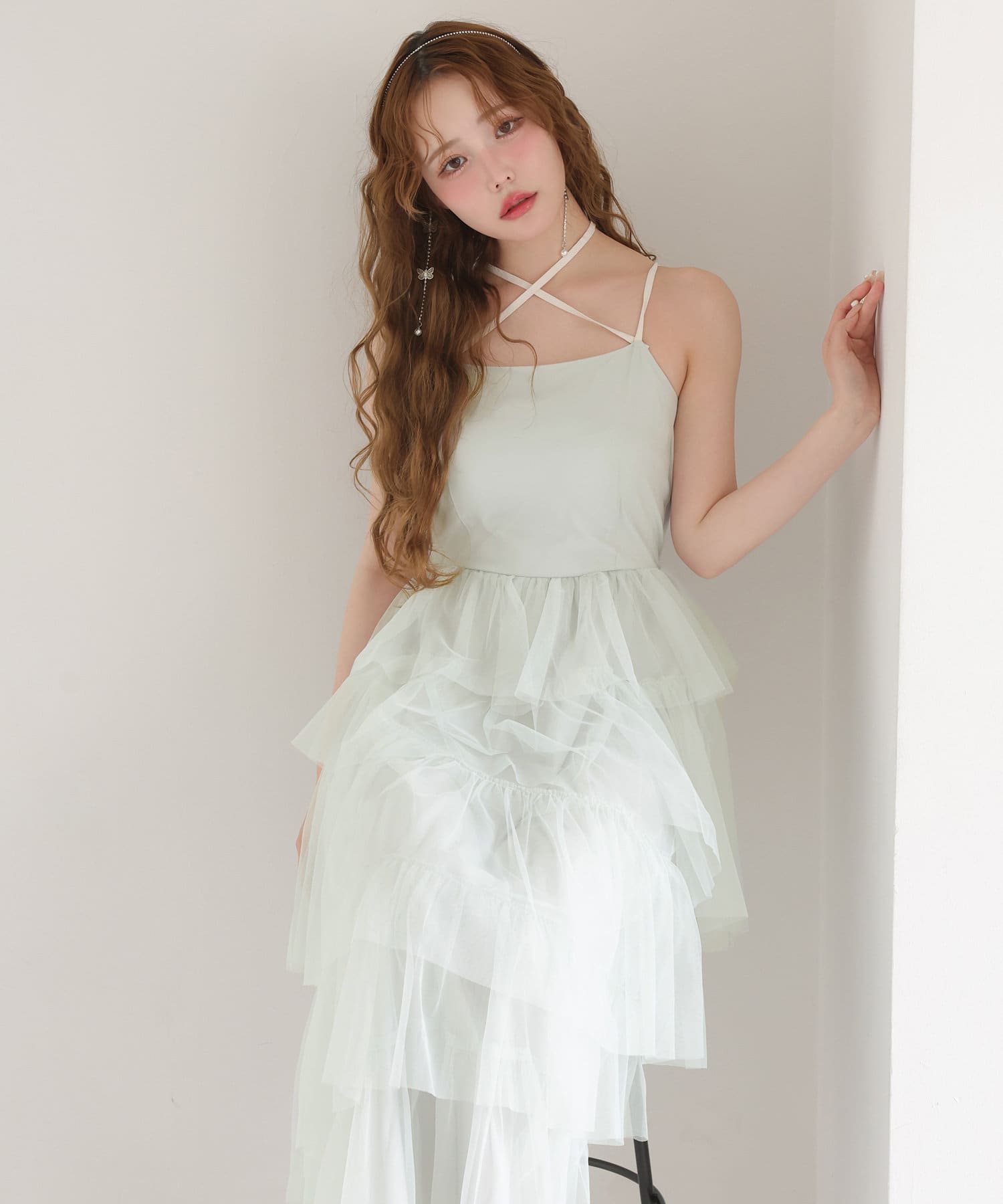 チュールのフリルを贅沢にあしらったティアードワンピース