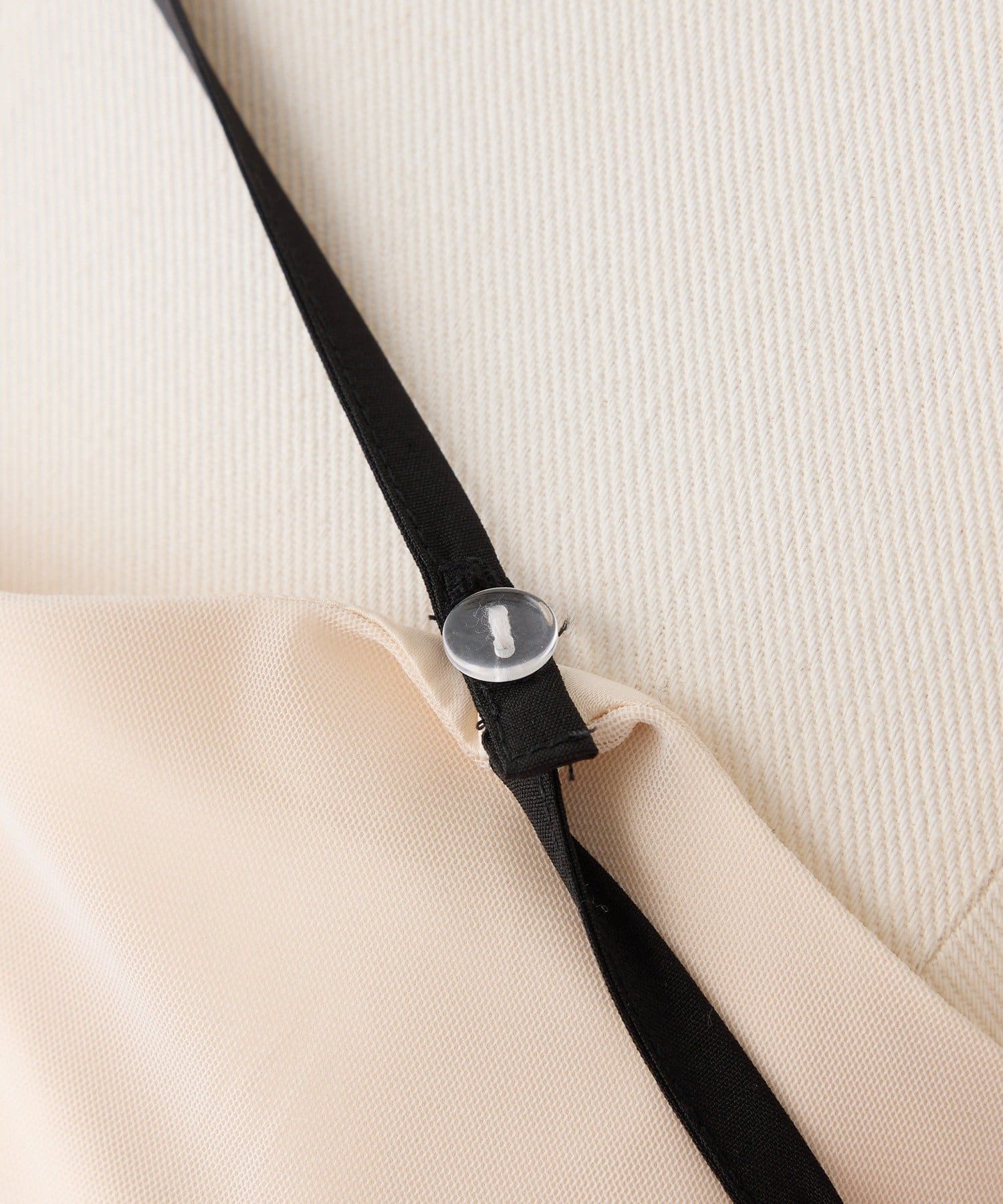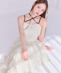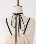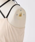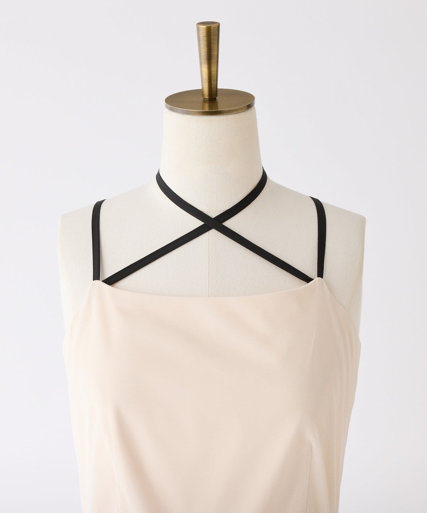 ホルターネックの紐はボタンで取り外しが出来て印象を変えられます。