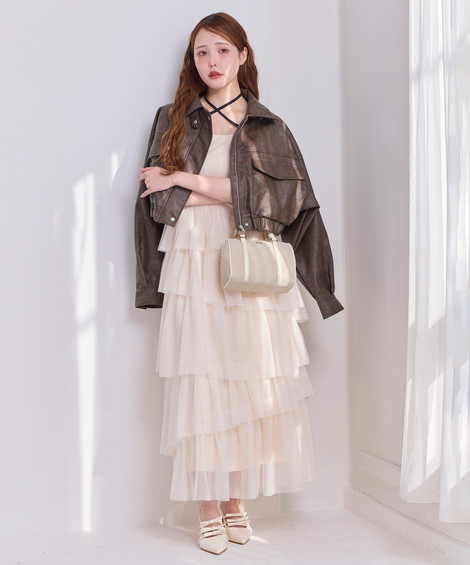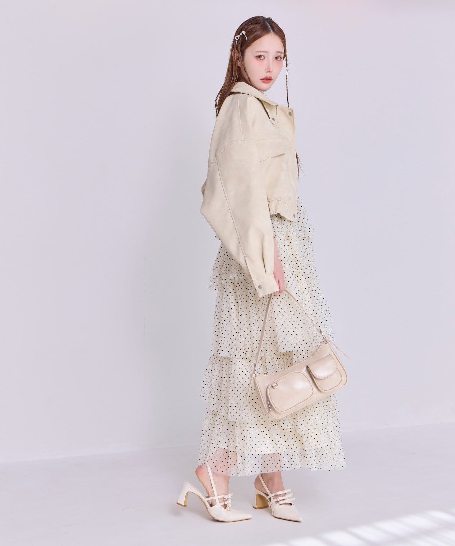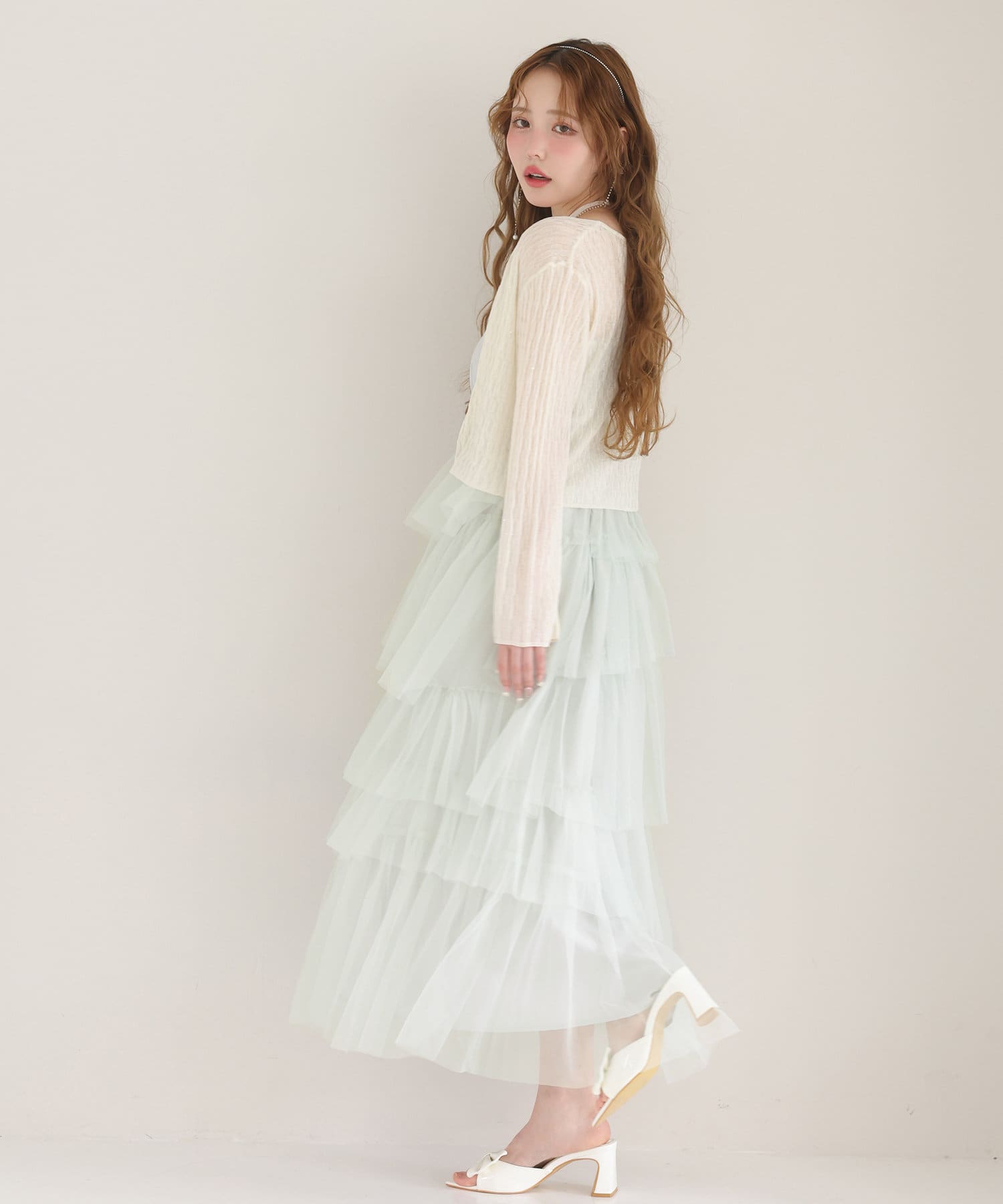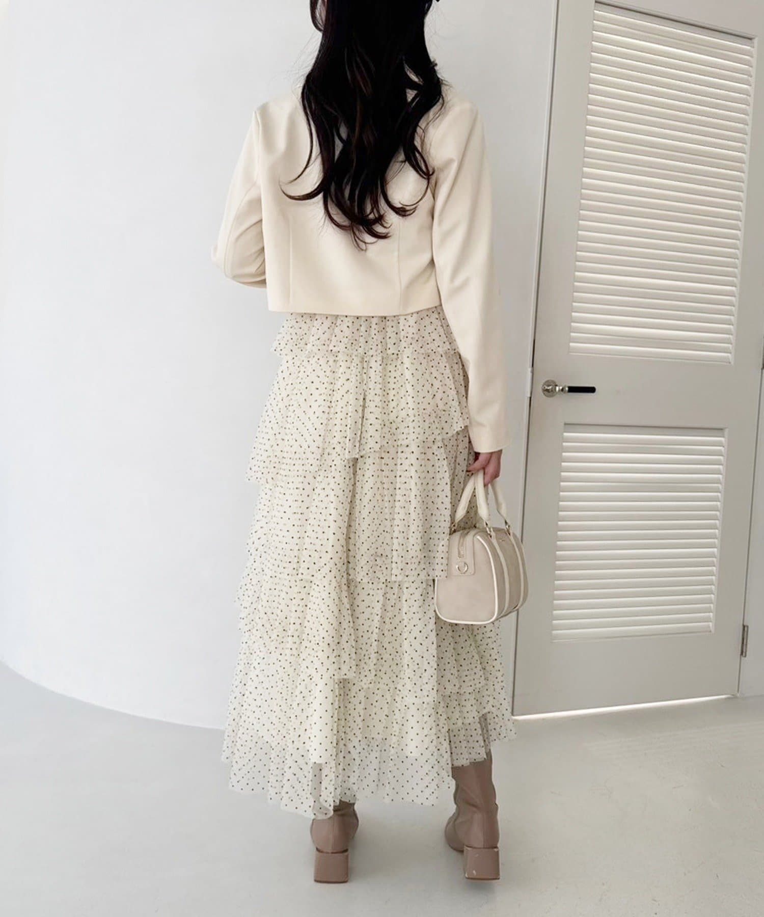 動きに合わせて揺れるたっぷりと重ねたフリルが女性らしい雰囲気を演出します。