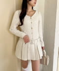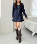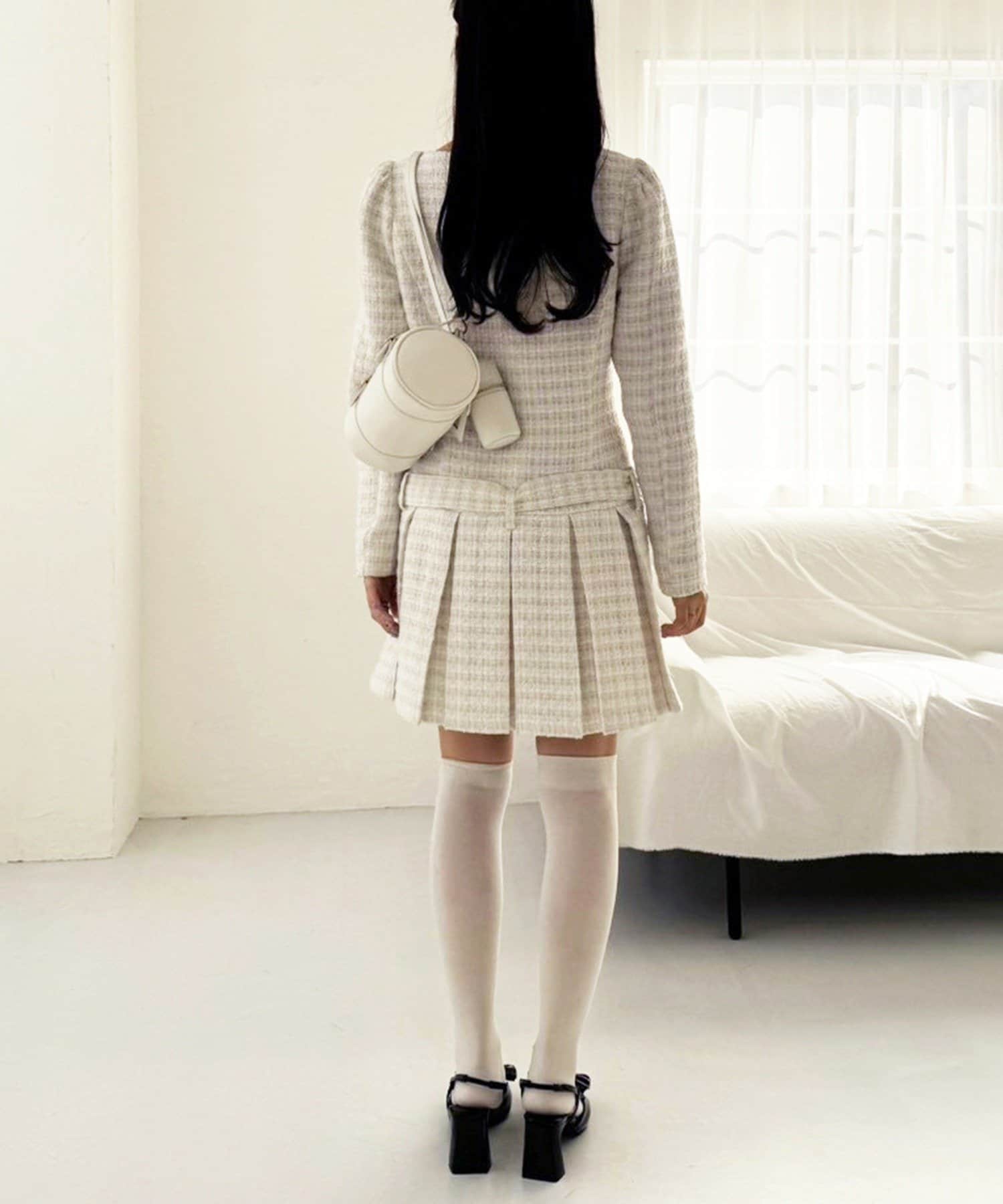 ウエストラインは程よくフィットし、裾はプリーツでゆるやかなAラインシルエットに。