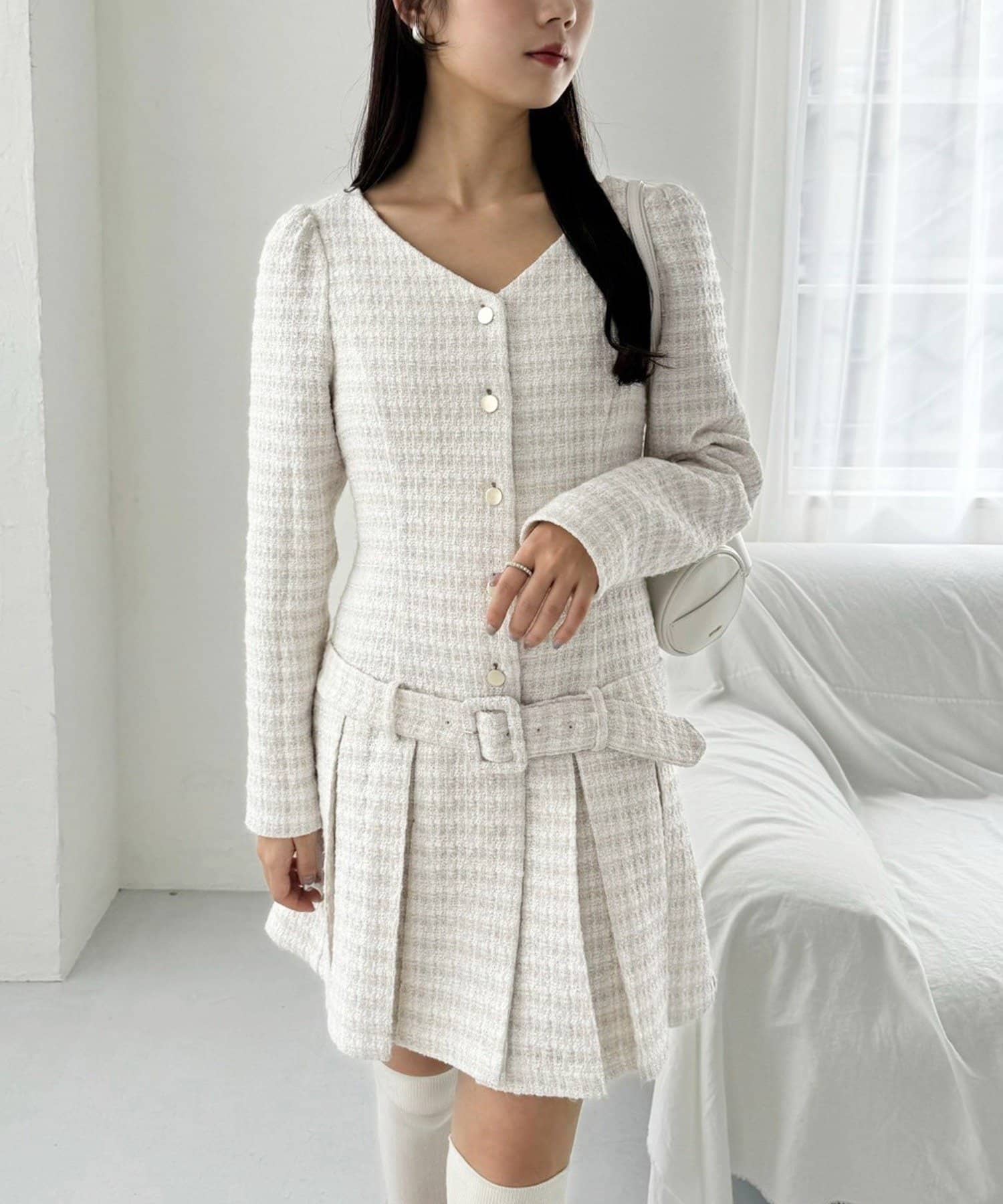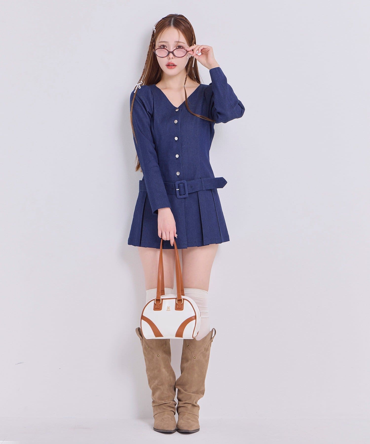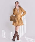 ローウエストのベルトデザインが旬なコーデに仕上げてくれます。