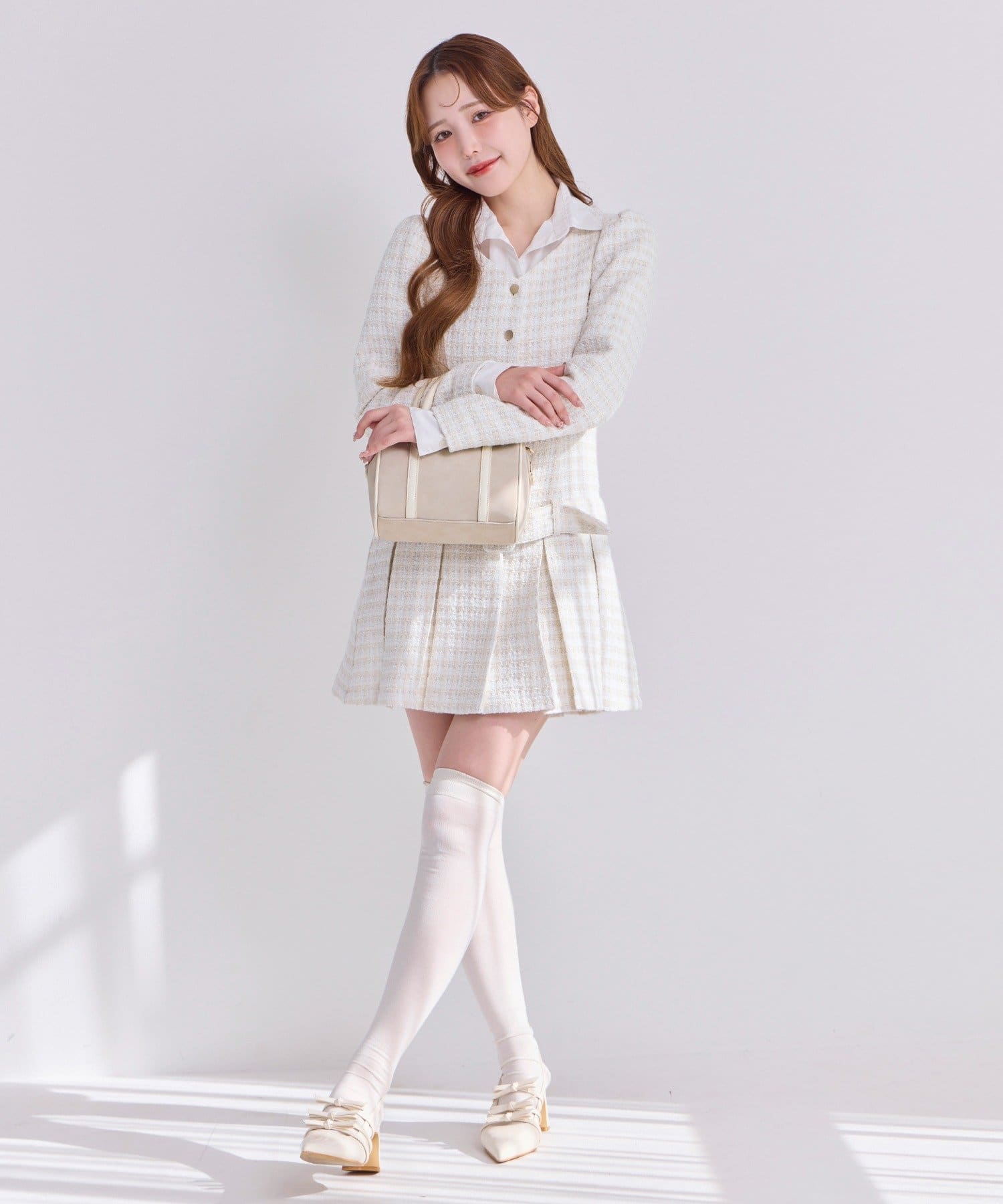 足元はロングブーツや、ハイソックスにパンプスを合わせるのがおすすめです。